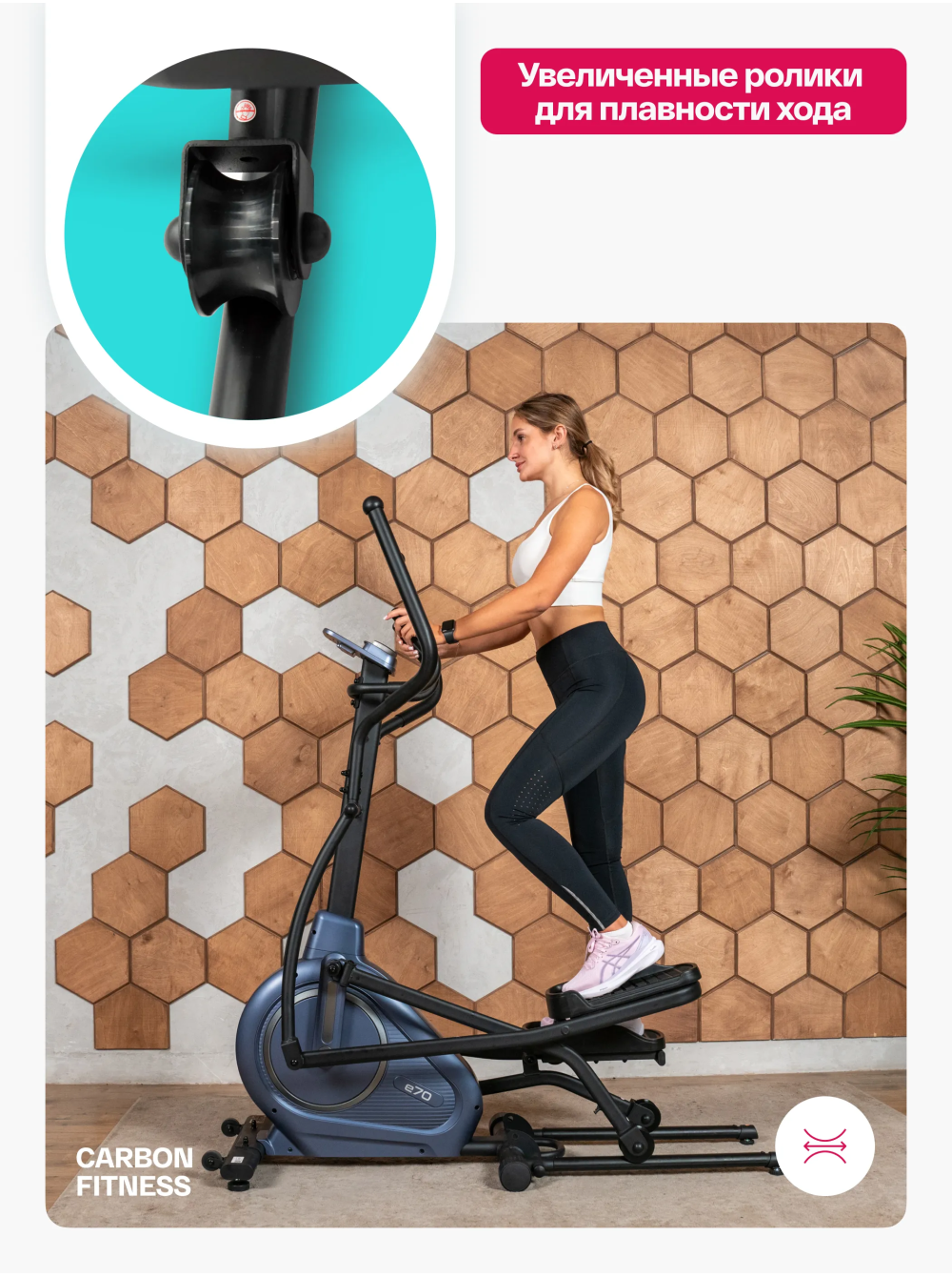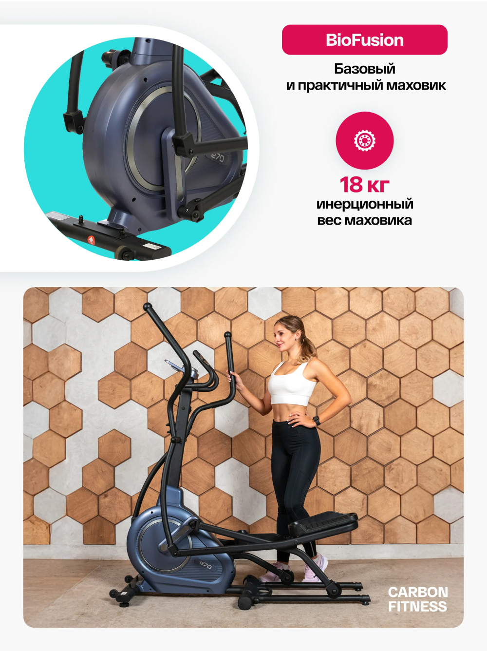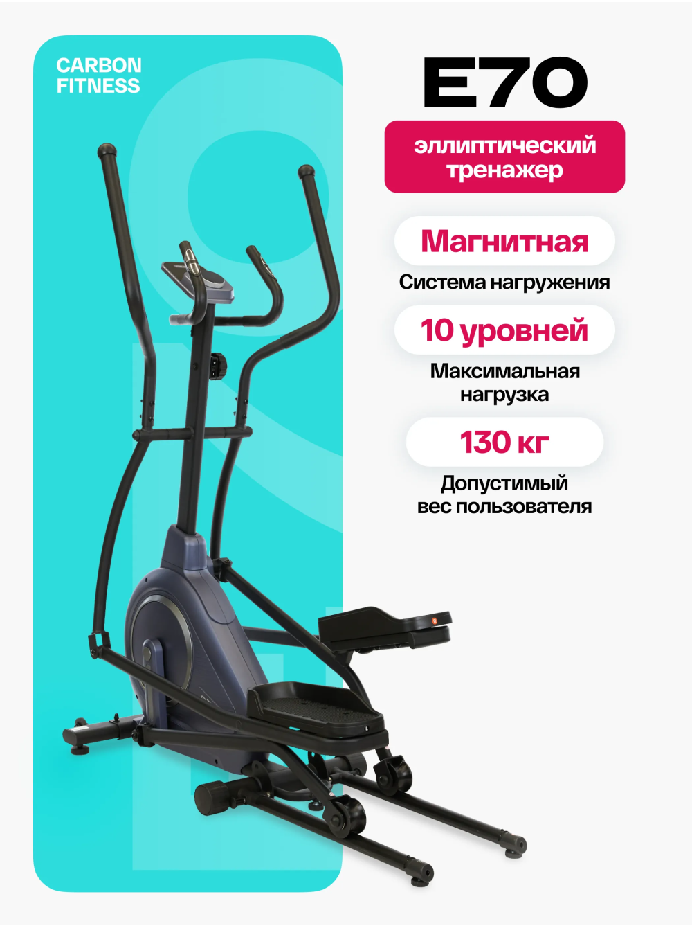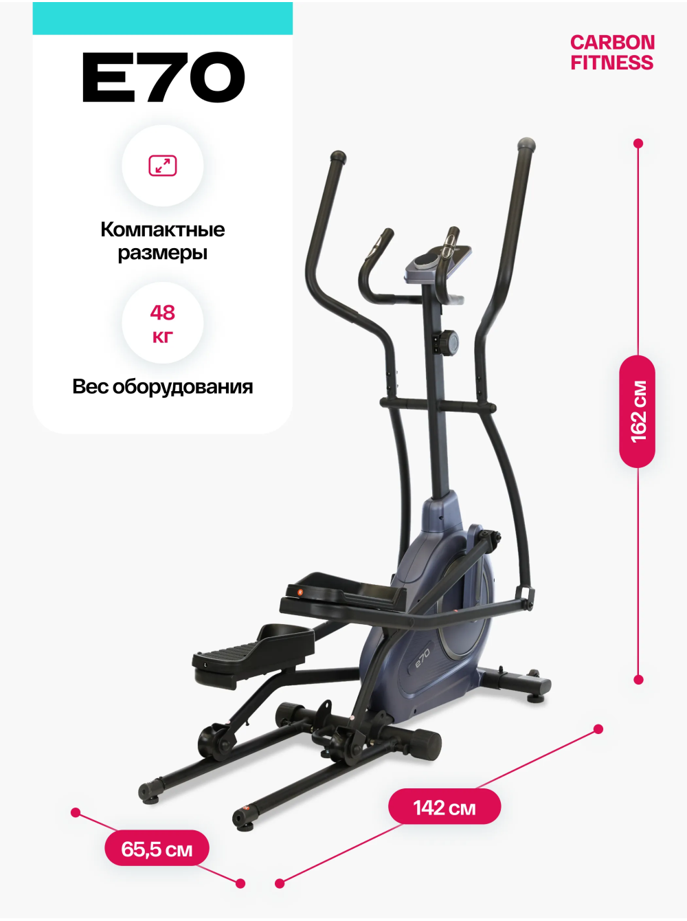 Эллиптический тренажер домашний CARBON FITNESS E70 0 отзывов 35990р.47990р. Вы экономите: 12000р. (-25%) Производитель: CARBON Наличие: Есть в наличии Модель: E70 Одежда Обувь Как выбрать одежду своего размера? Купить Купить в один клик Скидки постоянным клиентам! Гарантия качества всех товаров магазина! Описание Отзывов (0) Особенности:10 УРОВНЕЙ НАГРУЗКИДЛИНА ШАГА 45 СМ, А РАССТОЯНИЕ МЕЖДУ ПЕДАЛЯМИ 19 СМАНТИСКОЛЬЗЯЩИЕ ПЕДАЛИ ДАТЧИКИ ПУЛЬСА НА ПОРУЧНЯХ НАВЫЙ ЭРГОНОМИЧНЫЙ ДИЗАЙН ИЗ УДАРОПРОЧНОГО ПЛАСТИКА БЕСШУМНЫЕ ПОЛЕУРЕТАНОВЫЕ РОЛИКИ УДОБНАЯ СИСТЕМА СКЛАДЫВАНИЯ ТРЕНАЖЕРА МНОГОФУНКЦИОНАЛЬНЫЙ ДИСПЛЕЙ - ШАЙБА ОТОРАЖАЮЩАЯ ВСЕ НЕОБХОДИМЫЕ ПОКАЗАТЕЛИ ПОРУЧЕНЬ ДЛЯ ТРАНСПОРТИРОВКИ С ДОПОЛНИТЕЛЬНЫМ КОМПЕНСАТОРОМ НЕРОВНОСТЕЙ ПОЛА ЭРГОНОМИЧНЫЕ ПОРУЧНИ ИЗ ПЕНОРЕЗИНЫ ТРАНСПОРТИРОВОЧНЫЕ РОЛИКИ БрендCarbon FitnessАртикулE70Назначение домашнееТип тренажера эллиптическийСистема нагружения магнитнаяКоличество уровней нагрузки10Инерционный вес маховика, кг18, BioFusion™Тип педального узлатрехкомпонентный шатунРасстояние между педалями, мм190Длина шага, мм450Измерение пульсаестьКонсоль LEDТип консоли LED дисплей круглый функциональный Показания консоливремя, скорость, дистанция, калории, пульс, нагрузка, обороты в минуту, ВаттыОбщее количество программручной режимСпецификация программбыстрый старт, ручной режимЯзык интерфейсаанглийскийСкладываниеДаПодставка под планшет/смартфонДаТранспортировочные роликиДаКомпенсаторы неровностей полаДаДополнительные функциисенсорные датчики пульса на поручняхДополнительные особенности тренажераскладная конструкцияДлина в рабочем состоянии, см146Ширина в рабочем состоянии, см67Высота в рабочем состоянии, см161Вес нетто, кг48Вес брутто, кг54.5Максимальный вес пользователя 130Подключение к сетине требует подключенияПроизводительFitathlon Group (подразделение в Германии)Страна изготовленияКНР Эллиптический тренажер CARBON FITNESS E70 — это ваш ключ к эффективным домашним тренировкам, объединяющий передовые технологии и максимальный комфорт. Благодаря магнитной системе нагружения с 10 уровнями интенсивности, каждая тренировка будет плавной и бесшумной, а маховик весом 18 кг, созданный по технологии BioFusion, обеспечит стабильную нагрузку для достижения лучших результатов. С длиной шага 45 см и расстоянием между педалями 19 см этот тренажер подойдет пользователям разного роста и комплекции, помогая оптимизировать каждое движение для достижения ваших фитнес-целей. Инновационная LED-консоль отображает все важные показатели тренировки, такие как время, дистанция, скорость, калории и пульс, что позволяет вам полностью контролировать процесс. С функцией Bluetooth, тренажер интегрируется с мобильными приложениями, предоставляя дополнительные возможности для персонализации тренировки и её мониторинга. Подставка под планшет или смартфон позволяет не пропустить важные моменты и сочетать занятия с просмотром видео или любимой музыки. Этот тренажер — не только мощный инструмент для фитнеса, но и стильное решение для дома. Компактные размеры и складная конструкция (всего 98x65,5x162 см в сложенном виде) делают его идеальным выбором даже для небольших помещений. Мягкие поручни с эргономичным дизайном и антискользящие педали обеспечат комфорт и безопасность на каждом этапе вашей тренировки. Прочная рама с антикоррозийной обработкой и высококачествен
