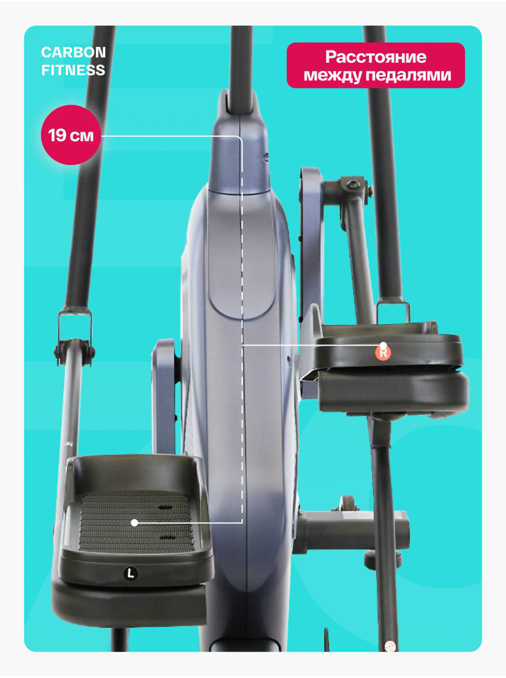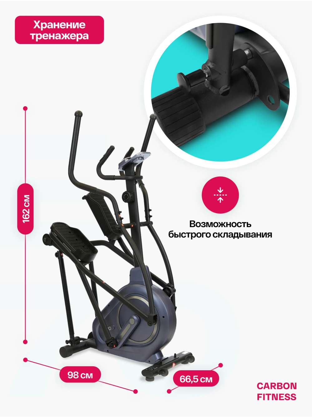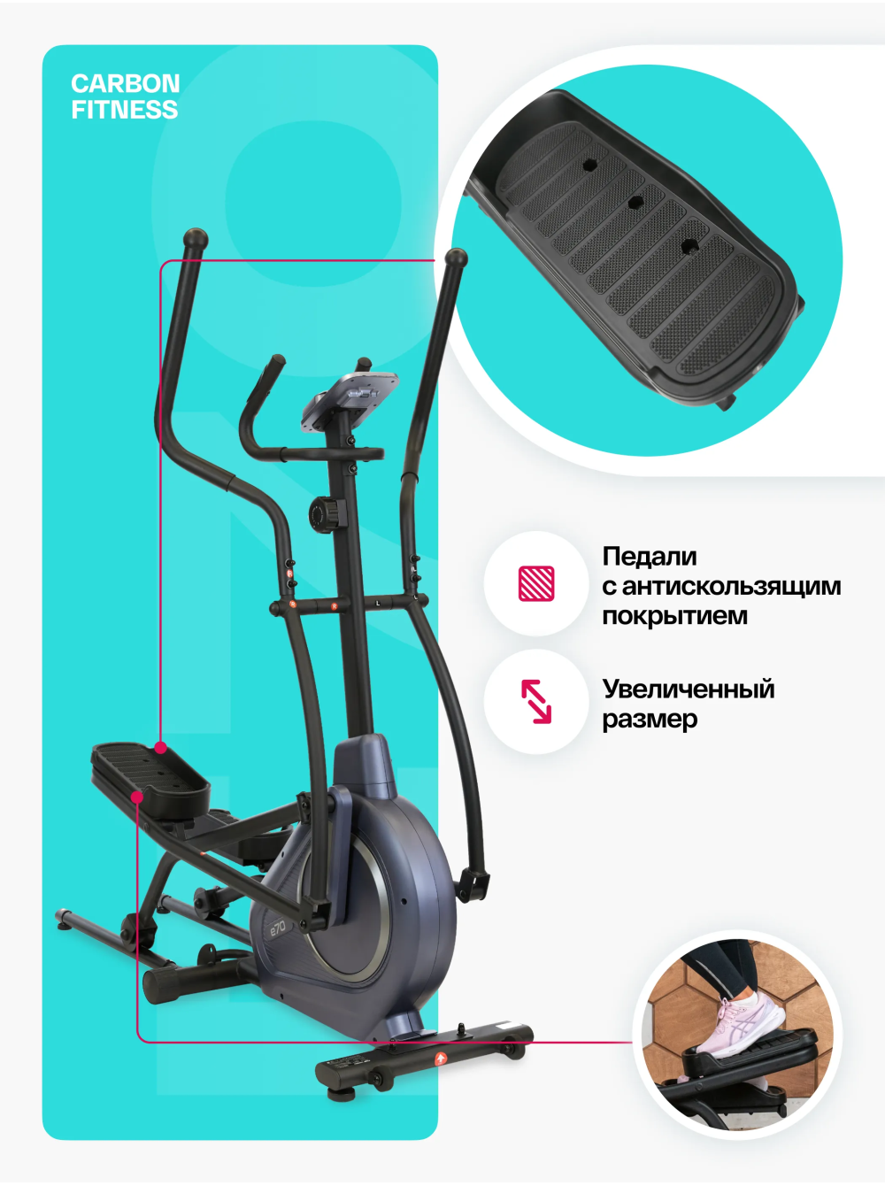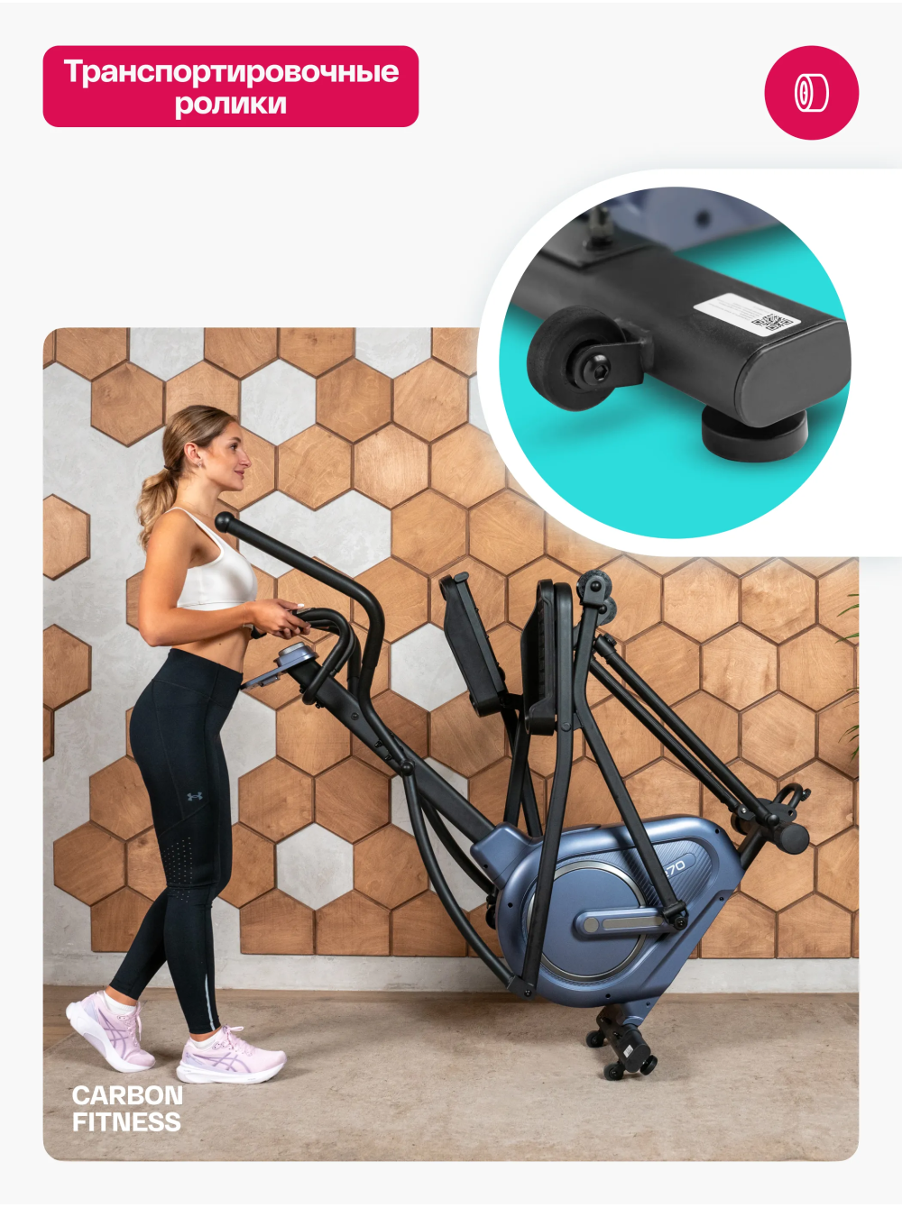 Эллиптический тренажер домашний CARBON FITNESS E70 0 отзывов 35990р.47990р. Вы экономите: 12000р. (-25%) Производитель: CARBON Наличие: Есть в наличии Модель: E70 Одежда Обувь Как выбрать одежду своего размера? Купить Купить в один клик Скидки постоянным клиентам! Гарантия качества всех товаров магазина! Описание Отзывов (0) Особенности:10 УРОВНЕЙ НАГРУЗКИДЛИНА ШАГА 45 СМ, А РАССТОЯНИЕ МЕЖДУ ПЕДАЛЯМИ 19 СМАНТИСКОЛЬЗЯЩИЕ ПЕДАЛИ ДАТЧИКИ ПУЛЬСА НА ПОРУЧНЯХ НАВЫЙ ЭРГОНОМИЧНЫЙ ДИЗАЙН ИЗ УДАРОПРОЧНОГО ПЛАСТИКА БЕСШУМНЫЕ ПОЛЕУРЕТАНОВЫЕ РОЛИКИ УДОБНАЯ СИСТЕМА СКЛАДЫВАНИЯ ТРЕНАЖЕРА МНОГОФУНКЦИОНАЛЬНЫЙ ДИСПЛЕЙ - ШАЙБА ОТОРАЖАЮЩАЯ ВСЕ НЕОБХОДИМЫЕ ПОКАЗАТЕЛИ ПОРУЧЕНЬ ДЛЯ ТРАНСПОРТИРОВКИ С ДОПОЛНИТЕЛЬНЫМ КОМПЕНСАТОРОМ НЕРОВНОСТЕЙ ПОЛА ЭРГОНОМИЧНЫЕ ПОРУЧНИ ИЗ ПЕНОРЕЗИНЫ ТРАНСПОРТИРОВОЧНЫЕ РОЛИКИ БрендCarbon FitnessАртикулE70Назначение домашнееТип тренажера эллиптическийСистема нагружения магнитнаяКоличество уровней нагрузки10Инерционный вес маховика, кг18, BioFusion™Тип педального узлатрехкомпонентный шатунРасстояние между педалями, мм190Длина шага, мм450Измерение пульсаестьКонсоль LEDТип консоли LED дисплей круглый функциональный Показания консоливремя, скорость, дистанция, калории, пульс, нагрузка, обороты в минуту, ВаттыОбщее количество программручной режимСпецификация программбыстрый старт, ручной режимЯзык интерфейсаанглийскийСкладываниеДаПодставка под планшет/смартфонДаТранспортировочные роликиДаКомпенсаторы неровностей полаДаДополнительные функциисенсорные датчики пульса на поручняхДополнительные особенности тренажераскладная конструкцияДлина в рабочем состоянии, см146Ширина в рабочем состоянии, см67Высота в рабочем состоянии, см161Вес нетто, кг48Вес брутто, кг54.5Максимальный вес пользователя 130Подключение к сетине требует подключенияПроизводительFitathlon Group (подразделение в Германии)Страна изготовленияКНР Эллиптический тренажер CARBON FITNESS E70 — это ваш ключ к эффективным домашним тренировкам, объединяющий передовые технологии и максимальный комфорт. Благодаря магнитной системе нагружения с 10 уровнями интенсивности, каждая тренировка будет плавной и бесшумной, а маховик весом 18 кг, созданный по технологии BioFusion, обеспечит стабильную нагрузку для достижения лучших результатов. С длиной шага 45 см и расстоянием между педалями 19 см этот тренажер подойдет пользователям разного роста и комплекции, помогая оптимизировать каждое движение для достижения ваших фитнес-целей. Инновационная LED-консоль отображает все важные показатели тренировки, такие как время, дистанция, скорость, калории и пульс, что позволяет вам полностью контролировать процесс. С функцией Bluetooth, тренажер интегрируется с мобильными приложениями, предоставляя дополнительные возможности для персонализации тренировки и её мониторинга. Подставка под планшет или смартфон позволяет не пропустить важные моменты и сочетать занятия с просмотром видео или любимой музыки. Этот тренажер — не только мощный инструмент для фитнеса, но и стильное решение для дома. Компактные размеры и складная конструкция (всего 98x65,5x162 см в сложенном виде) делают его идеальным выбором даже для небольших помещений. Мягкие поручни с эргономичным дизайном и антискользящие педали обеспечат комфорт и безопасность на каждом этапе вашей тренировки. Прочная рама с антикоррозийной обработкой и высококачествен