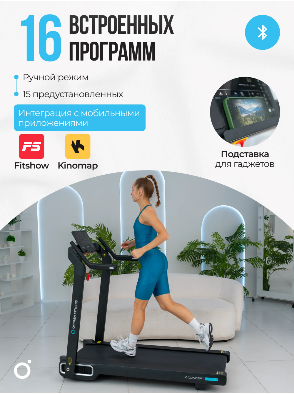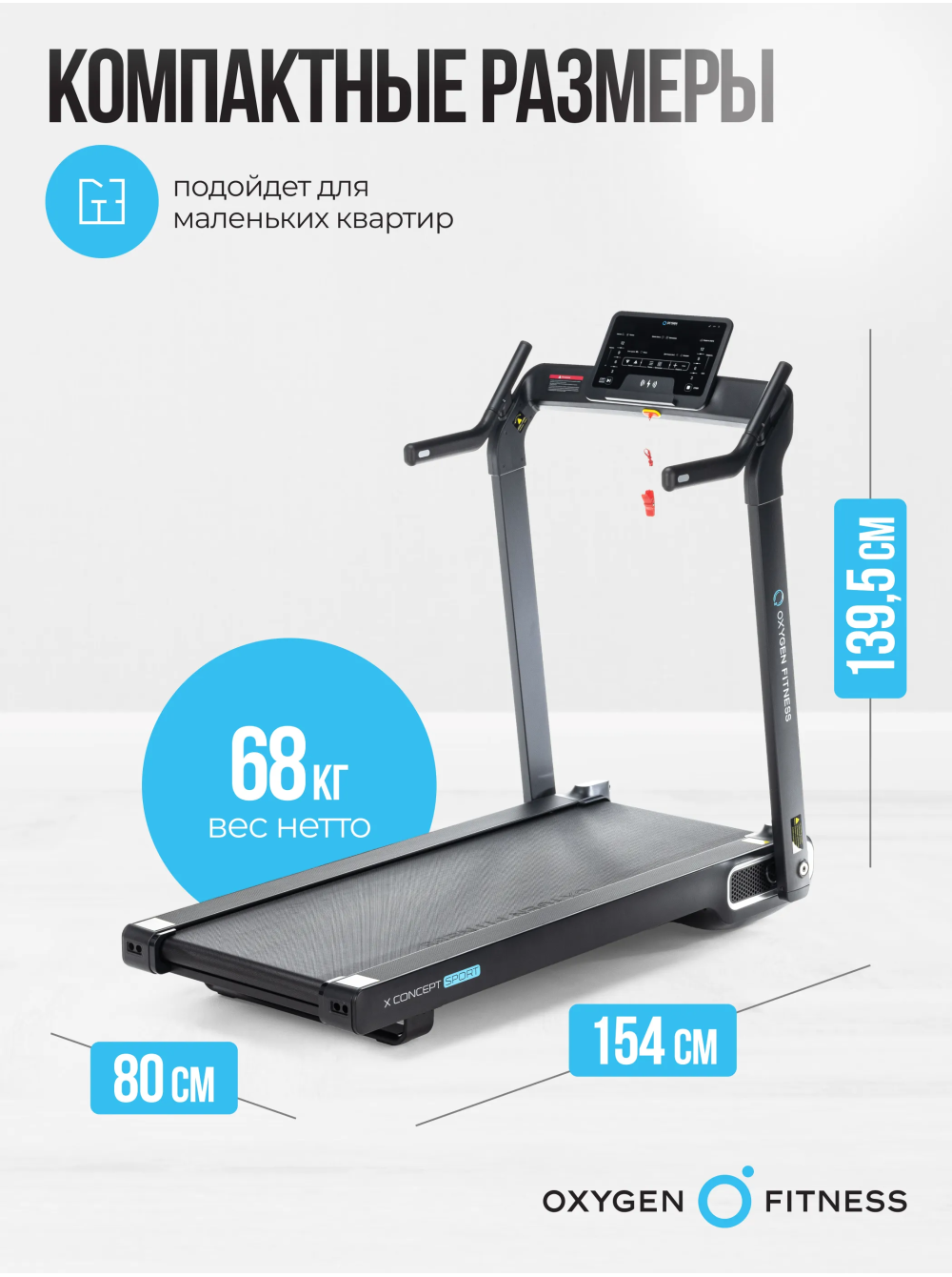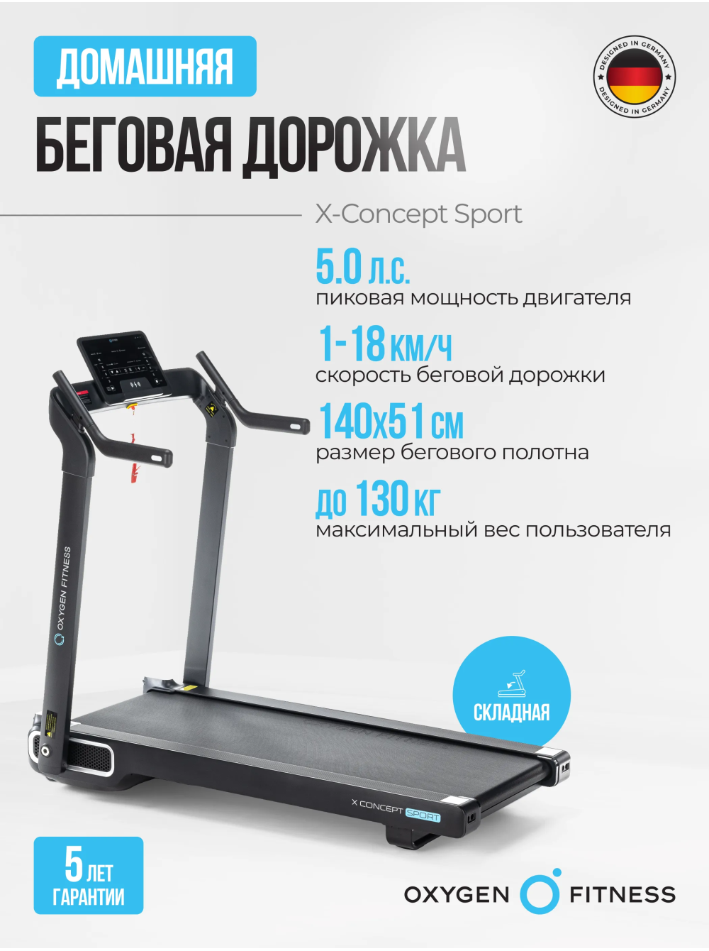 Беговая дорожка домашняя OXYGEN FITNESS X-CONCEPT SPORT 0 отзывов 109990р.129990р. Вы экономите: 20000р. (-15%) Производитель: OXYGEN Наличие: Есть в наличии Модель: X_CONCEPT_SPORT Одежда Обувь Как выбрать одежду своего размера? Купить Купить в один клик Скидки постоянным клиентам! Гарантия качества всех товаров магазина! Описание Отзывов (0) OXYGEN FITNESS X-CONCEPT SPORT - идеальное сочетание элегантного дизайна, передовых технологий и непревзойденного комфорта, который предлагает вам возможность превратить ваш дом в центр здоровья и активного образа жизни. Антикоррозийная обработка и покраска в 1 слой обеспечивают долговечность и сохранение привлекательного внешнего вида тренажера на протяжении многих лет использования. Скорость тренажера регулируется в диапазоне от 1 до 18 км/ч, позволяя вам выбрать интенсивность тренировки в соответствии с вашими потребностями и уровнем физической подготовки. Двигатель постоянного тока, мощностью 3.5 л.с. от Fuji Electric обеспечивает плавное и бесшумное функционирование, создавая идеальные условия для вашей тренировки. В пиковой нагрузке мощность достигает 5 л.с. Беговое полотно толщиной 1.6 мм состоит из многослойного коммерческого материала. Размер которого составляет 140*51 см, предоставляя достаточно пространства для комфортного бега или ходьбы. А главным преимуществом является то, что беговая дорожка Тренажер обладает электрической регулировкой угла наклона, предлагая 12 уровней наклона, чтобы вы могли изменять интенсивность тренировки и преодолевать новые вызовы. Безусловным преимуществом серии является инновационная система перемещения Smart Move - за счет 4 разнонаправленных роликов тренажер можно перемещать в двух проекциях (вперед-назад и вправо-влево) - это очень удобно и, главное, легко в условиях небольших площадей городских квартир. Система амортизации тренажера включает 6 профессиональных эластомеров VCS™, которые эффективно поглощают удары и снижают нагрузку на суставы, обеспечивая безопасность и комфорт во время тренировки. Консоль беговой дорожки оснащена 5 LED-дисплеями с белой индикацией, на которых отображаются различные показатели, такие как время, скорость, дистанция, уровень наклона, калории, пульс, шаги и профиль программы. OXYGEN FITNESS X-CONCEPT SPORT имеет 16 программ тренировок, включая ручной режим и 15 встроенных программ, которые помогут вам разнообразить свою тренировочную программу и достичь максимальных результатов. Тренажер обладает мультимедийными возможностями, включая воспроизведение аудио файлов через встроенные динамики. Также он интегрируется с мобильными приложениями Fitshow и Kinomap через Bluetooth, что позволяет вам взаимодействовать с тренировкой и наслаждаться интерактивными тренировками. OXYGEN FITNESS X-CONCEPT SPORT обладает компактными размерами в сложенном виде и в рабочем состоянии, что позволяет легко разместить его дома. Тренажер также оснащен транспортировочными роликами и функцией ультракомпактного складывания Smart Fold для удобства хранения и перемещения. Максимальный вес пользователя составляет 130 кг, что делает этот тренажер идеальным выбором для различных пользователей. Получите 5-летнюю гарантию на OXYGEN FITNESS X-CONCEPT SPORT и начните свое путешествие к здоровью и фитнесу прямо у себя дома. Бренд Oxygen Fitness Артикул X_CONCEPT_SPORT Назначение домашнее Тип тренажера электрическая беговая дорожка Двигатель 3.5 л.с. DC Fuji Electric Пико