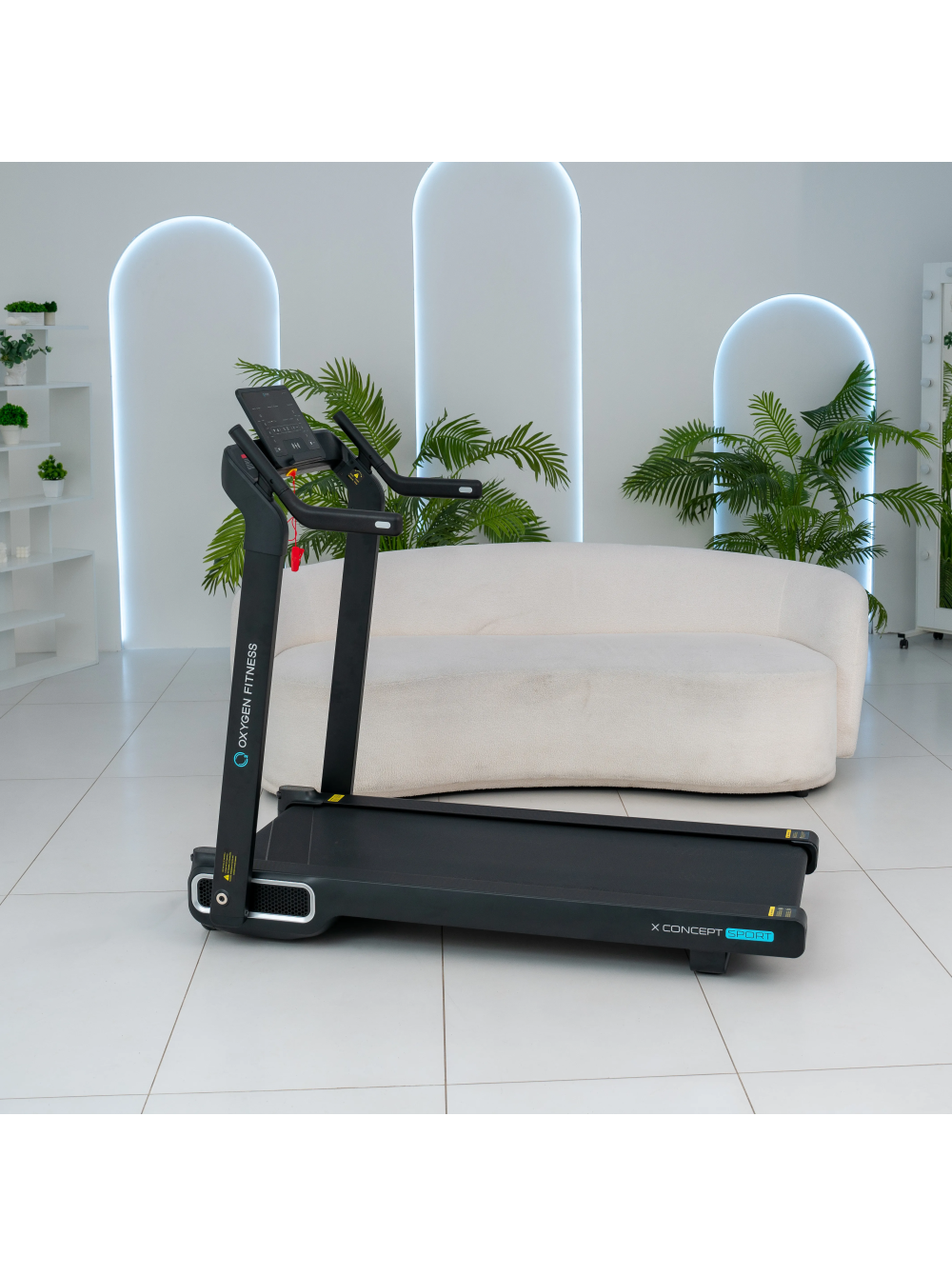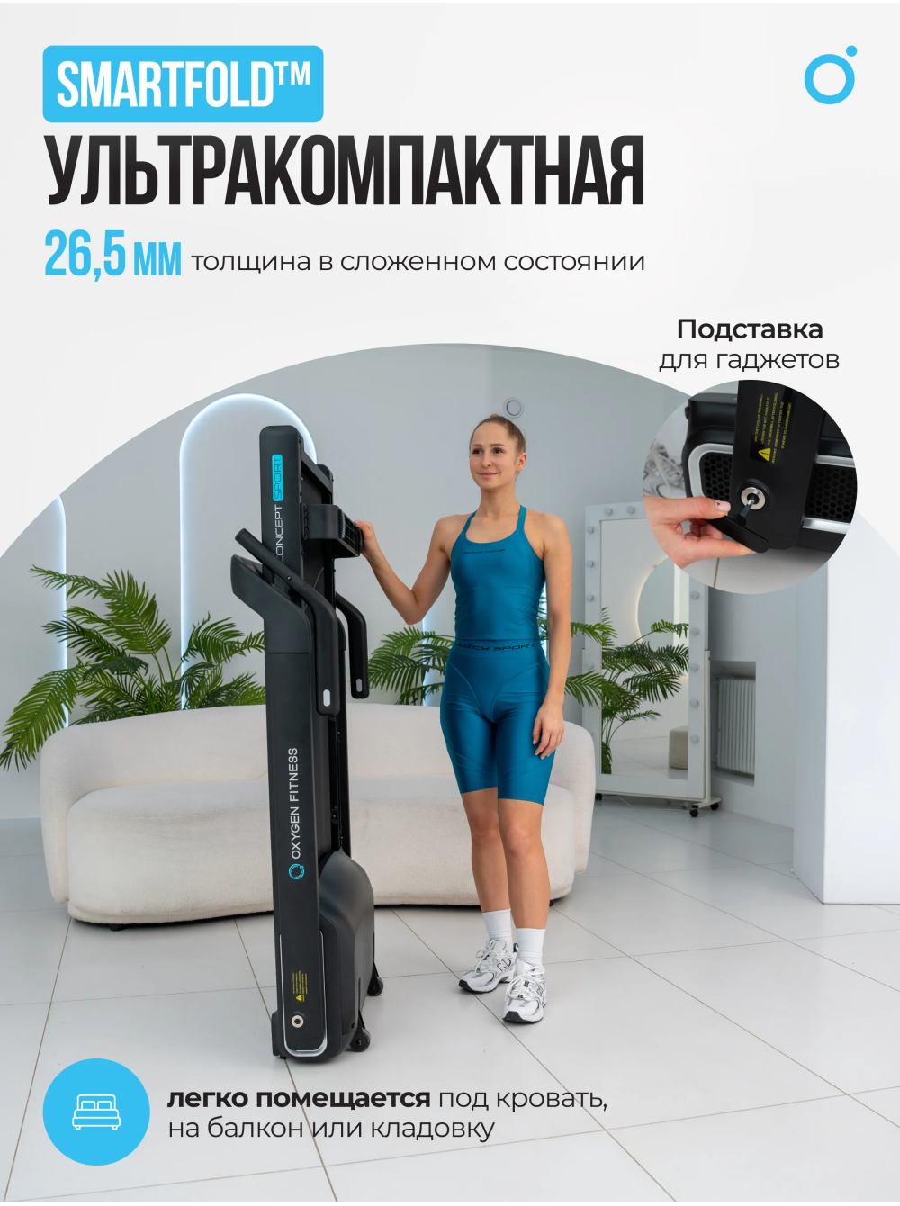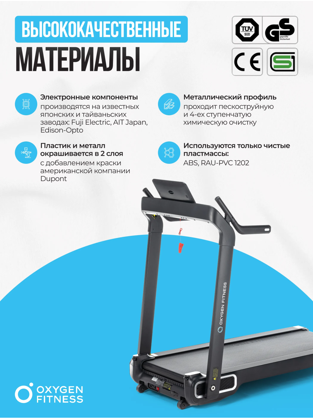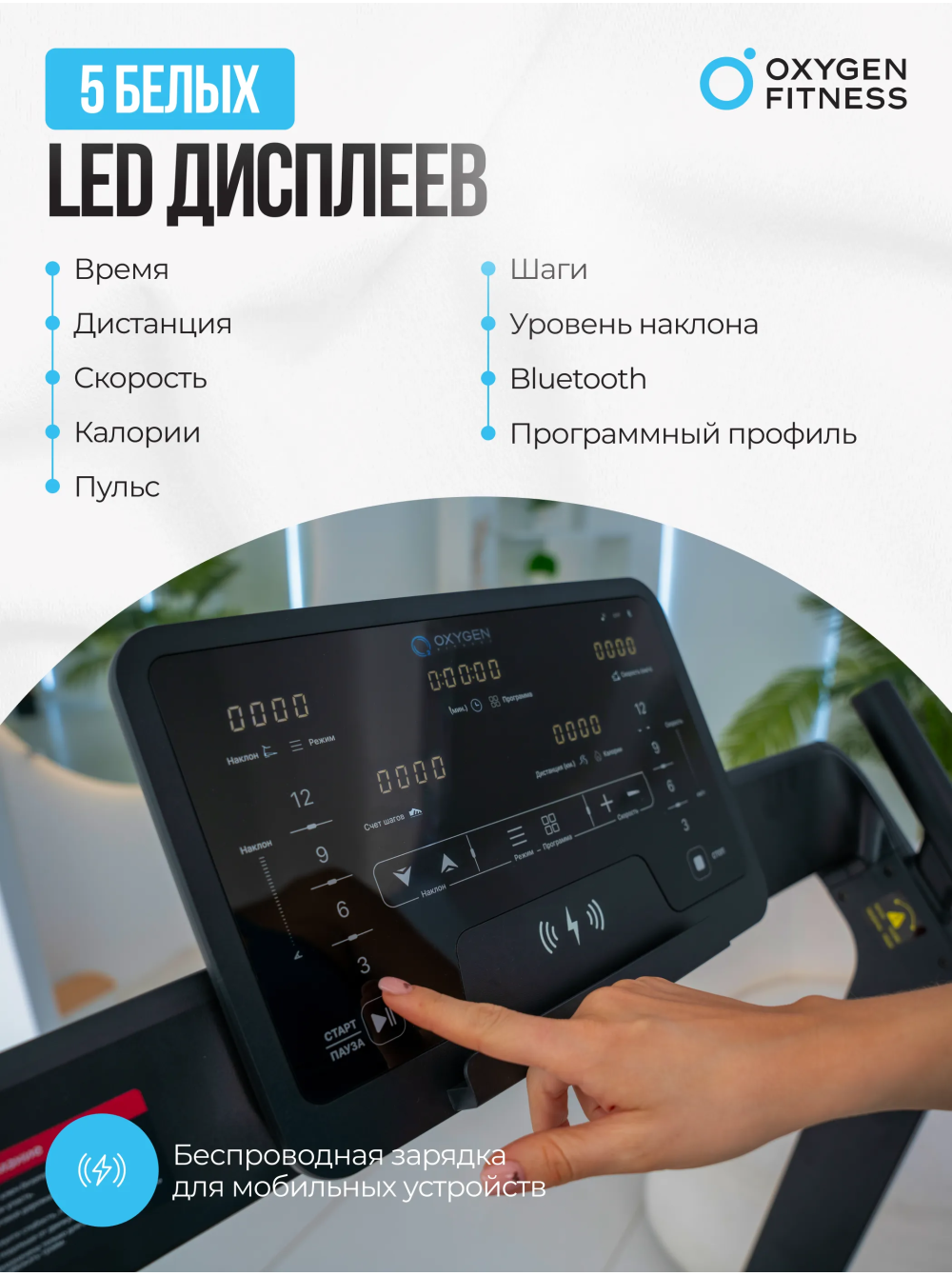 Беговая дорожка домашняя OXYGEN FITNESS X-CONCEPT SPORT 0 отзывов 109990р.129990р. Вы экономите: 20000р. (-15%) Производитель: OXYGEN Наличие: Есть в наличии Модель: X_CONCEPT_SPORT Одежда Обувь Как выбрать одежду своего размера? Купить Купить в один клик Скидки постоянным клиентам! Гарантия качества всех товаров магазина! Описание Отзывов (0) OXYGEN FITNESS X-CONCEPT SPORT - идеальное сочетание элегантного дизайна, передовых технологий и непревзойденного комфорта, который предлагает вам возможность превратить ваш дом в центр здоровья и активного образа жизни. Антикоррозийная обработка и покраска в 1 слой обеспечивают долговечность и сохранение привлекательного внешнего вида тренажера на протяжении многих лет использования. Скорость тренажера регулируется в диапазоне от 1 до 18 км/ч, позволяя вам выбрать интенсивность тренировки в соответствии с вашими потребностями и уровнем физической подготовки. Двигатель постоянного тока, мощностью 3.5 л.с. от Fuji Electric обеспечивает плавное и бесшумное функционирование, создавая идеальные условия для вашей тренировки. В пиковой нагрузке мощность достигает 5 л.с. Беговое полотно толщиной 1.6 мм состоит из многослойного коммерческого материала. Размер которого составляет 140*51 см, предоставляя достаточно пространства для комфортного бега или ходьбы. А главным преимуществом является то, что беговая дорожка Тренажер обладает электрической регулировкой угла наклона, предлагая 12 уровней наклона, чтобы вы могли изменять интенсивность тренировки и преодолевать новые вызовы. Безусловным преимуществом серии является инновационная система перемещения Smart Move - за счет 4 разнонаправленных роликов тренажер можно перемещать в двух проекциях (вперед-назад и вправо-влево) - это очень удобно и, главное, легко в условиях небольших площадей городских квартир. Система амортизации тренажера включает 6 профессиональных эластомеров VCS™, которые эффективно поглощают удары и снижают нагрузку на суставы, обеспечивая безопасность и комфорт во время тренировки. Консоль беговой дорожки оснащена 5 LED-дисплеями с белой индикацией, на которых отображаются различные показатели, такие как время, скорость, дистанция, уровень наклона, калории, пульс, шаги и профиль программы. OXYGEN FITNESS X-CONCEPT SPORT имеет 16 программ тренировок, включая ручной режим и 15 встроенных программ, которые помогут вам разнообразить свою тренировочную программу и достичь максимальных результатов. Тренажер обладает мультимедийными возможностями, включая воспроизведение аудио файлов через встроенные динамики. Также он интегрируется с мобильными приложениями Fitshow и Kinomap через Bluetooth, что позволяет вам взаимодействовать с тренировкой и наслаждаться интерактивными тренировками. OXYGEN FITNESS X-CONCEPT SPORT обладает компактными размерами в сложенном виде и в рабочем состоянии, что позволяет легко разместить его дома. Тренажер также оснащен транспортировочными роликами и функцией ультракомпактного складывания Smart Fold для удобства хранения и перемещения. Максимальный вес пользователя составляет 130 кг, что делает этот тренажер идеальным выбором для различных пользователей. Получите 5-летнюю гарантию на OXYGEN FITNESS X-CONCEPT SPORT и начните свое путешествие к здоровью и фитнесу прямо у себя дома. Бренд Oxygen Fitness Артикул X_CONCEPT_SPORT Назначение домашнее Тип тренажера электрическая беговая дорожка Двигатель 3.5 л.с. DC Fuji Electric Пико
