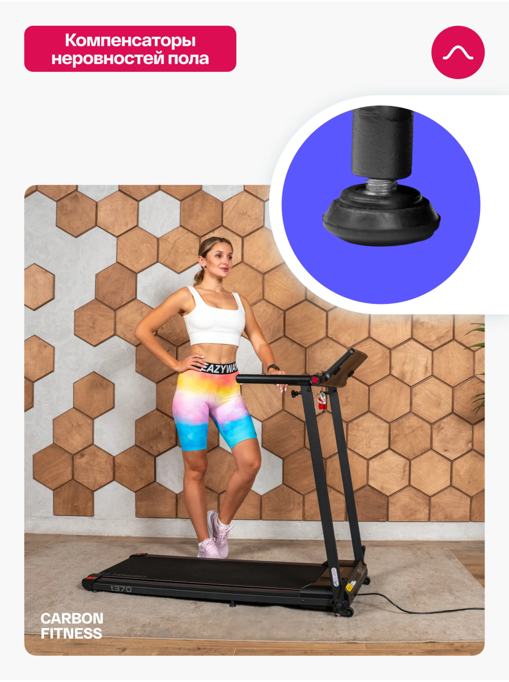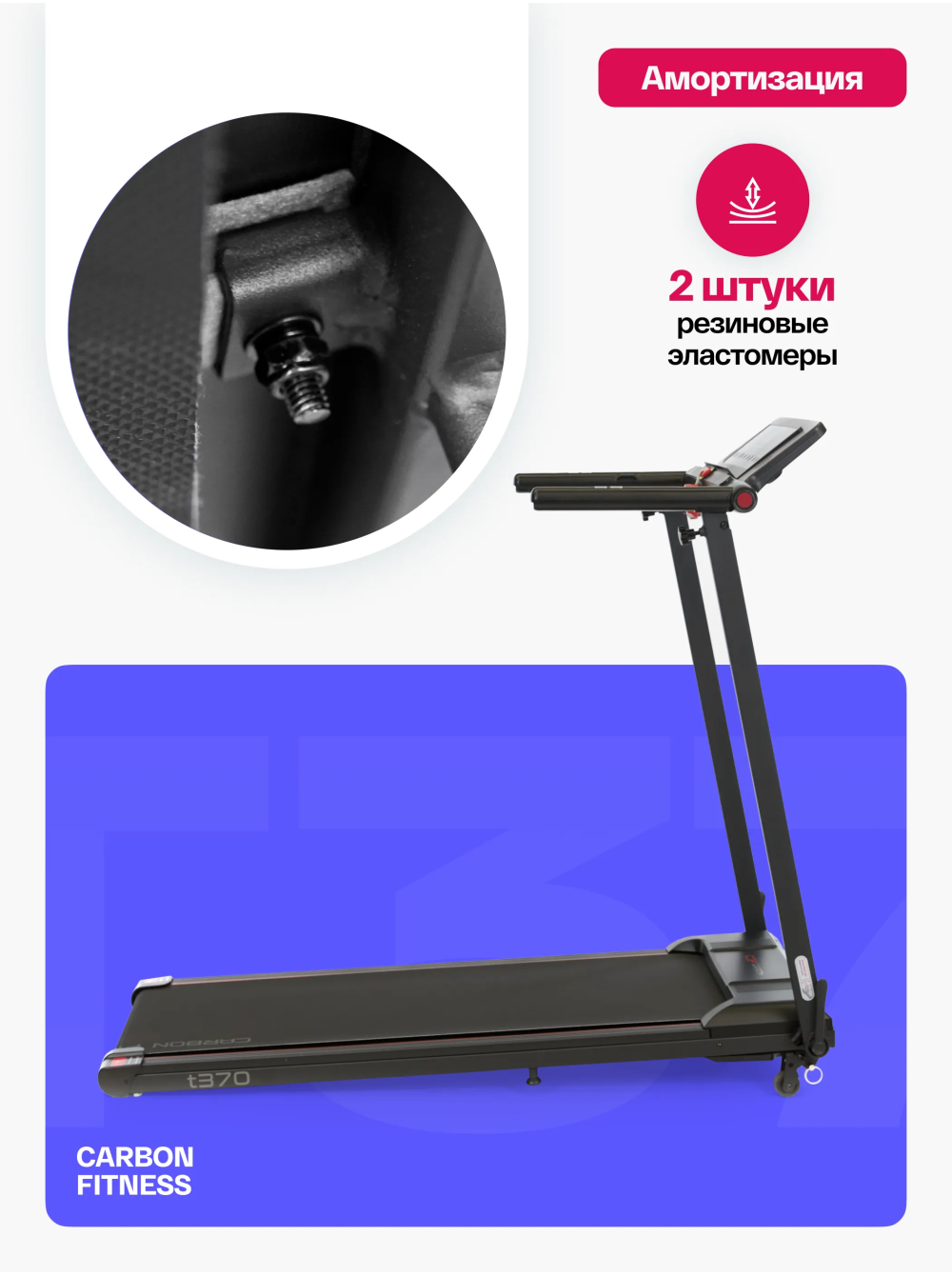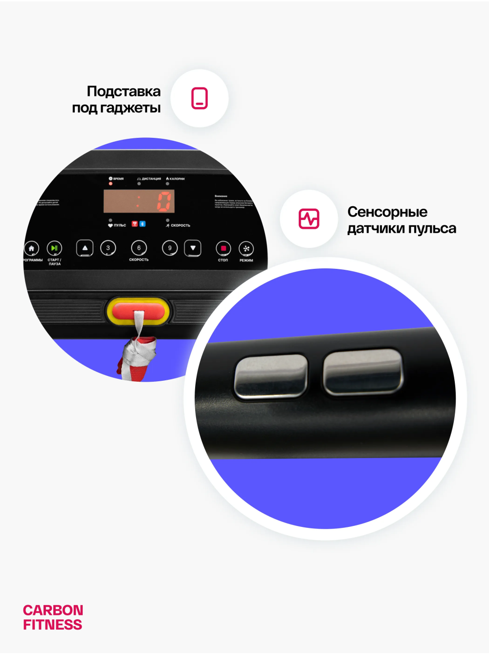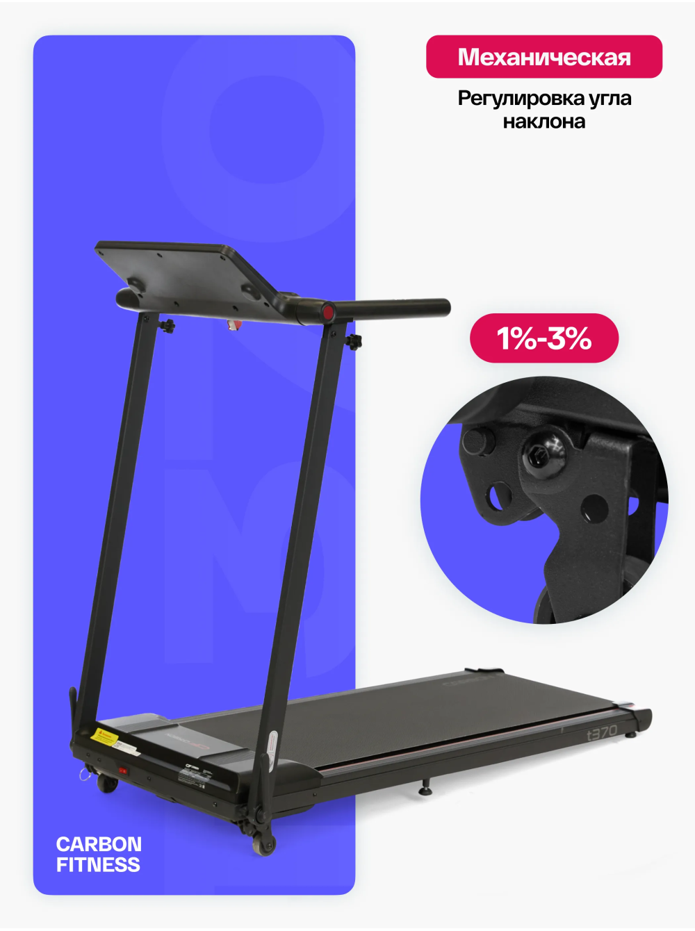 Беговая дорожка домашняя CARBON FITNESS T370 0 отзывов 26990р. Производитель: CARBON Наличие: Есть в наличии Модель: T370 Одежда Обувь Как выбрать одежду своего размера? Купить Купить в один клик Скидки постоянным клиентам! Гарантия качества всех товаров магазина! Описание Отзывов (0) Особенности:многофункциональная консоль с подставкой для телефона сенсорные датчики пульса удобная рукоять для складывания консоли длина бегового полотна см:102*40 см компенсаторы неровностей пола c эластомером рукоять для складывания дорожки механическая регулировка угла наклона 2 резиновых эластометра для еще большей амортизации БрендCarbon FitnessАртикулT370Назначение домашнееТип тренажера электрическая беговая дорожкаДвигатель1.5 л.с. DC Leeson Electric CorporationПиковая мощность двигателя, л.с.2.5 DCСкорость, км/ч1-12Максимальный вес пользователя 110Беговое полотно1.4 мм, антискользящееДлина бегового полотна, см102Ширина бегового полотна, см40Регулировка угла наклона ручнаяКоличество уровней наклона3Материал декиМДФ, парафинированнаяТолщина деки12 ммСистема амортизации2 плоских резиновых эластомера Natural™Измерение пульсаестьКонсоль LEDТип консоли LED дисплей с красной индикациейПоказания консоливремя, скорость, дистанция, калории, пульс, программыОбщее количество программ16Спецификация программручной режим, 12 встроенных, 3 целевые (время, дистанция, калории)Мультимедиаколонки BluetoothЯзык интерфейсаанглийскийСкладная конструкция ДаПодставка под планшет/смартфонДаТранспортировочные роликиДаКомпенсаторы неровностей полаДаДополнительные функциисенсорные датчики на поручняхДлина в рабочем состоянии, см120Ширина в рабочем состоянии, см59Высота в рабочем состоянии, см110Вес нетто, кг25Вес брутто, кг30Подключение к сети220 ВПроизводительFitathlon Group (подразделение в Германии)Страна изготовленияКНР CARBON FITNESS T370 — это домашняя беговая дорожка, которая предлагает весь необходимый функционал для комфортных и эффективных тренировок в домашних условиях. Модель оснащена мотором мощностью 1,5 л.с. с пиковым значением 2,5 л.с., что позволяет развивать скорость до 12 км/ч, делая тренировки подходящими как для начинающих, так и для продвинутых пользователей. LED-дисплей консоли с понятным интерфейсом на английском языке отображает основные параметры тренировки: время, скорость, дистанцию, количество потраченных калорий и пульс. Встроенные сенсорные датчики позволяют отслеживать пульс прямо во время занятий. Для удобства пользователя дорожка оборудована Bluetooth-колонкой для прослушивания музыки с телефона и подставкой для смартфона или планшета. CARBON FITNESS T370 предлагает выбор из 16 программ: 12 предустановленных режимов и 3 целевые программы (время, дистанция, калории). Также доступен ручной режим, что дает пользователю возможность гибко управлять тренировками. Угол наклона дорожки регулируется механически, предлагая 3 варианта наклона добавляя разнообразие в занятия. Благодаря складной конструкции, небольшим габаритам и транспортировочным роликам, дорожка легко хранится и перемещается. Амортизационная система из двух резиновых эластометров снижает нагрузку на суставы, делая тренировки безопасными. Максимальный вес пользователя составляет 110 кг, что подтверждает надежность и прочность модели. CARBON FITNESS T370 станет надежным помощником для поддержания физической формы и ведения здорового образа ж