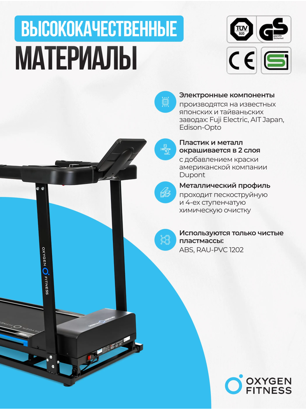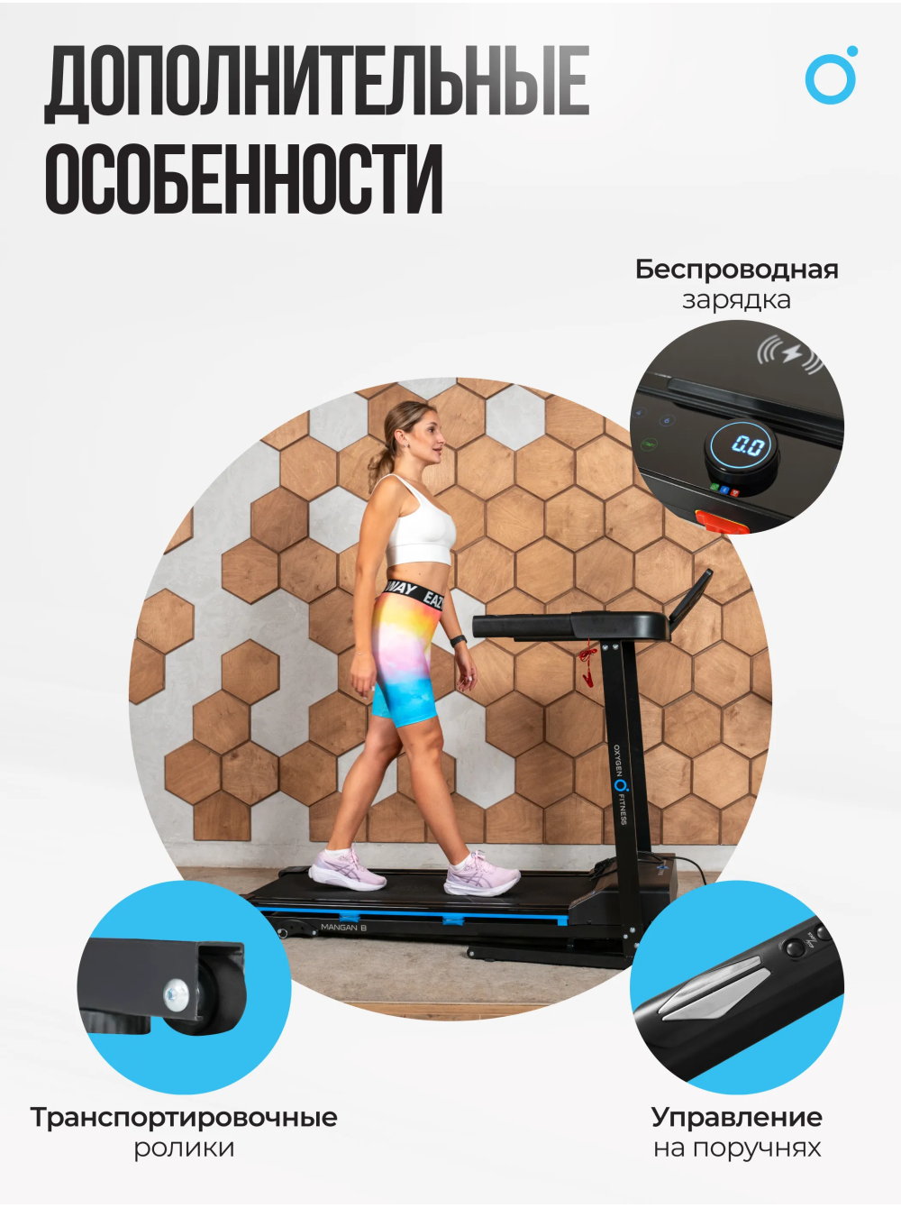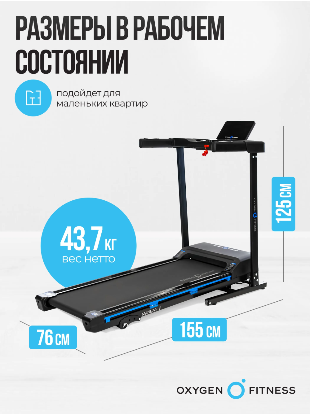 Беговая дорожка домашняя OXYGEN FITNESS MANGAN B 0 отзывов 53990р. Производитель: OXYGEN Наличие: Есть в наличии Модель: MANGAN_B Одежда Обувь Как выбрать одежду своего размера? Купить Купить в один клик Скидки постоянным клиентам! Гарантия качества всех товаров магазина! Описание Отзывов (0) Особенности:система складывания Soft Drop System™ система амортизации PHYSIO-RUN™МЕХАНИЧЕСКАЯ РЕГУЛИРОВКА УГЛА НАКЛОНАБеговое полотно размером 120x42 см ПОРУЧНИ С ДАТЧИКАМИ ПУЛЬСА И КЛАВИШАМИ БЫСТРОГО УПРАВЛЕНИЯ МНОГОФУНКЦИОНАЛЬНАЯ КОНСОЛЬ С БЕСПРОВОДНОЙ ЗАРЯДКОЙКЛЮЧ БЕЗОПАСНОСТИТРАНСПОРТИРОВОЧНЫЕ РОЛИКИ КОМПЕНСАТОРЫ НЕРОВНОСТЕЙ ПОЛА БрендOxygen FitnessАртикулMANGAN_BНазначение домашнееТип тренажера электрическая беговая дорожкаДвигатель2.0 л.с. DC Fuji ElectricПиковая мощность двигателя, л.с.3.6 DCСкорость, км/ч1-16Максимальный вес пользователя 120Беговое полотно1.4 мм, долговечное многослойное DiamondДлина бегового полотна, см120Ширина бегового полотна, см41Регулировка угла наклона ручнаяКоличество уровней наклона3Материал декиМДФ, парафинированнаяТолщина деки15 ммСистема амортизации4 силикон-гелиевые подушки с пружинами Physio-Run™Измерение пульсаестьКонсоль LCDТип консоли LCD дисплей с белой индикациейПоказания консолискорость, калории, время, дистанция, пульс, жироанализатор, бегОбщее количество программ32Спецификация программручной режим, 24 предустановленные, 3 пользовательские, жироанализатор, 3 целевые (время, дистанция, калории)Интеграционные технологииBluetooth для работы с тренировочным мобильным приложением (Fitshow™, Kinomap™, Zwift™)Язык интерфейсарусский, английскийСкладная конструкция ДаПодставка под планшет/смартфонДаТранспортировочные роликиДаДополнительные функциисенсорные датчики на поручнях, возможность подключения кардиодатчика Bluetooth через фитнес-приложенияДополнительные особенности тренажерауправление скоростью на поручнях, беспроводная зарядкаДлина в рабочем состоянии, см155Ширина в рабочем состоянии, см76Высота в рабочем состоянии, см125Вес нетто, кг43.7Вес брутто, кг50.8Подключение к сети220 ВПроизводительFitathlon Group (подразделение в Германии)Страна изготовленияКНР OXYGEN FITNESS MANGAN B — это компактная и мощная домашняя беговая дорожка, созданная для пользователей, которые хотят заниматься спортом с комфортом у себя дома. С мощным двигателем Fuji Electric на 2.0 л.с. (с пиковым значением 3.6 л.с.), MANGAN B обеспечивает плавный бег и скорость до 16 км/ч, что идеально подходит для пользователей весом до 120 кг. Легкая механическая регулировка угла наклона (от 1% до 3%) позволяет имитировать легкий подъем и добавлять разнообразие в тренировку. Консоль с LCD-дисплеем и белой подсветкой выводит все ключевые показатели тренировки: скорость, калории, время, дистанция и пульс. Всего предусмотрено 32 программы, включая 24 предустановленных режима, 3 пользовательских, 3 целевых программы (по времени, дистанции и калориям), а также встроенный жироанализатор. Датчики пульса удобно расположены на поручнях, и благодаря Bluetooth дорожка интегрируется с популярными тренировочными приложениями (Fitshow™, Kinomap™, Zwift™), добавляя элемент геймификации и разнообразия в тренировочный процесс. Беговое полотно размером 120x42 см выполнено из многослойного материала Diamond, что повышает его долговечность и устойчивость к износу. Встроенная система амортизации с 4 селикон-гелиевыми подушками PHYSIO-RUN™ помогает снизить ударную нагр