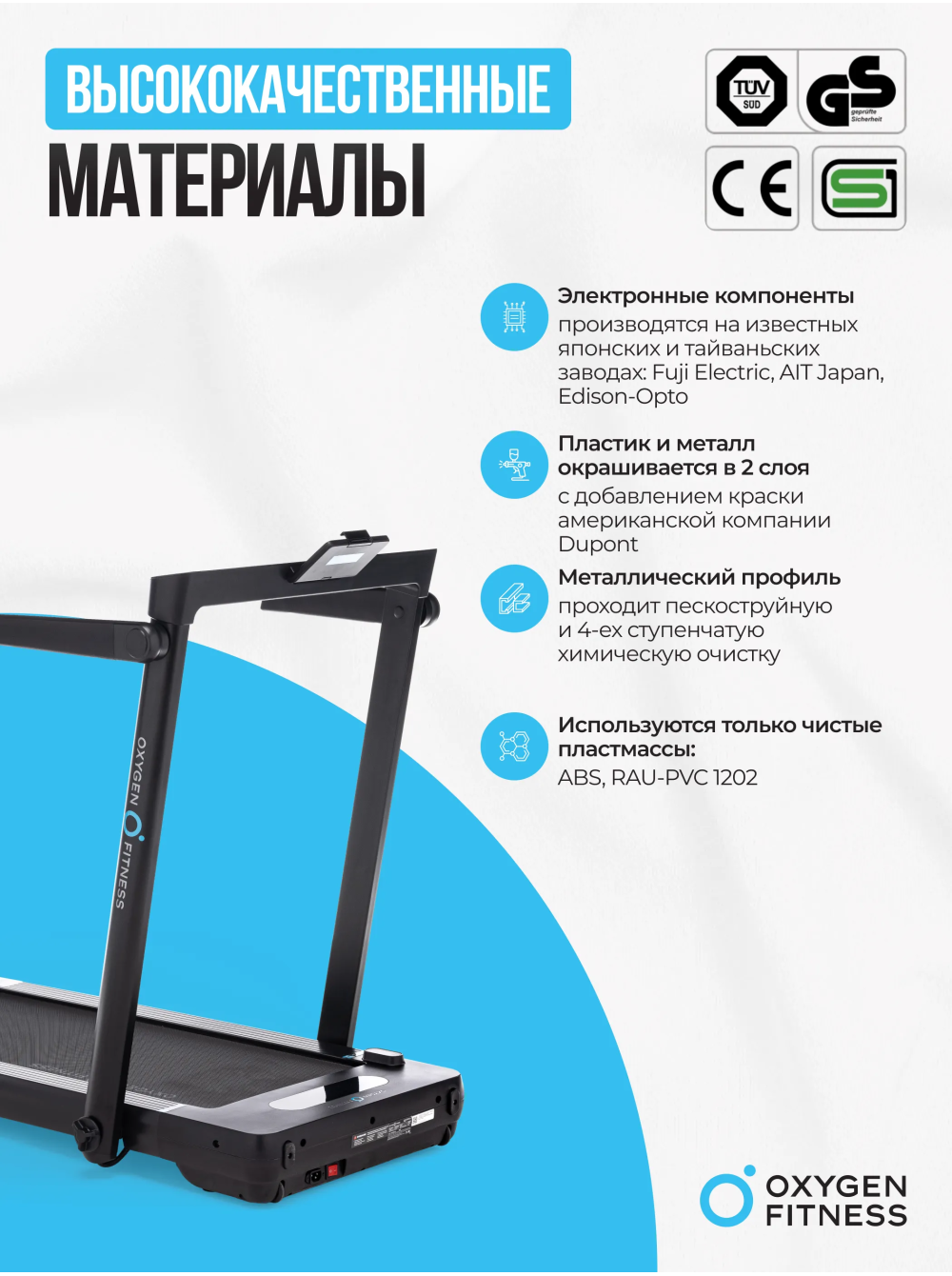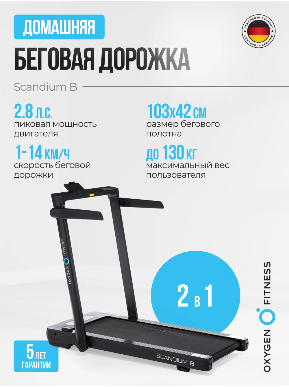 Беговая дорожка домашняя OXYGEN FITNESS SCANDIUM B 0 отзывов 39990р. Производитель: OXYGEN Наличие: Есть в наличии Модель: SCANDIUM_B Документы (инструкции): mpdf.php?url=%2Fcatalog%2Fbegovye-dorozhki%2Fbegovaya-dorozhka-domashnyaya-oxygen-fitness-scandium-b-%2F&pdfversion=1&name_file=begovaya-dorozhka-domashnyaya-oxygen-fitness-scandium-b- Одежда Обувь Как выбрать одежду своего размера? Купить Купить в один клик Скидки постоянным клиентам! Гарантия качества всех товаров магазина! Описание Отзывов (0) Документы Особенности:МНОГОФУНКЦИОНАЛЬНАЯ КОНСОЛЬ И ЭРГОНОМИЧНЫЕ ПОРУЧНИ УВЕЛИЧЕННАЯ ШИРИНА БЕГОВОГО ПОЛОТНА ДО 43 СМКОМПЕНСАТОРЫ НЕРОВНОСТЕЙ ПОЛА НА АМОРТИЗИРУЮЩИХ ПОДУШКАХ БрендOxygen FitnessАртикулSCANDIUM_BНазначение домашнееТип тренажера электрическая беговая дорожкаДвигатель1.75 л.с. DC Fuji ElectricПиковая мощность двигателя, л.с.2.8 DCСкорость, км/ч1-14 (1-6 в режиме панели)Максимальный вес пользователя 130Беговое полотно1.4 мм, антискользящееДлина бегового полотна, см103Ширина бегового полотна, см42Материал декиМДФ, парафинированнаяТолщина деки15 ммСистема амортизации6 эластомеров и 2 демпфирующие суперподушки Cushion™Консоль LEDТип консоли 3 LED дисплeя c белой индикацией + 3 LED дисплея c белой индикацией на моторном отсеке (режим панели)Показания консоливремя, скорость, дистанция, калории, шагиОбщее количество программ19Спецификация программручной режим, 15 предустановленных, 3 пользовательскихЯзык интерфейсаанглийскийСкладная конструкция ДаПодставка под планшет/смартфонДаТранспортировочные роликиДаКомпенсаторы неровностей полаДаДополнительные особенности тренажерарежим панели (без поручня), пульт дистанционного управления (в режиме панели)Длина в рабочем состоянии, см125.5Ширина в рабочем состоянии, см75.8Высота в рабочем состоянии, см110Вес нетто, кг32.5Вес брутто, кг40Подключение к сети220 ВПроизводительFitathlon Group (подразделение в Германии)Страна изготовленияКНР Погружайтесь в мир фитнеса с беговой дорожкой OXYGEN FITNESS SCANDIUM B, которая объединяет в себе инновационные технологии и непревзойденный комфорт. Этот стильный и компактный тренажер создан, чтобы сделать ваши домашние тренировки максимально эффективными и удобными, предлагая уникальные возможности для занятий в любом режиме. SCANDIUM B — это беговая дорожка, которая адаптируется под вас. В режиме со сложенными поручнями она идеально подходит для легких прогулок или восстановления, обеспечивая скорость до 6 км/ч. А когда вы готовы к более интенсивной тренировке, просто разложите поручни и разгонитесь до 14 км/ч! Теперь вы можете менять стиль тренировки в зависимости от настроения и целей — от расслабляющей ходьбы до энергичного бега. Двигатель мощностью 1,75 л.с. с пиковым значением до 2,8 л.с. гарантирует стабильную работу, поддерживая вас на каждом шаге. Прочная и долговечная рама с антикоррозийной обработкой и однослойной покраской обеспечивает безопасность и устойчивость при любых нагрузках. Беговое полотно размером 103х42 см с антискользящим покрытием и амортизационной системой Natural Springs™ — 6 эластомеров и 2 демпфирующие суперподушки — создано для комфорта и защиты ваших суставов. Интуитивно понятная консоль с 4 LED-дисплеями отображает все важные параметры тренировки: время, скорость, дистанцию, калории и количество шагов. Выбирайте из 19 программ тренировок, включая 15 предустановленных, 3 пользовательские и ручной режим, чтобы достичь любых целей. А благодаря пульту дистанционного управления 