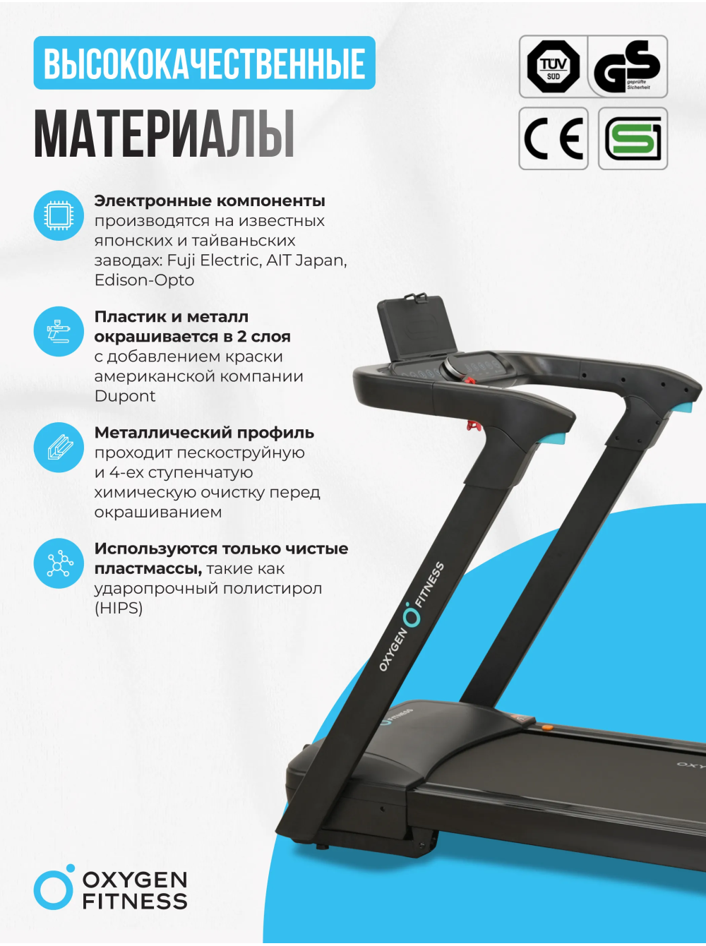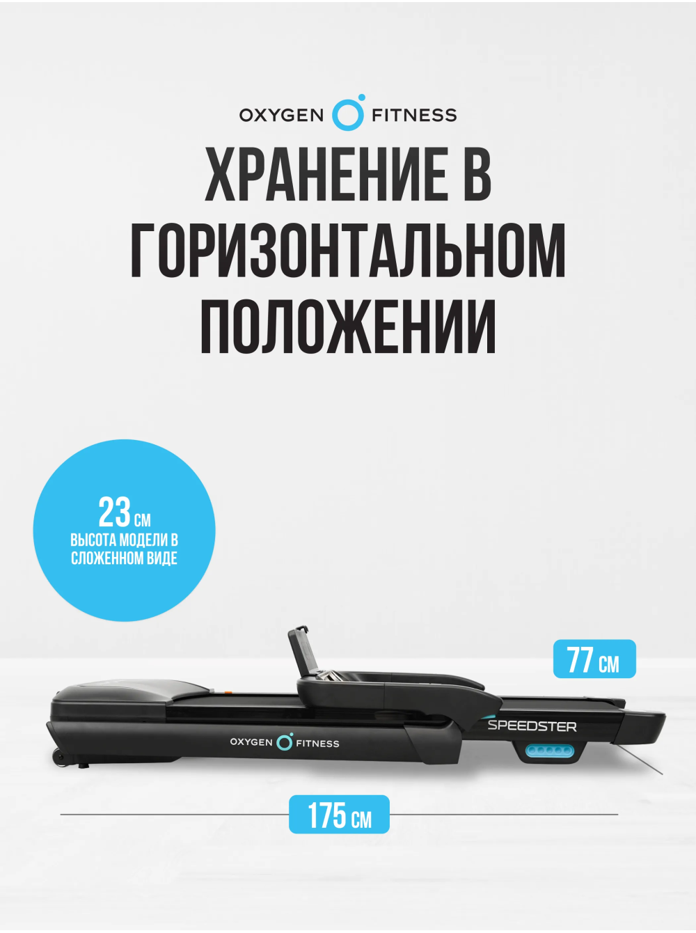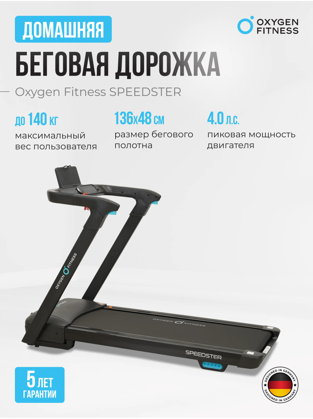 Беговая дорожка домашняя OXYGEN FITNESS SPEEDSTER 0 отзывов 69990р. Производитель: OXYGEN Наличие: Есть в наличии Модель: SPEEDSTER Документы (инструкции): mpdf.php?url=%2Fcatalog%2Fbegovye-dorozhki%2Fbegovaya-dorozhka-domashnyaya-oxygen-fitness-speedster%2F&pdfversion=1&name_file=begovaya-dorozhka-domashnyaya-oxygen-fitness-speedster Одежда Обувь Как выбрать одежду своего размера? Купить Купить в один клик Скидки постоянным клиентам! Гарантия качества всех товаров магазина! Описание Отзывов (0) Документы Особенности: БрендOxygen FitnessАртикулSPEEDSTERНазначение домашнееТип тренажера электрическая беговая дорожкаДвигатель2.0 л.с. DC Fuji ElectricПиковая мощность двигателя, л.с.4.0 DCСкорость, км/ч1-18Максимальный вес пользователя 140Беговое полотно1.6 мм антискользящееДлина бегового полотна, см136Ширина бегового полотна, см48Регулировка угла наклона электроннаяКоличество уровней наклона15Материал декиМДФ, парафинированнаяТолщина деки12 ммСистема амортизации4 профессиональных динамических эластомера VCS™ и система Soft LEG™ Измерение пульсаестьКонсоль LEDТип консоли LED дисплей с синей индикацией + круглый функциональный LED дисплейПоказания консоливремя, скорость, дистанция, калории, пульс, уровень наклонаОбщее количество программручной режимСпецификация программбыстрый старт, ручной режимМультимедиаколонки BluetoothЯзык интерфейсарусский, английскийСкладная конструкция ДаПодставка под планшет/смартфонДаТранспортировочные роликиДаДополнительные функциисенсорные датчики на поручняхДополнительные особенности тренажералегкое складывание и смазывание бегового полотна (автосмазка), вертикальное хранение, поставляется в собранном видеДлина в рабочем состоянии, см175Ширина в рабочем состоянии, см77Высота в рабочем состоянии, см136Вес нетто, кг72.5Вес брутто, кг81.5Подключение к сети220 ВПроизводительFitathlon Group (подразделение в Германии)Страна изготовленияКНР Беговая дорожка OXYGEN FITNESS SPEEDSTER предназначена для домашнего использования и предоставляет пользователям возможность комфортных тренировок. Складная конструкция позволяет легко хранить тренажер, занимая минимум места. При этом дорожка выполнена из высококачественных материалов: рама из высокопрочного полистирола HIPS с антикоррозийной обработкой и двухслойной покраской обеспечивает долговечность и надежность. С мощным двигателем 2.0 л.с. (в пике 4.0 л.с.) OXYGEN FITNESS SPEEDSTER обеспечивает скорость от 1 до 18 км/ч, что позволяет адаптировать тренировки под любые уровни подготовки. Беговое полотно размером 136 на 48 см выполнено из антискользящего материала, а система амортизации, включающая 4 профессиональных динамических эластомера VCS™ и систему Soft LEG™, гарантирует комфорт и безопасность во время занятий. Возможность вертикального хранения, а также транспортировочные ролики делают использование дорожки еще более удобным. Консоль беговой дорожки оснащена LED-дисплеем с синей индикацией, который отображает ключевые показатели: время, скорость, дистанцию, калории и пульс. Пользователи могут регулировать угол наклона в 15 уровнях с помощью электронной системы. Дополнительно предусмотрены разъемы USB и AUX для зарядки смартфонов и подключения мультимедиа, а встроенные колонки создают атмосферу мотивации во время тренировок. Беговая дорожка OXYGEN FITNESS SPEEDSTER — это отличный выбор для домашних тренировок, сочетающий в себе высокую функциональность, комфорт и современный дизайн. Ключевые преимущества OXYGEN FITNESS SPEEDSTER: 