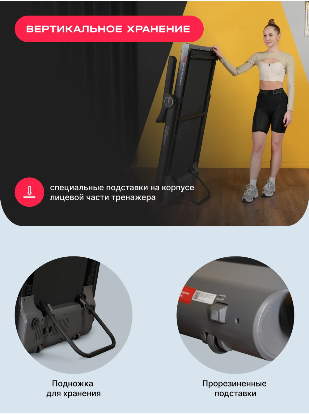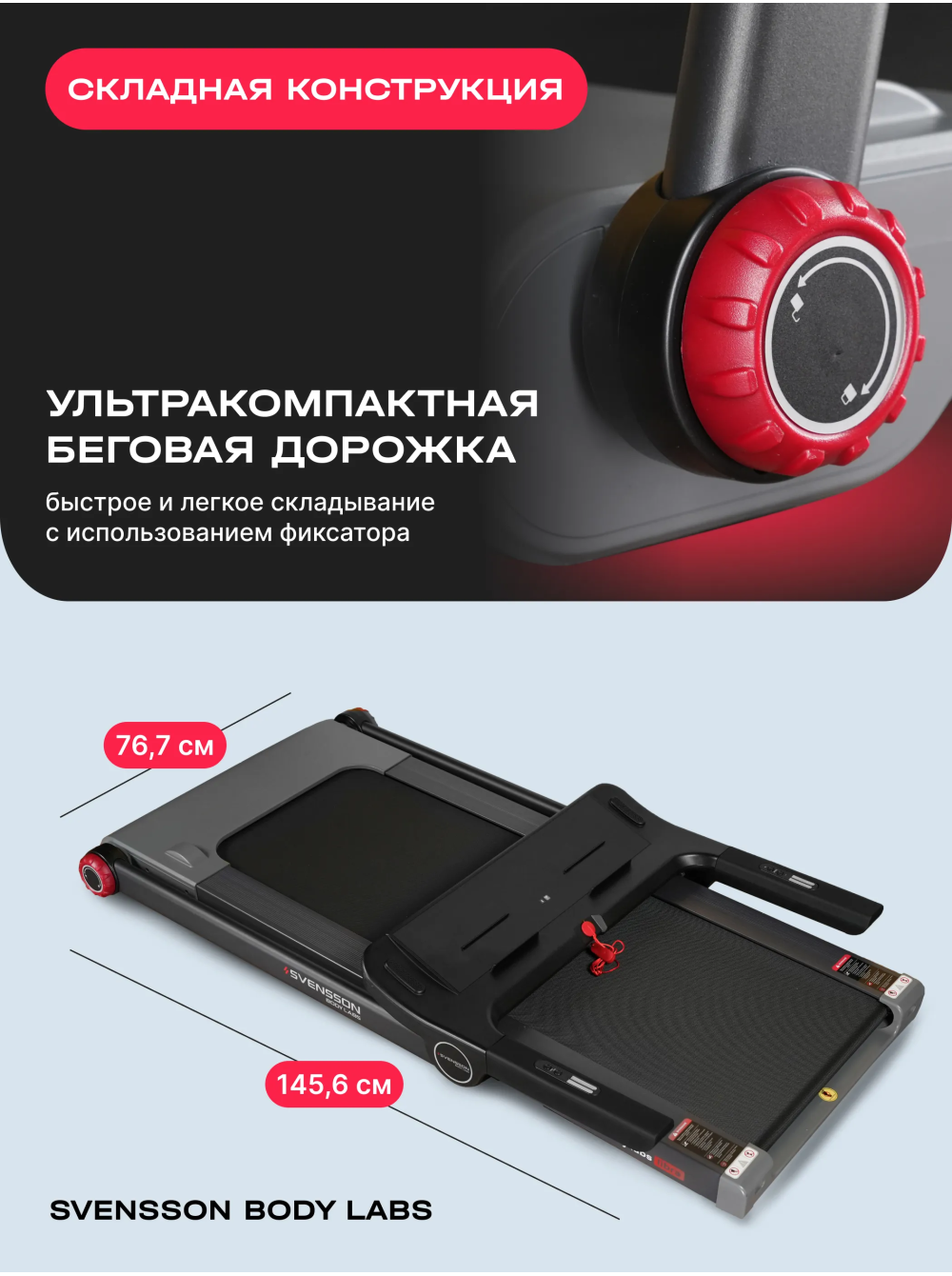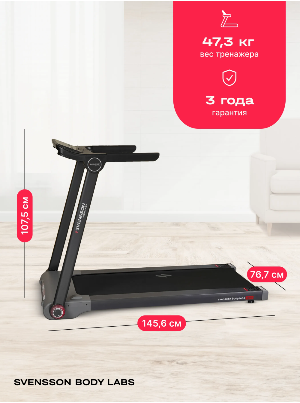 Беговая дорожка домашняя SVENSSON BODY LABS LIBRA 0 отзывов 62990р. Производитель: SVENSSON INDUSTRIAL Наличие: Есть в наличии Модель: LIBRA Одежда Обувь Как выбрать одежду своего размера? Купить Купить в один клик Скидки постоянным клиентам! Гарантия качества всех товаров магазина! Описание Отзывов (0) Особенности:Широкое беговое полотноСкладная конструкцияУдобные фиксаторыВертикальное хранениеШирокие поручни с датчиками пульса и быстрыми кнопками управления дорожкойПодставка под смартфон БрендSvensson Body LabsАртикулLIBRAНазначение домашнееТип тренажера электрическая беговая дорожкаДвигатель2.25 л.с. DC Mitsubishi Motors CorporationПиковая мощность двигателя, л.с.4.4 DCСкорость, км/ч1-15Максимальный вес пользователя 130Беговое полотно1.6 мм, многослойное антискользящееДлина бегового полотна, см123Ширина бегового полотна, см44Материал декиМДФ, парафинированнаяТолщина деки15 ммСистема амортизации8 эластомеров, 2 демпфирующие подушкиИзмерение пульсаестьКонсоль LEDТип консоли LED дисплей с голубой индикациейПоказания консоливремя, скорость, дистанция, калории, пульсОбщее количество программручной режимСпецификация программбыстрый старт, ручной режимМультимедиаколонки BluetoothИнтеграционные технологииBluetooth для работы с тренировочным мобильным приложением (EQIsports™)Язык интерфейсарусский, английскийСкладная конструкция ДаПодставка под планшет/смартфонДаТранспортировочные роликиДаКомпенсаторы неровностей полаДаДополнительные функциисенсорные датчики на поручнях, кнопки управления на поручнях (старт/стоп, скорость), возможность подключения кардиодатчика Bluetooth через фитнес-приложенияДополнительные особенности тренажера пульт управления, вертикальное хранениеДлина в рабочем состоянии, см145.6Ширина в рабочем состоянии, см76.7Высота в рабочем состоянии, см107.5Вес нетто, кг47.3Вес брутто, кг55.3Подключение к сети220 ВПроизводительFitathlon Group (подразделение в Швеции)Страна изготовленияКНР Беговая дорожка SVENSSON BODY LABS LIBRA — это надежное решение для тех, кто хочет поддерживать физическую активность в домашних условиях. С максимальной нагрузкой до 130 кг и мощным двигателем 2,25 л.с. (пиковая мощность 4,4 л.с.), данная модель обеспечивает плавный и комфортный бег с диапазоном скорости от 1 до 15 км/ч. Это позволяет пользователям адаптировать тренировки под свои индивидуальные потребности, начиная с легкой разминки и заканчивая интенсивными пробежками. Беговая дорожка оснащена системой амортизации, состоящей из 8 эластомеров и 2 демпфирующих подушек, что позволяет значительно снизить нагрузку на суставы и минимизировать риск травм. Кроме того, дорожка имеет прочное беговое полотно толщиной 1,6 мм и антикоррозийную обработку рамы, что обеспечивает долговечность и надежность устройства. Управление на поручнях с кнопками СТАРТ/СТОП и регулировки скорости добавляет удобства во время тренировок. С дорожкой SVENSSON BODY LABS LIBRA вы можете наслаждаться тренировками с музыкой благодаря встроенной колонке Bluetooth. Дисплей LED с голубой индикацией показывает важные параметры: время, скорость, дистанцию, калории и пульс, что помогает отслеживать прогресс. Также предусмотрен режим быстрого старта и ручной режим, что делает тренировки более адаптивными. Беговая дорожка поддерживает подключение к мобильным приложениям через Bluetooth для более эффективного контроля за тренировками. Беговая дорожка SVENSSON BODY LABS