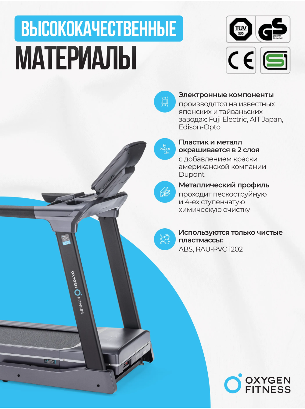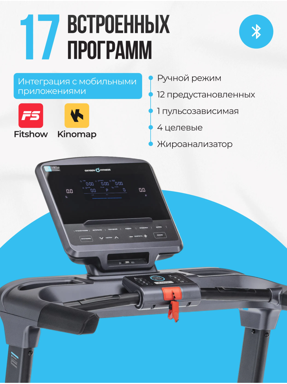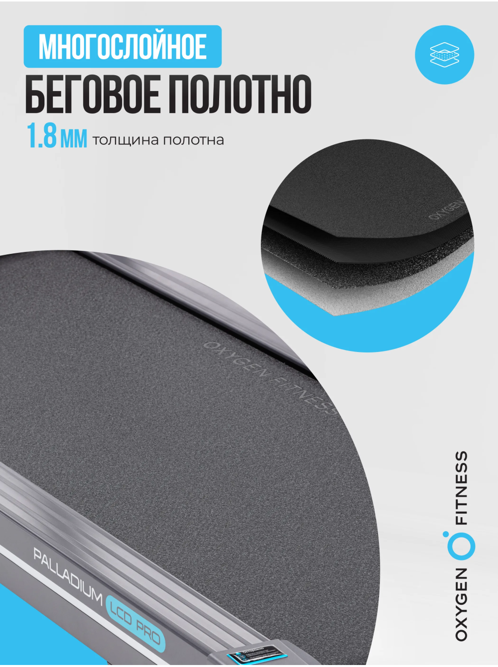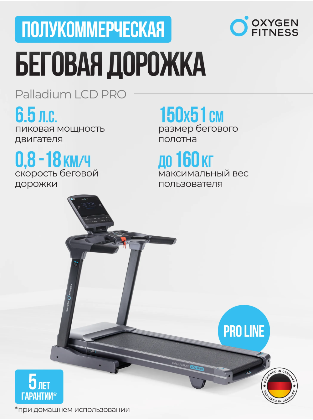 Беговая дорожка полукоммерческая OXYGEN FITNESS PALLADIUM LCD PRO 0 отзывов 154990р. Производитель: OXYGEN Наличие: Есть в наличии Модель: PALLADIUM_LCD_PRO Одежда Обувь Как выбрать одежду своего размера? Купить Купить в один клик Скидки постоянным клиентам! Гарантия качества всех товаров магазина! Описание Отзывов (0) Особенности:Габариты в сложенном виде 128*89*160 смдвухфазная гидравлическая система складывания easyFOLD™ многофункциональная консоль с подстаканниками, датчиками пульса, раземами для телефона и наушников Длина бегового полотна 150*51 смметаллические направляющие 8 прорезиненных эластомеров с пружинами SPRING-TRACK™транспортировочные ролики БрендOxygen FitnessАртикулPALLADIUM_LCD_PROНазначение полукоммерческоеТип тренажера электрическая беговая дорожкаДвигатель4.0 л.с. AC Fuji ElectricПиковая мощность двигателя, л.с.6.5 ACСкорость, км/ч0,8-18Максимальный вес пользователя 160Беговое полотно1.8 мм, долговечное многослойное полимерное беговое полотно Habasit NVT-218Длина бегового полотна, см150Ширина бегового полотна, см51Регулировка угла наклона электроннаяКоличество уровней наклона15Материал декиМДФ, парафинированнаяТолщина деки18 ммСистема амортизации8 прорезиненных эластомеров с пружинами spring-Track™Измерение пульсаестьСопряжение с кардиодатчикамигерцовый датчик (приобретается отдельно)Консоль LCDТип консоли LCD дисплей с белой индикациейПоказания консоливремя, скорость, дистанция, пульс, калории, количество шагов, уровень наклона, статус BluetoothОбщее количество программ18Спецификация программручной режим, 12 встроенных, 4 целевые (время, скорость, дистанция, калории), жироанализаторИнтеграционные технологииBluetooth для работы с тренировочным мобильным приложением (Fitshow™, Kinomap™)Язык интерфейсарусский, английскийСкладная конструкция ДаТранспортировочные роликиДаКомпенсаторы неровностей полаДаДополнительные функциисенсорные датчики на поручнях, возможность подключения кардиодатчика Bluetooth через фитнес-приложенияДополнительные особенности тренажераключ безопасности, отсеки для аксессуаров, металлические направляющиеДлина в рабочем состоянии, см190Ширина в рабочем состоянии, см89Высота в рабочем состоянии, см151Вес нетто, кг100Вес брутто, кг113Подключение к сети220 ВПроизводительFitathlon Group (подразделение в Германии)Страна изготовленияКНР Представляем вашему вниманию беговую дорожку OXYGEN FITNESS PALLADIUM LCD PRO — идеальный выбор для тех, кто стремится к высшему уровню в тренировках, будь то дома или в небольших клубах, отелях или реабилитационных центрах. Эта модель воплощает в себе передовые технологии и высокое качество, предлагая пользователям превосходные условия для эффективных и комфортных тренировок. Мощный двигатель Fuji Electric AC с пиковой мощностью 6,5 л.с. обеспечивает невероятную производительность и бесшумную работу, что делает тренировки не только продуктивными, но и приятными. Независимо от того, только ли вы начинаете свой путь в фитнесе или уже опытный спортсмен, возможность регулировать скорость в диапазоне от 0,8 до 18 км/ч позволит вам добиться желаемых результатов. Высокопрочная рама с антикоррозийной обработкой гарантирует, что дорожка прослужит вам долгие годы, сохраняя первозданный вид и функциональность. Просторное беговое полотно размером 150 см на 51 см, изготовленное из многослойного полимерного материала Habasit NVT-218 толщиной 1,8 мм, дарит вам уверенность и комфор