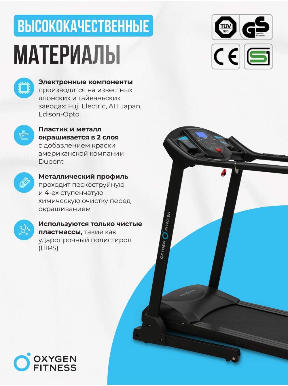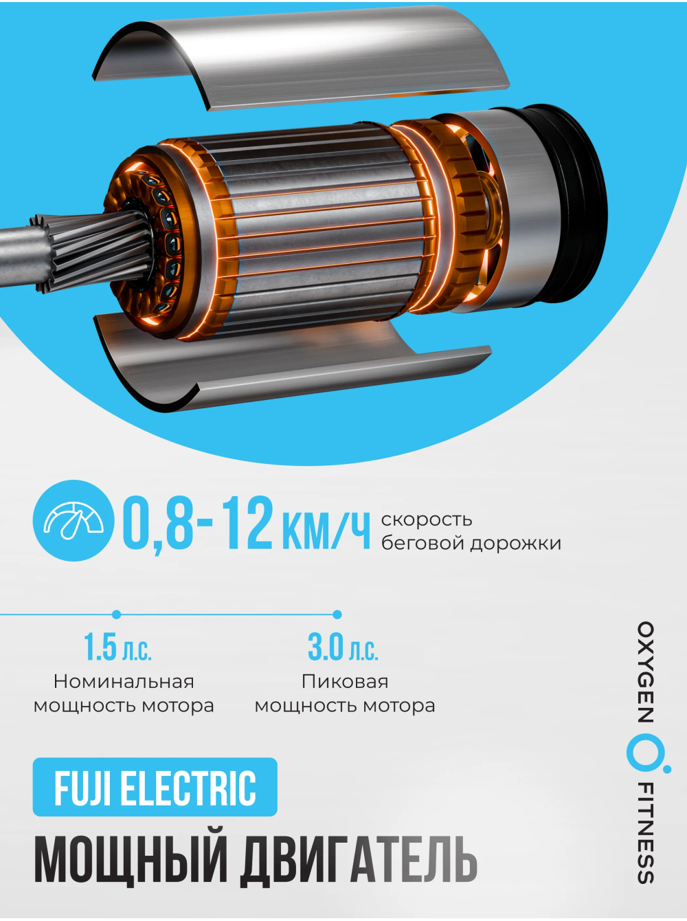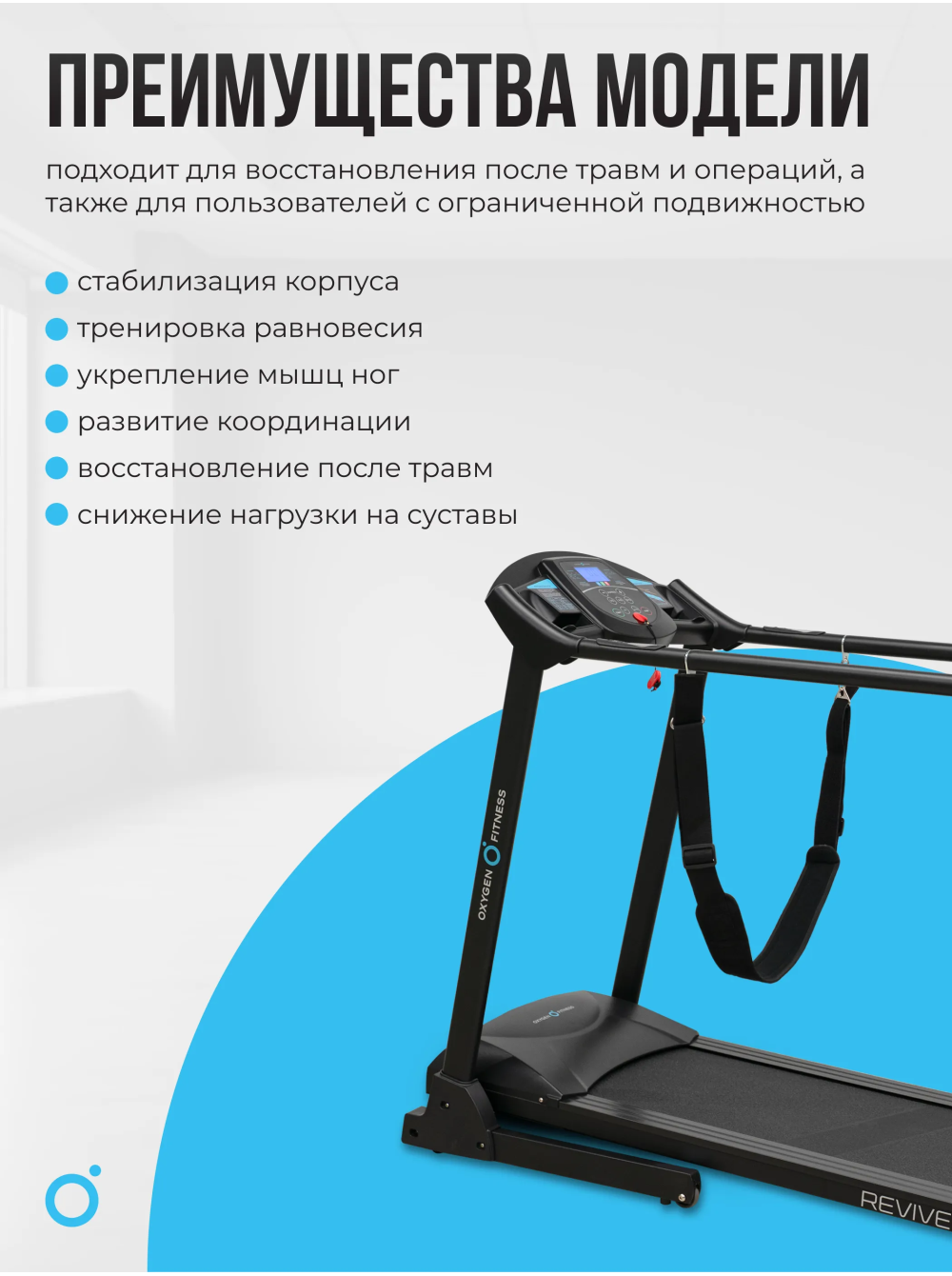 Беговая дорожка реабилитационная домашняя OXYGEN FITNESS REVIVE C 0 отзывов 49990р. Производитель: OXYGEN Наличие: Есть в наличии Модель: REVIVE_C Одежда Обувь Как выбрать одежду своего размера? Купить Купить в один клик Скидки постоянным клиентам! Гарантия качества всех товаров магазина! Описание Отзывов (0) Особенности: БрендOxygen FitnessАртикулREVIVE_CНазначение домашнееТип тренажера электрическая беговая дорожкаДвигатель1.5 л.с. DC Fuji ElectricПиковая мощность двигателя, л.с.3.0 DCСкорость, км/ч0,8 - 12Максимальный вес пользователя 120Беговое полотно1.4 мм антискользящееДлина бегового полотна, см122Ширина бегового полотна, см40Регулировка угла наклона ручнаяКоличество уровней наклона3Материал декиМДФ, парафинированнаяТолщина деки15 ммСистема амортизации4 cиликон-гелиевые амортизирующие подушки ortho-Deck Masters™, 4 плоских эластомера Natural™Измерение пульсаестьКонсоль LCDТип консоли LCD дисплей с голубой индикациейПоказания консоливремя, скорость, дистанция, калории, пульс, программаОбщее количество программ14Спецификация программбыстрый старт, 9 предустановленных, 3 режима обратного отсчета, жироанализаторИнтеграционные технологииBluetooth для работы с тренировочным мобильным приложением (Fitshow™, Kinomap™, Zwift™)Язык интерфейсарусский, английскийСкладная конструкция ДаТранспортировочные роликиДаКомпенсаторы неровностей полаДаДополнительные функциикнопки быстрого переключения скорости на консоли, сенсорные датчики на поручнях, возможность подключения кардиодатчика Bluetooth через фитнес-приложенияДополнительные особенности тренажераподходит для реабилитации, отсеки для аксессуаров, кнопки управления СТАРТ\СТОП и скоростью на поручнях, ключ безопасности, поручни с антискользящим покрытием, страховочный ременьДлина в рабочем состоянии, см158Ширина в рабочем состоянии, см68Высота в рабочем состоянии, см120Вес нетто, кг54Вес брутто, кг60Подключение к сети220 ВПроизводительFitathlon Group (подразделение в Германии)Страна изготовленияКНР Беговая дорожка OXYGEN FITNESS REVIVE C — это идеальный тренажер для тех, кто стремится восстановиться после травм или поддерживать физическую активность в условиях домашнего комфорта. Разработанная с акцентом на безопасность и комфорт, эта дорожка оснащена мощным двигателем 1.5 л.с. и пиковой мощностью до 3.0 л.с., что позволяет разгоняться до скорости 12 км/ч. Благодаря возможности ручной регулировки угла наклона и продуманной системе амортизации, она помогает минимизировать нагрузку на суставы, что особенно важно для реабилитации. Складная конструкция делает ее удобной для хранения, а компактные размеры позволяют легко разместить ее даже в небольших помещениях. Беговое полотно размером 122 см в длину и 40 см в ширину выполнено из антискользящего материала толщиной 1.4 мм, что обеспечивает безопасность во время занятий. Дека из МДФ с парафинированной поверхностью толщиной 15 мм гарантирует надежную поддержку. Система амортизации состоит из 4 силикон-гелиевых подушек ortho-Deck Masters™ и 4 плоских эластомеров Natural™, что значительно снижает нагрузку на суставы и обеспечивает комфортные условия для тренировки. Ручная регулировка угла наклона с тремя уровнями позволяет настроить тренировку под индивидуальные потребности. OXYGEN FITNESS REVIVE C оснащена LCD дисплеем с голубой индикацией, который отображает важные параметры: время, скорость, дистанцию, количество сожженны