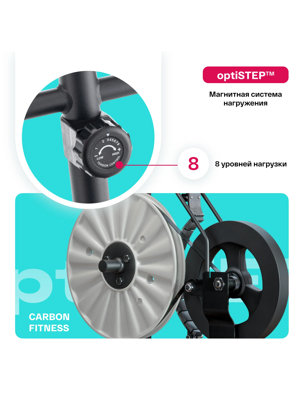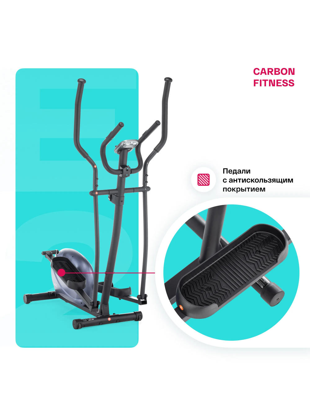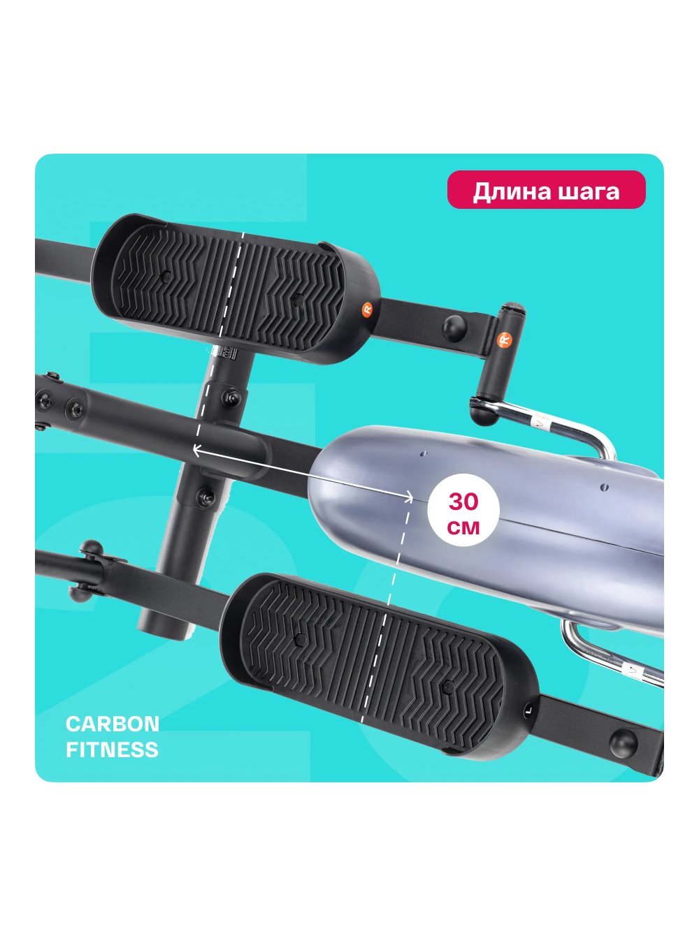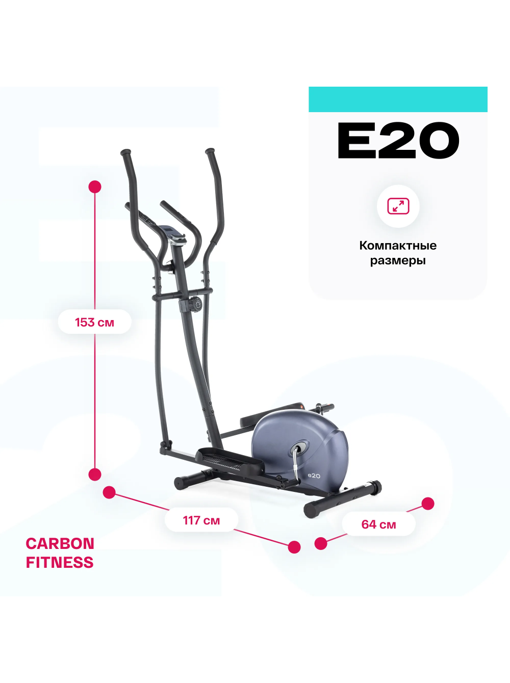 Эллиптический тренажер домашний CARBON FITNESS E20 0 отзывов 13990р.18990р. Вы экономите: 5000р. (-26%) Наличие: Есть в наличии Модель: E20 Документы (инструкции): mpdf.php?url=%2Fcatalog%2Fellipticheskie-trenazhery%2Fellipticheskiy-trenazher-domashniy-carbon-fitness-e20%2F&pdfversion=1&name_file=ellipticheskiy-trenazher-domashniy-carbon-fitness-e20 Одежда Обувь Как выбрать одежду своего размера? Купить Купить в один клик Скидки постоянным клиентам! Гарантия качества всех товаров магазина! Описание Отзывов (0) Документы Особенности:РАССТОЯНИЕ МЕЖДУ ПЕДАЛЯМИ 22 СМБОРТИКИ И АНТИСКОЛЬЗЯЩЕЕ ПОКРЫТИЕ ПЕДАЛЕЙ ОБЕСПЕЧИВАЮТ БЕЗОПАСНОСТЬ МНОГОФУНКЦИОНАЛЬНАЯ КОНСОЛЬ С ПОДСТАВКОЙ ДЛЯ ТЕЛЕФОНАСЕНСОРНЫЕ ДАТЧИКИ ПУЛЬСА 8 УРОВНЕЙ НАГРУЗКИ КОМПЕНСАТОРЫ НЕРОВНОСТЕЙ ПОЛА ТРАНСПОРТИРОВОЧНЫЕ КОЛЕСИКИ БрендCarbon FitnessАртикулE20Назначение домашнееТип тренажера эллиптическийСистема нагружения магнитнаяКоличество уровней нагрузки8Инерционный вес маховика, кг12,6 BioFusion™Тип педального узлаоднокомпонентный литой шатунРасстояние между педалями, мм220Длина шага, мм300Измерение пульсаестьКонсоль LCDТип консоли LCD дисплей с зеленой индикациейПоказания консоливремя, скорость, дистанция, калории, пульс, одометрОбщее количество программручной режимСпецификация программбыстрый старт, ручной режимЯзык интерфейсарусскийПодставка под планшет/смартфонДаТранспортировочные роликиДаКомпенсаторы неровностей полаДаДополнительные функциисенсорные датчики пульса на поручняхДлина в рабочем состоянии, см117Ширина в рабочем состоянии, см64Высота в рабочем состоянии, см153Вес нетто, кг27.5Вес брутто, кг30Максимальный вес пользователя 110Подключение к сетине требует подключенияПроизводительFitathlon Group (подразделение в Германии)Страна изготовленияКНР Эллиптический тренажер CARBON FITNESS E20 сочетает в себе базовые, но весьма функциональные характеристики, обеспечивая комфорт и эффективность тренировок для тех, кто занимается физической активностью на любительском уровне. CARBON FITNESS E20 оснащен магнитной системой нагружения optiSTEP™, которая предлагает 8 уровней нагрузки. Это позволяет легко адаптировать интенсивность тренировки под любые потребности, будь то лёгкие кардиозанятия или более интенсивные тренировки. Маховик BioFusion с инерционным весом 12,6 кг обеспечивает плавное и устойчивое движение во время занятий, качество и комфорт тренировочного процесса. Длина шага составляет 30 см, а расстояние между педалями 22 см (малый Q-Фактор S.Q.F.™), что создает комфортное положение ног и минимизирует нагрузку на суставы. Антискользящие педали гарантируют надёжное сцепление с обувью, а компактные размеры тренажера 117*64*153 позволяют установить его даже в небольших помещениях. Вес оборудования составляет 27,5 кг, оно выдерживает до 110 кг пользовательского веса, что делает его подходящим для большинства спортсменов. Транспортировочные ролики и компенсаторы неровностей пола облегчают перемещение и установку оборудования в нужном месте. Простая в использовании LCD-консоль с базовым набором показателей – время, скорость, дистанция, калории, пульс и одометр – поможет вам следить за прогрессом и добиваться поставленных целей. Тренажер оснащен подставкой для мобильных устройств, что позволяет разнообразить тренировки просматривая любимые сериалы или слушая музыку, делая занятия еще более увлекательными. Carbon Fitness E20 это не просто инструмент для тренировок, а источник мотивации и заботы о ва