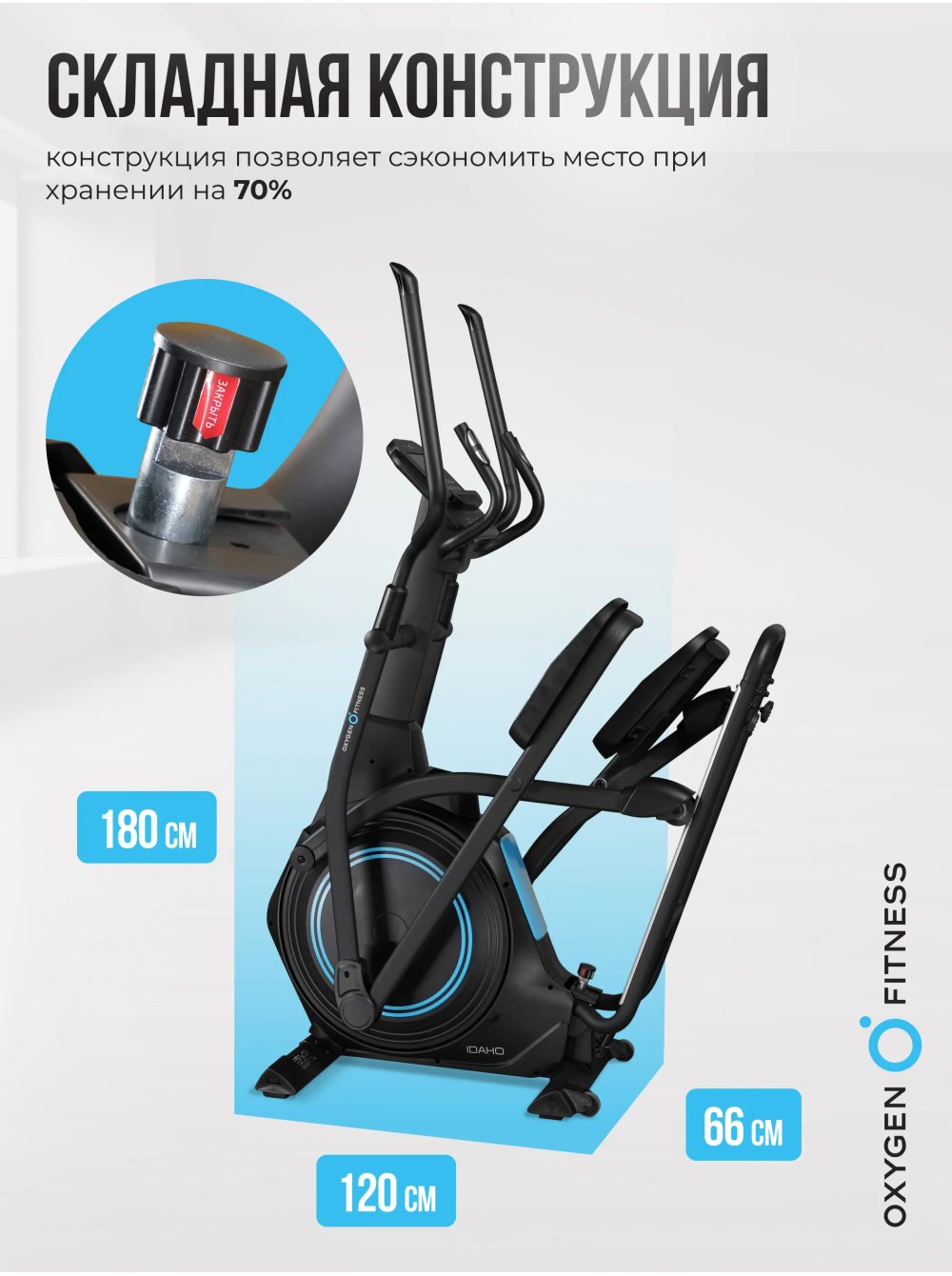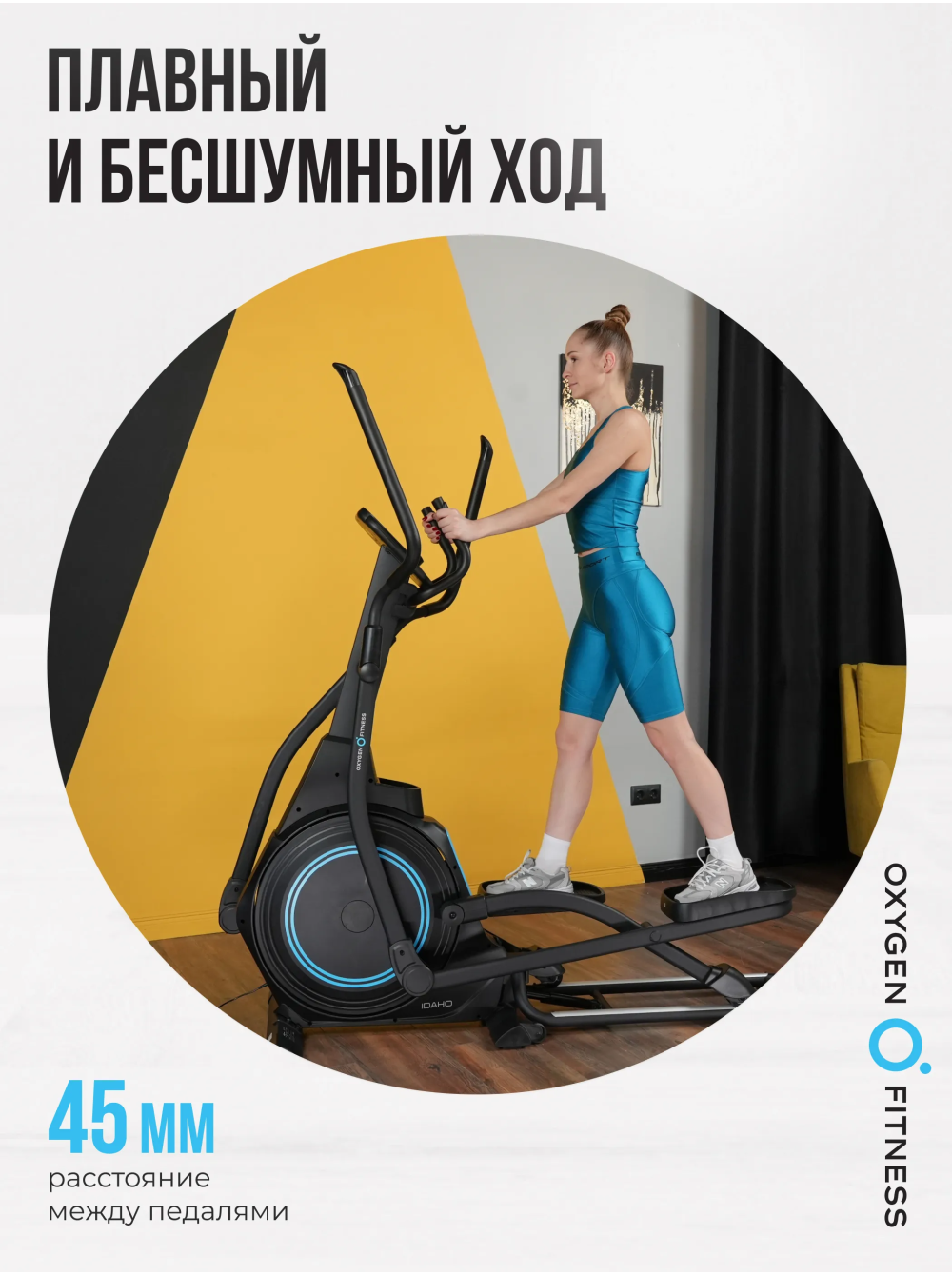 Эллиптический тренажер домашний OXYGEN FITNESS IDAHO 0 отзывов 79990р.84990р. Вы экономите: 5000р. (-6%) Производитель: OXYGEN Наличие: Есть в наличии Модель: IDAHO Одежда Обувь Как выбрать одежду своего размера? Купить Купить в один клик Скидки постоянным клиентам! Гарантия качества всех товаров магазина! Описание Отзывов (0) Особенности:антискользящие педали увеличенного размеранадежная конструкцияудобная система складываниядлина шага 51 смкомпактные размеры БрендOxygen FitnessАртикулIDAHOНазначение домашнееТип тренажера эллиптическийСистема нагружения электромагнитнаяКоличество уровней нагрузки16Инерционный вес маховика, кг24, BioFusion™Тип педального узлатрехкомпонентный шатун увеличенным радиусомРасстояние между педалями, мм45Длина шага, мм510Измерение пульсаестьКонсоль LCDТип консоли LCD дисплей с цветной индикациейПоказания консоливремя, скорость, дистанция, калории, пульс, уровень нагрузки, программа, статус BluetoothОбщее количество программ27Спецификация программручной режим, 12 предустановленных, 4 пульсозависимые, 4 пользовательские, жироанализатор, Ватты, 3 режима обратного отсчета (время, дистанция, калории)Интеграционные технологииBluetooth для работы с тренировочным мобильным приложением (Kinomap™, Spax™, Fitshow™)Язык интерфейсарусский, английскийСкладываниеДаПодставка под планшет/смартфонДаТранспортировочные роликиДаКомпенсаторы неровностей полаДаДополнительные функциисенсорные датчики на поручнях, возможность сопряжения с кардиодатчиком Bluethooth через фитнес-приложенияДополнительные особенности тренажераподставка для бутылки, складная конструкцияДлина в рабочем состоянии, см178Ширина в рабочем состоянии, см66Высота в рабочем состоянии, см180Вес нетто, кг65Вес брутто, кг77Максимальный вес пользователя 150Подключение к сети220 ВПроизводительFitathlon Group (подразделение в Германии)Страна изготовленияКНР Эллиптический тренажер OXYGEN FITNESS IDAHO — это идеальное решение для тех, кто хочет поддерживать физическую форму и улучшать выносливость в комфортной обстановке дома. С максимальным весом пользователя до 150 кг и электромагнитной системой нагружения, этот тренажер обеспечивает плавное и бесшумное движение. Размеры в рабочем состоянии (178 см в длину, 66 см в ширину и 180 см в высоту) и возможность складывания (120 см в длину, 66 см в ширину и 180 см в высоту) делают его удобным для размещения в ограниченных пространствах. Консоль OXYGEN FITNESS IDAHO оснащена LCD дисплеем с подсветкой, который отображает все ключевые параметры тренировки: время, скорость, дистанцию, калории, пульс, уровень нагрузки, выбранную программу и статус Bluetooth. Интерфейс доступен на русском и английском языках, что делает его удобным для пользователей. Тренажер предлагает 27 различных программ, включая ручной режим, 12 предустановленных программ, 4 пульсозависимые и 4 пользовательских, а также 3 режима обратного отсчета. Это позволяет легко адаптировать тренировки под индивидуальные цели и уровень подготовки. Эллиптический тренажер OXYGEN FITNESS IDAHO оборудован удобными изогнутыми подвижными поручнями с мягкой оплеткой и неподвижными поручнями с датчиками пульса, что обеспечивает надежный контроль за состоянием во время тренировки. Подставка под планшет или смартфон позволяет совмещать занятия с просмотром видео или прослушиванием музыки. Дополнительные функции включают возможность подключения через 
