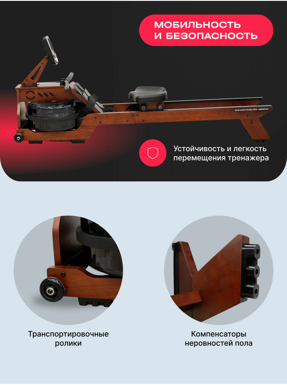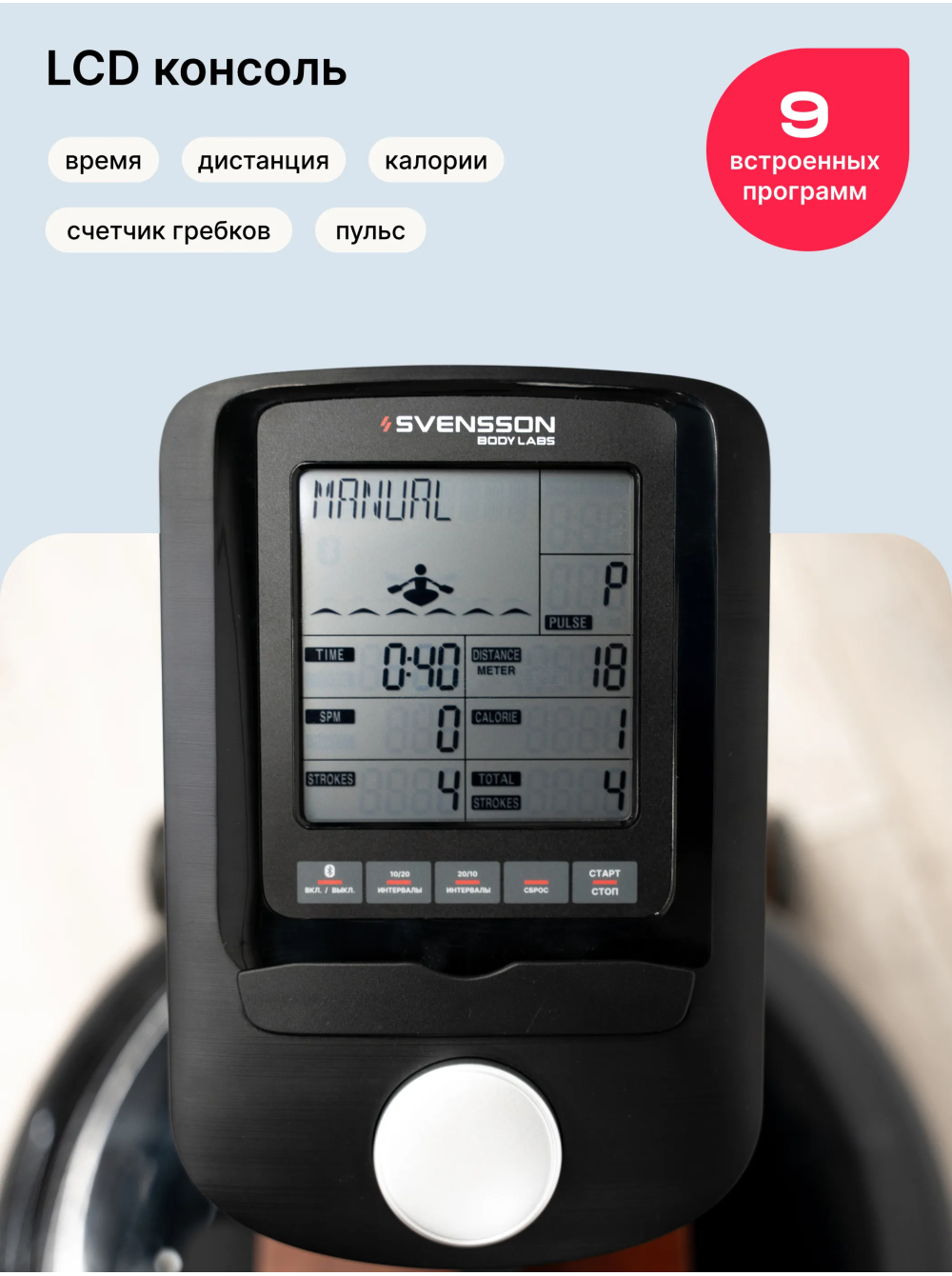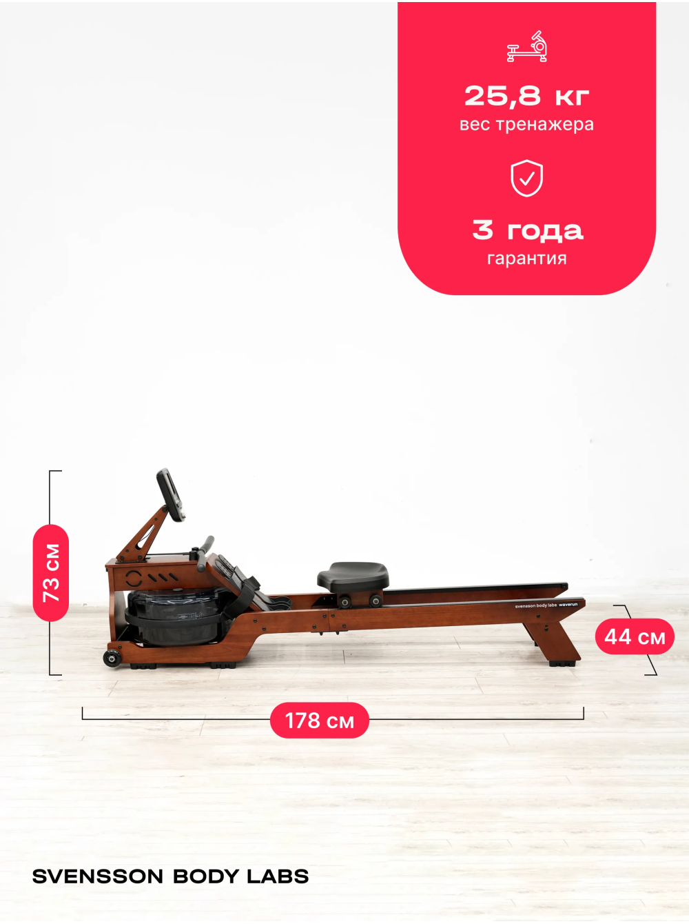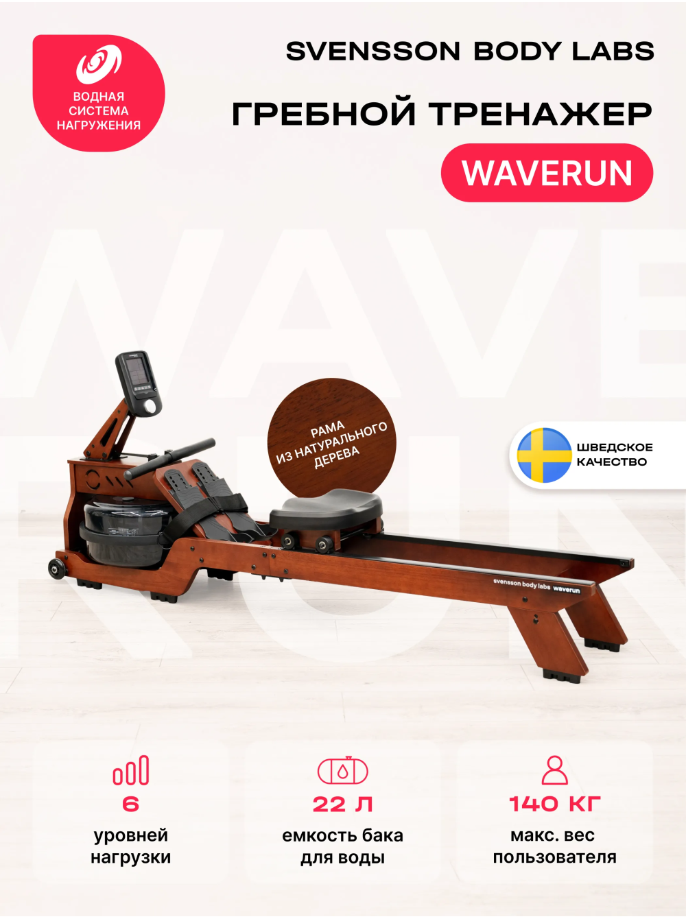 Гребной тренажер домашний SVENSSON BODY LABS WAVERUN 0 отзывов 54990р. Производитель: SVENSSON INDUSTRIAL Наличие: Есть в наличии Модель: WAVERUN Одежда Обувь Как выбрать одежду своего размера? Купить Купить в один клик Скидки постоянным клиентам! Гарантия качества всех товаров магазина! Описание Отзывов (0) Гребной тренажер SVENSSON BODY LABS WAVERUN — это отличный выбор для тех, кто стремится поддерживать свою физическую форму, не покидая уюта своего дома. С его стильным и современным дизайном, этот тренажер гармонично впишется в любой интерьер, а продуманные функции обеспечат комфорт и эффективность ваших тренировок. Тренажер оснащен LCD-консолью, которая отображает ключевые показатели: время, дистанцию, калории, счетчик гребков и пульс. Поддержка русского и английского языков делает управление простым и интуитивно понятным. SVENSSON BODY LABS WAVERUN предлагает 9 программ тренировок, включая ручной режим, пульсозависимую программу и целевые режимы, что позволяет адаптировать тренировки под ваши индивидуальные цели и уровень подготовки. Гребной тренажер использует водное сопротивление, что придает вашим тренировкам естественность и плавность. Система нагружения включает 6 уровней, что позволяет легко регулировать интенсивность занятий. Удобное анатомическое сиденье и рукоятки с оплеткой из пенорезины обеспечивают отличную поддержку и комфорт во время тренировки. Максимальный вес пользователя составляет 140 кг, что делает тренажер универсальным для большинства пользователей. Гребной тренажер SVENSSON BODY LABS WAVERUN — это ваш надежный партнер в мире фитнеса, который поможет вам достичь ваших целей и наслаждаться тренировками каждый день! Начните свой путь к здоровью и отличной физической форме уже сегодня! Ключевые преимущества SVENSSON BODY LABS WAVERUN: • водное сопротивление с возможностью регулировки нагрузки (6 уровней); • LCD-дисплей с полным набором показателей тренировки; • возможность подключения к мобильным приложениям Spax™ и Kinomap™ через Bluetooth; • компактные размеры и возможность вертикального хранения; • 36-месячная гарантия на надежность и качество. Бренд Svensson Body Labs Артикул WAVERUN Назначение домашнее Тип тренажера гребной, Система нагружения водная Количество уровней нагрузки 6 Регулировка нагрузки механическая Инерционный вес маховика, кг бак 22 литра Сиденье комфортное, анатомической формы Рукоятки прямая с оплеткой из пенорезины Измерение пульса есть Консоль LCD Тип консоли LCD дисплей монохромный Показания консоли время, дистанция, калории, счетчик гребков, пульс Общее количество программ 9 Спецификация программ ручной режим, 3 интервальных режима, 5 целевыx (время, дистанция, калории, гребки, пульс) Язык интерфейса русский, английский Интеграционные технологии Bluetooth для работы с тренировочным мобильным приложением (Spax™, Kinomap™) Сопряжение с кардиодатчиками bluetooth датчик (приобретается отдельно) Тип рамы натуральное дерево Подставка под планшет/смартфон Да Транспортировочные ролики Да Дополнительные функции возможность подключения кардиодатчика Bluetooth через фитнес-приложения Дополнительные особенности тренажера алюминиевые направляющие, вертикальное хранение Вес нетто, кг 25.8 Вес брутто, кг 30 Максимальный вес пользователя 140 Подключение к сети не требует подключения, Производитель Fitathlon Group (подразделение в Швеции) Страна изготовления КНР Гарантийный срок мес. ? 36 мес