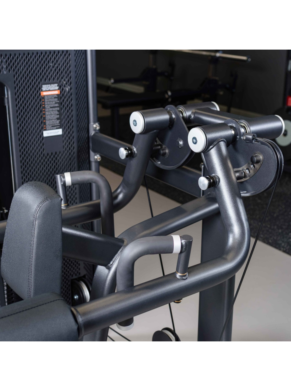 E7005 Дельт-машина. Стек 110 кг 0 отзывов 253710р. Оптовая цена: 202968р. для покупки по оптовой цене свяжитесь с нами по телефону Производитель: DHZ Наличие: Предзаказ Модель: E-7005 Одежда Обувь Как выбрать одежду своего размера? Купить Купить в один клик Скидки постоянным клиентам! Гарантия качества всех товаров магазина! Описание Отзывов (0) Профессиональный тренажер для коммерческого использования E7005 Дельт-машина предназначен для изолирующих упражнений на средние пучки дельтовидных мышц. Принцип работы заключается в разведении рук в стороны. Основа выполнена из сверхпрочного металлического овального профиля с широким радиусом угла 140?40 мм толщиной 3 мм. Конструкция несущей рамы изготовлена на высокоточном лазерном оборудовании с ЧПУ. Цвет рамы: графит (другие цвета опционально). Металлическая перфорированная защита весового стека с лицевой стороны и сплошная защита с внешней стороны выполнена из листового металла толщиной 2 мм. Для повышения эксплуатационных параметров тренажера в восьми точках у основания установлены ребра жесткости, примыкающие к несущей раме через скрытое болтовое соединение сечением 6 мм. Прорезь в защитном кожухе грузоблока для доступа к регулировке нагрузки шлифованная с завальцованными внутрь гранями по всему периметру для безопасного доступа к весовому стеку и обеспечения дополнительной жёсткости рамы грузоблока. Регулировочный отсекатель для изменения нагрузки выполнен из металла с магнитным фиксатором, закреплен на гибком эластичном шнуре. Торцы профиля закрыты пластиковыми заглушками с фиксаторами. Направляющие для грузоблока выполнены из нержавеющей трубы диаметром 20 мм. Для приведения в движение грузов используется комбинированная система нагрузки: высокопрочный армированный 8-ю кевларовыми нитями ремень сечением 25?3 мм / стальной трос 5,8 мм в PVC оплетке. Плиты грузоблока выполнены из стали марки Q235 с нанесением порошкового окрашивания. В плитах установлены капролоновые вставки для плавного скольжения по направляющим. При изготовлении тренажера применяется автоматизированная серийная сварка узлов для исключения человеческого фактора и повышения эксплуатационных характеристик оборудования. На металлические элементы после антикоррозийной обработки нанесено двухслойное порошковое напыление при высоких температурах для обеспечения стойкости при механических воздействиях. Во всех узлах вращения и качения применяются дюралюминиевые корпусные подшипниковые узлы. На раме тренажера закреплён пластиковый держатель для личных вещей. Подушка для торса и регулируемое при помощи сдвоенной системы газовых упоров в восьми положениях анатомическое сиденье велосипедного типа выполнены из вспененного полиуретана с обивкой из премиальной искусственной кожи. Подушки для локтей выполнены из вспененного полиуретана с обивкой из премиальной искусственной кожи. Цвет обивки: черный (другие цвета опционально). Нескользящие прочные рукоятки выполнены из металлической трубы с резиновым неабсорбирующим влагу покрытием и декоративными заглушками-наконечниками, зафиксированными болтом. Резиново-пластиковые подпятники обеспечивают устойчивость тренажера и предохраняют напольное покрытие от повреждений. На раму тренажера нанесена инструкция для соблюдения техники выполнения упражнения и 