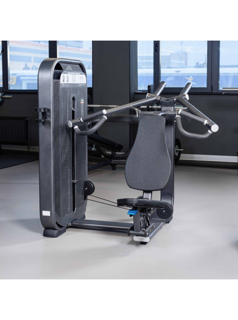 E7006 Жим от плеч. Стек 110 кг 0 отзывов 253710р. Оптовая цена: 202968р. для покупки по оптовой цене свяжитесь с нами по телефону Производитель: ZSO Наличие: Есть в наличии Модель: Е7006 Одежда Обувь Как выбрать одежду своего размера? Купить Купить в один клик Скидки постоянным клиентам! Гарантия качества всех товаров магазина! Описание Отзывов (0) Профессиональный тренажер для коммерческого использования E7006 Жим от плеч предназначен для изолирующих упражнений на дельтовидные мышцы. Основа выполнена из сверхпрочного металлического овального профиля с широким радиусом угла 140?40 мм толщиной 3 мм. Конструкция несущей рамы изготовлена на высокоточном лазерном оборудовании с ЧПУ. Цвет рамы: графит (другие цвета опционально). Металлическая перфорированная защита весового стека с лицевой стороны и сплошная защита с внешней стороны выполнена из листового металла толщиной 2 мм. Для повышения эксплуатационных параметров тренажера в восьми точках у основания установлены ребра жесткости, примыкающие к несущей раме через скрытое болтовое соединение сечением 6 мм. Прорезь в защитном кожухе грузоблока для доступа к регулировке нагрузки шлифованная с завальцованными внутрь гранями по всему периметру для безопасного доступа к весовому стеку и обеспечения дополнительной жёсткости рамы грузоблока. Регулировочный отсекатель для изменения нагрузки выполнен из металла с магнитным фиксатором, закреплен на гибком эластичном шнуре. Торцы профиля закрыты пластиковыми заглушками с фиксаторами. Направляющие для грузоблока выполнены из нержавеющей трубы диаметром 20 мм. Для приведения в движение грузов используется комбинированная система нагрузки: высокопрочный армированный 8-ю кевларовыми нитями ремень сечением 25?3 мм / стальной трос 5,8 мм в PVC оплетке. Плиты грузоблока выполнены из стали марки Q235 с нанесением порошкового окрашивания. В плитах установлены капролоновые вставки для плавного скольжения по направляющим. При изготовлении тренажера применяется автоматизированная серийная сварка узлов для исключения человеческого фактора и повышения эксплуатационных характеристик оборудования. На металлические элементы после антикоррозийной обработки нанесено двухслойное порошковое напыление при высоких температурах для обеспечения стойкости при механических воздействиях. Во всех узлах вращения и качения применяются дюралюминиевые корпусные подшипниковые узлы. На раме тренажера закреплён пластиковый держатель для личных вещей. Спинка и регулируемое при помощи сдвоенной системы газовых упоров в восьми положениях анатомическое сиденье велосипедного типа выполнены из вспененного полиуретана с обивкой из премиальной искусственной кожи. Цвет обивки: черный (другие цвета опционально). Две пары многопозиционных нескользящих рукояток выполнены из металлической трубы с резиновым неабсорбирующим влагу покрытием и декоративными заглушками-наконечниками, зафиксированными болтом. Резиново-пластиковые подпятники обеспечивают устойчивость тренажера и предохраняют напольное покрытие от повреждений. На раму тренажера нанесена инструкция для соблюдения техники выполнения упражнения и предотвращения травмирования. Габариты: 1550?1550?1530 мм. Профиль: 140?40?3 мм. Вес стека: 110 кг. Вес: 260 кг. Габариты тренажера в упаковке: 1720?1100?620 мм. Объем: 1,2 м?. Гарантия: 1 го