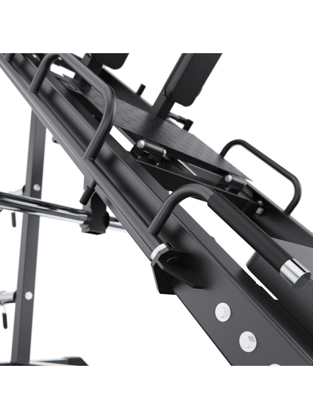 Жим ногами / Гакк-машина STEELVER SV9205 0 отзывов 215589р. Оптовая цена: 195990р. для покупки по оптовой цене свяжитесь с нами по телефону Производитель: КИТАЙ Наличие: Есть в наличии Модель: SV9205 Документы (инструкции): Jim-nogami-Gakk-mashina-STEELVER-SV9205.pdf Одежда Обувь Как выбрать одежду своего размера? Купить Купить в один клик Скидки постоянным клиентам! Гарантия качества всех товаров магазина! Описание Отзывов (0) Документы Размер упаковки195 х 125 х 40 смВес упаковки235 кгВес175 кгГарантия12 месяцевСтрана производстваКитайКоличество посадочных мест4Общая нагрузка250 кгПосадочный диаметр50 ммПрофиль рамы75 х 75 х 3 мм Жим ногами / Гакк-машина STEELVER SV9205 предназначена для домашнего использования и обеспечивает комфортную и эффективную тренировку нижней части тела. Конструкция тренажера рассчитана на максимальную нагрузку до 250 кг, что позволяет использовать его как новичкам, так и опытным спортсменам. Тренажер оснащён 4 посадочными местами с диаметром посадочного отверстия 50 мм, что совместимо с большинством стандартных весовых дисков. Максимальная нагрузка на узел подвешивания весовых дисков составляет 150 кг, а для хранения дисков — 75 кг. Для удобства и безопасности во время занятий установлен пружинный зажим, который надежно фиксирует диски на грифе, предотвращая их смещение. Такая конструкция обеспечивает стабильность и безопасность при тренировках с большими весами. Для комфортных и безопасных тренировок тренажёр оснащён удобной спинкой, которая надёжно поддерживает спину и помогает сохранять правильное положение тела во время выполнения упражнений. Рифлёная платформа для ног обеспечивает устойчивый упор и предотвращает соскальзывание стоп при жиме. Конструкция позволяет регулировать положение под рост пользователя, а также переставлять спинку, что даёт возможность выполнять различные упражнения в режимах жима ногами и гакк-приседаний. Тренажер имеет прочную раму с профилем 75 х 75 х 3 мм, что гарантирует надежность и долговечность конструкции. Гарантия на детали подверженные естественному износу в процессе эксплуатации — до 6 месяцев с момента установки тренажера при условии регулярного планового ТО. Важно: гарантия не распространяется на преждевременный износ из-за чрезмерной эксплуатации тренажера. Написать отзыв Ваше имя: Ваш отзыв: Примечание: HTML разметка не поддерживается! Используйте обычный текст. Оценка: Плохо Хорошо Отправить отзыв Jim-nogami-Gakk-mashina-STEELVER-SV9205.pdf