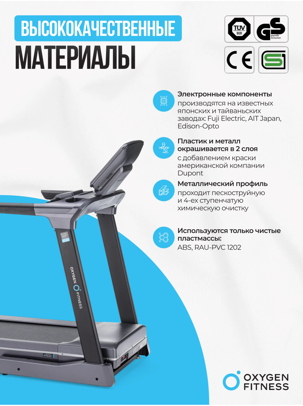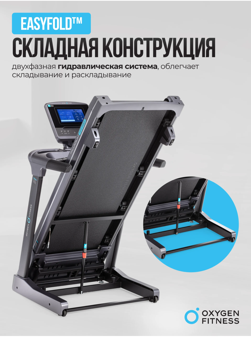 Позвольте представить вам беговую дорожку, которая не просто отвечает вашим ожиданиям, а полностью их превосходит. OXYGEN FITNESS PALLADIUM TFT PRO — это выбор тех, кто стремится к совершенству в каждой тренировке. С невероятно мощным двигателем Fuji Electric AC на 4,0 л.с. и пиковой мощностью 6,5 л.с., эта дорожка превращает каждую тренировку в увлекательное и эффективное занятие. Вам больше не нужно ограничивать себя: диапазон скоростей от 0,8 до 18 км/ч дает возможность как новичкам, так и профессиональным спортсменам достигать новых высот. Прочность и долговечность – это еще одна важная особенность этой дорожки. С антикоррозийной обработкой и однослойной покраской, она будет служить вам годами, сохраняя свой внешний вид и функциональные характеристики. Впечатляющее беговое полотно, длиной 150 см и шириной 51 см, изготовленное из многослойного полимерного материала Habasit NVT-218 толщиной 1,8 мм, гарантирует максимальный комфорт и безопасность. Но это еще не все! Электрическая регулировка угла наклона и система амортизации с 8 прорезиненными эластомерами с пружинами SPRING-TRACK™ обеспечивают оптимальные условия для тренировок, вне зависимости от уровня вашей подготовки. Ваши суставы будут защищены, а нагрузка распределена равномерно, что делает каждую пробежку приятной и полезной. А теперь представьте себе тренировку с 10-дюймовым TFT дисплеем, который выводит всю необходимую информацию: от времени и скорости до калорий и пульса. Но самое главное — это интеграция с мобильными приложениями Fitshow™ и Kinomap™ через Bluetooth. Подключайтесь и наслаждайтесь уникальными функциями, отслеживая каждый шаг к своей цели. Для тех, кто ценит разнообразие и индивидуальный подход, OXYGEN FITNESS PALLADIUM TFT PRO предлагает 48 программ тренировок, включая виртуальные ландшафты, целевые и пульсозависимые программы. Не забудем и о встроенном жироанализаторе, который помогает точно измерить прогресс и скорректировать план занятий. Вы также оцените удобство складывания дорожки благодаря гидравлической системе easyFOLD™. Сложите ее всего за пару секунд, и дорожка легко уместится даже в ограниченном пространстве. А встроенные компенсаторы неровностей пола и транспортировочные ролики обеспечат легкость и комфорт в использовании. Этот тренажер создан для того, чтобы впечатлять не только своим функционалом, но и дизайном. OXYGEN FITNESS PALLADIUM TFT PRO выдерживает вес до 160 кг, что делает его идеальным выбором для пользователей любой комплекции. Качество подтверждается гарантией на 24 месяца, что свидетельствует о надежности и долговечности продукта. Не упустите возможность инвестировать в свое здоровье и комфорт. OXYGEN FITNESS PALLADIUM TFT PRO — ваш лучший выбор для дома и фитнес-зала, созданный для тех, кто стремится к максимальному результату! Ключевые преимущества OXYGEN FITNESS PALLADIUM TFT PRO: • диапазон скоростей от 0,8 до 18 км/ч; • большое беговое полотно Habasit NVT-218 толщиной 1,8 мм, длиной 150 см и шириной 51 см; • интеграция с мобильными приложениями Fitshow™ и Kinomap™ через Bluetooth; • 10-дюймовый TFT дисплей; • 48 встроенных программ тренировок; • гидравлическая система складывания easyFOLD™.