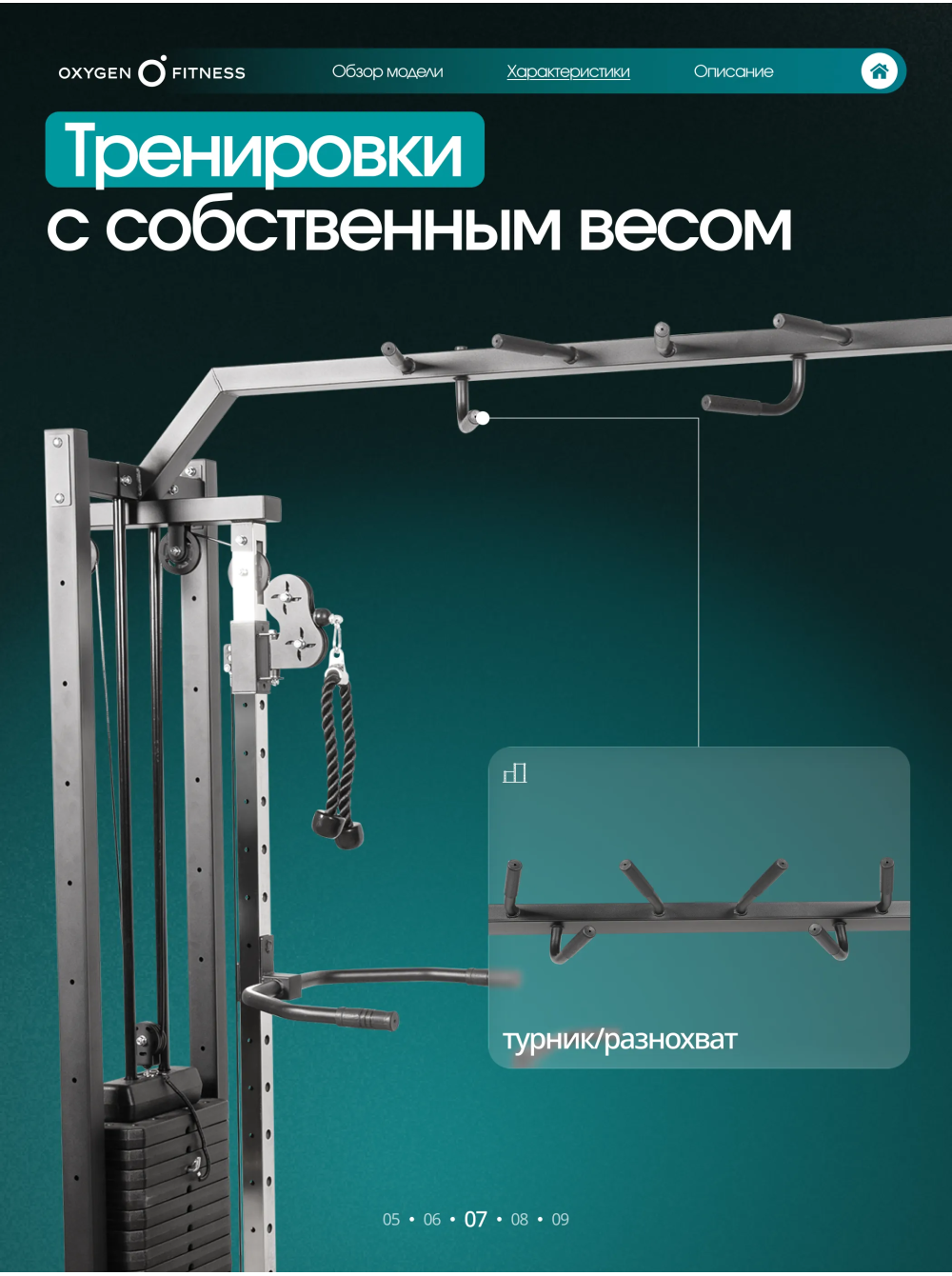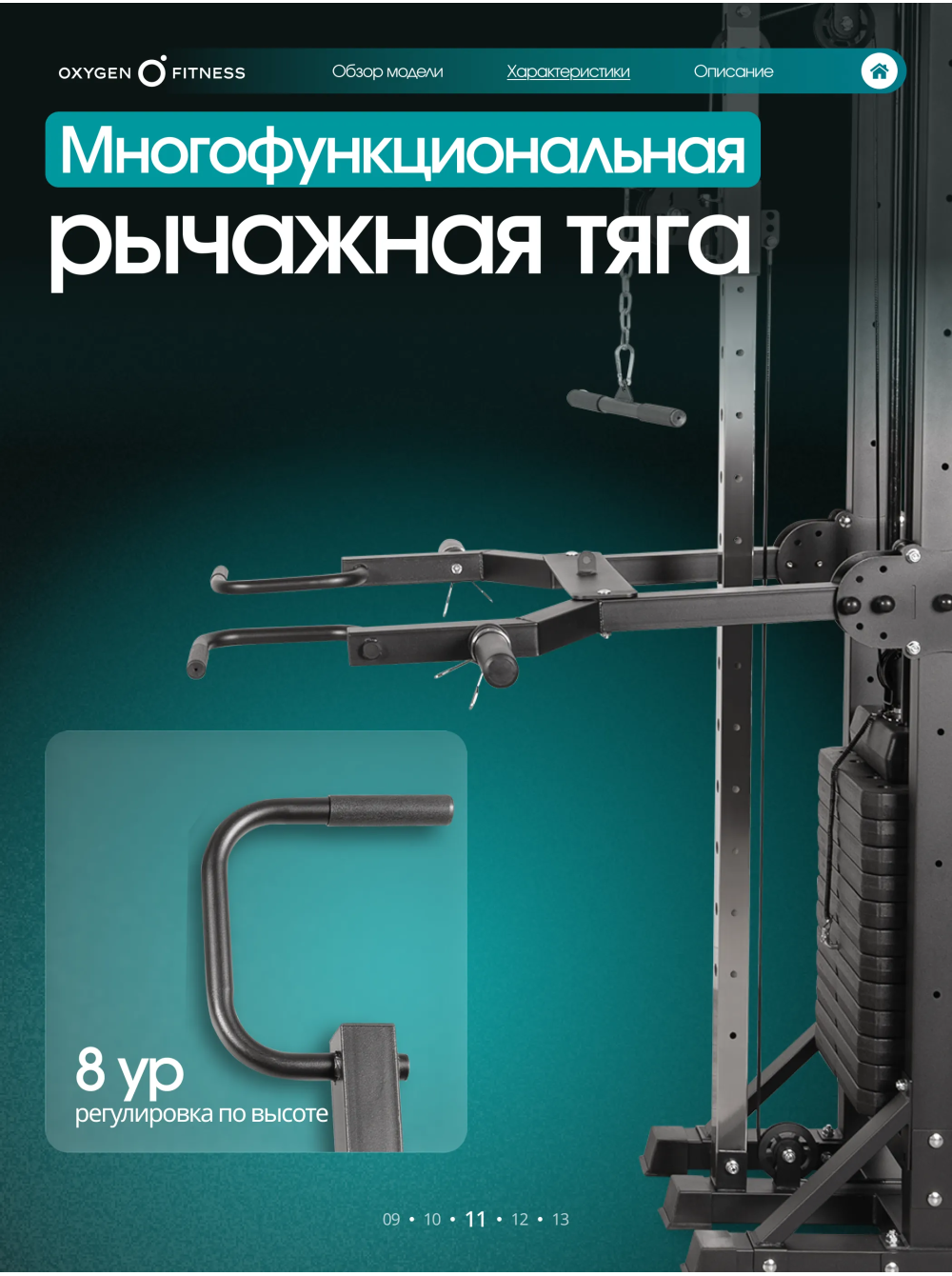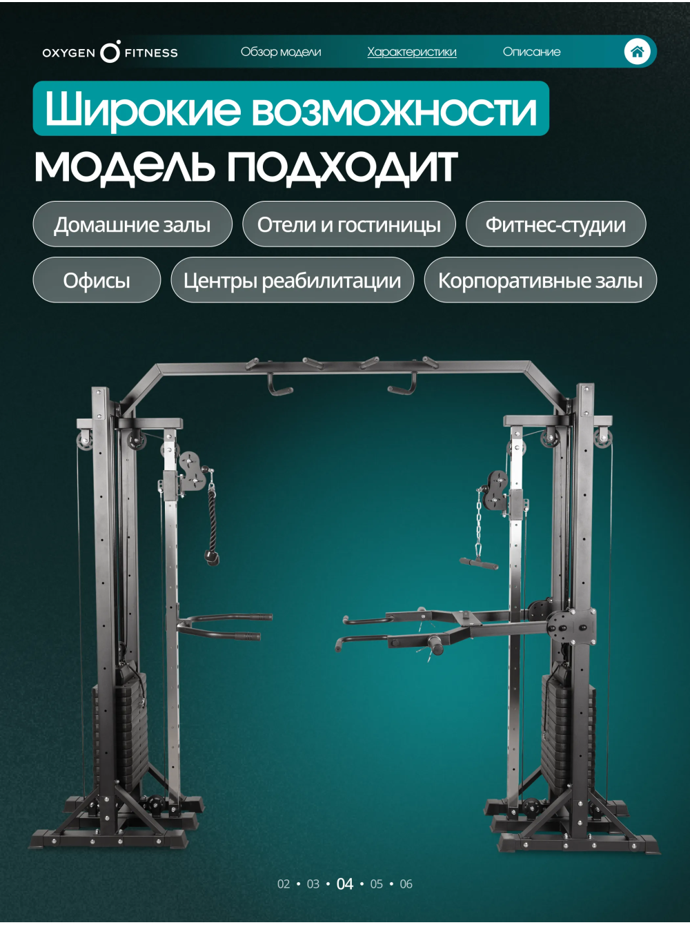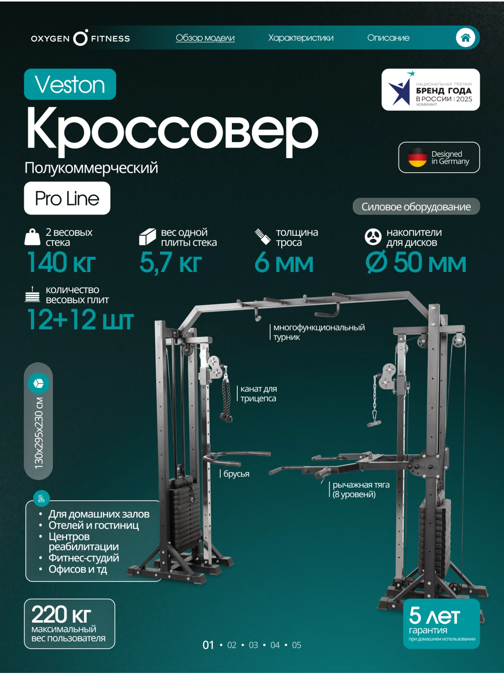 Кроссовер OXYGEN FITNESS VESTON 0 отзывов 72990р.79990р. Вы экономите: 7000р. (-9%) Производитель: OXYGEN Наличие: Есть в наличии Модель: VESTON Одежда Обувь Как выбрать одежду своего размера? Купить Купить в один клик Скидки постоянным клиентам! Гарантия качества всех товаров магазина! Описание Отзывов (0) Особенности: БрендOxygen FitnessАртикулVESTONНазначение полукоммерческоеТип тренажера кроссоверУпражнениявсе группы мышцВес стека, кг146Количество плит стека12+12Вес одной плиты стека, кг5.7Тип передачи нагрузкитросДиаметр троса, мм6Материал тросастальПрофиль сечения рамыпрямоугольникШирина профиля рамы, мм70Высота профиля рамы, мм50Максимальная нагрузка, кг140Дополнительноканат для трицепса, многофункциональный турник, многофункциональная рычажная тяга (регулировка по высоте - 8 ур.), брусья (регулировка по высоте - 15 ур, пружинные замки для дисков - 2 шт, накопители для дисков ф50 мм.Вес нетто, кг244Вес брутто, кг279Максимальный вес пользователя, кг220ПроизводительFitathlon Group (подразделение в Германии)Страна изготовленияКНРДлина в рабочем состоянии, см295Ширина в рабочем состоянии, см130Высота в рабочем состоянии, см230 OXYGEN FITNESS VESTON - это мощный полукоммерческий кроссовер с полным функционалом для развития мышц верхней части тела, корпуса и рук. Тренажёр оснащён двумя независимыми грузоблоками и множеством дополнительных станций, что делает его универсальным решением для небольших залов, студий, фитнес-клубов и продвинутых домашних тренировочных зон. Конструкция рассчитана на интенсивное использование и высокие нагрузки: максимальный вес пользователя - 220 кг, максимальная нагрузка - 140 кг. Основа тренажёра — жёсткая рама прямоугольного профиля 70×50 мм с толщиной стенки 1,5 мм, обеспечивающая идеальную устойчивость и долговечность. В комплексе используются два грузоблока по 70 кг каждый (12+12 плит), выполненные из прочной композитной плиты. Вес одной плиты — 5,7 кг. Передача нагрузки осуществляется через стальные тросы диаметром 6 мм — надёжные, износостойкие и рассчитанные на долгий срок службы. Габариты в рабочем положении: • 295 × 130 × 230 см. Вес нетто — 244 кг. VESTON предлагает широкий диапазон тренировок за счёт продуманной конструкции и прикладных аксессуаров: • Кроссовер с регулируемыми рычагами (8 уровней по высоте) — упражнения на грудные, плечи, спину, руки и корпус. • Многофункциональный турник — подтягивания разными хватами, тренировка спины и мышц кора. • Брусья с регулировкой по высоте (15 уровней) — проработка трицепса, грудных и стабилизаторов. • Многофункциональная рычажная тяга — вариативная работа на широчайшие и мышцы спины. • Канат для трицепса — точечная изоляция рук. Дополнительно предусмотрены: • 2 пружинных замка, • накопители под диски Ø50 мм для удобной организации пространства. Написать отзыв Ваше имя: Ваш отзыв: Примечание: HTML разметка не поддерживается! Используйте обычный текст. Оценка: Плохо Хорошо Отправить отзыв