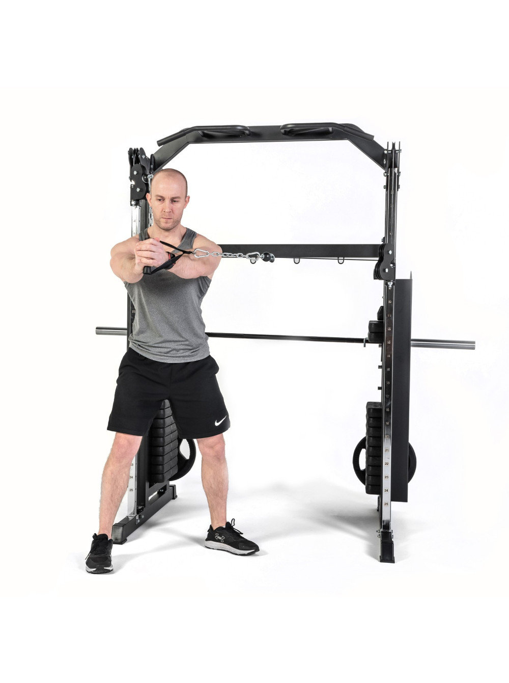 Кроссовер, силовая рама DFC PowerGym D700/2 0 отзывов 120989р. Оптовая цена: 109990р. для покупки по оптовой цене свяжитесь с нами по телефону Производитель: DFC Наличие: Есть в наличии Модель: D700/2 Документы (инструкции): Krossover-silovaya-rama-DFC-PowerGym-D7002.pdf Krossover-silovaya-rama-DFC-PowerGym-D7002.pdf Одежда Обувь Как выбрать одежду своего размера? Купить Купить в один клик Скидки постоянным клиентам! Гарантия качества всех товаров магазина! Описание Отзывов (0) Документы Размер стола138 х 149 х 210 смРазмер упаковки189 х 37 х 81 смВес упаковки300 кгВес236 кгГарантия12 месяцевСтрана производстваКитайОбщая нагрузка200 кгСерияPOWERGYMПрофиль рамы50 х 75 х 1,5 ммНагрузка турник200 кгКоличество блоков2 х 11Вес одного блока11 кгВес стека2 х 81,5 кг Силовой тренажер (кроссовер) со встроенными весами. Позволяет отлично прорабатывать мышцы верхней части тела благодаря множеству упражнений. Каждый блок с роликами регулируется по высоте тренажера. В комплект входит турник для подтягиваний, который позволяет выполнять упражнения широким хватом. Кроссовер изготовлен из высококачественного стального профиля размером 50 х 50 и 50 х 75 мм. Толщина 1,5 мм. Диаметр тросов 4 мм. В качестве нагрузки используются 2 встроенных стека общим весом 163 кг: по 81,5 кг каждый. Большой выбор различных грифов и ручек для занятий на тренажере. Написать отзыв Ваше имя: Ваш отзыв: Примечание: HTML разметка не поддерживается! Используйте обычный текст. Оценка: Плохо Хорошо Отправить отзыв Krossover-silovaya-rama-DFC-PowerGym-D7002.pdf Krossover-silovaya-rama-DFC-PowerGym-D7002.pdf