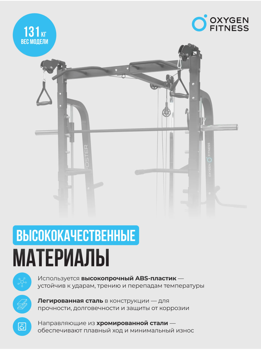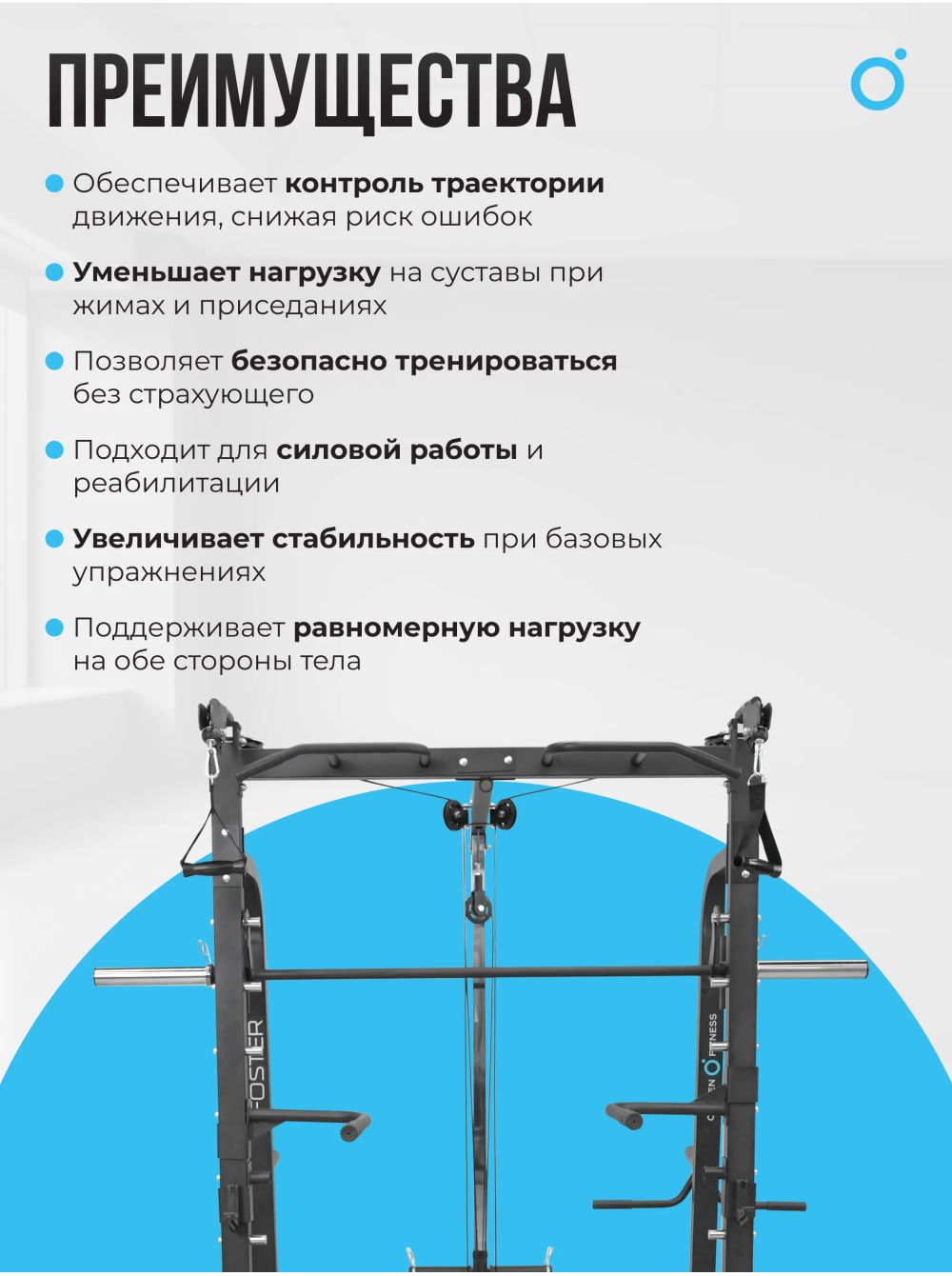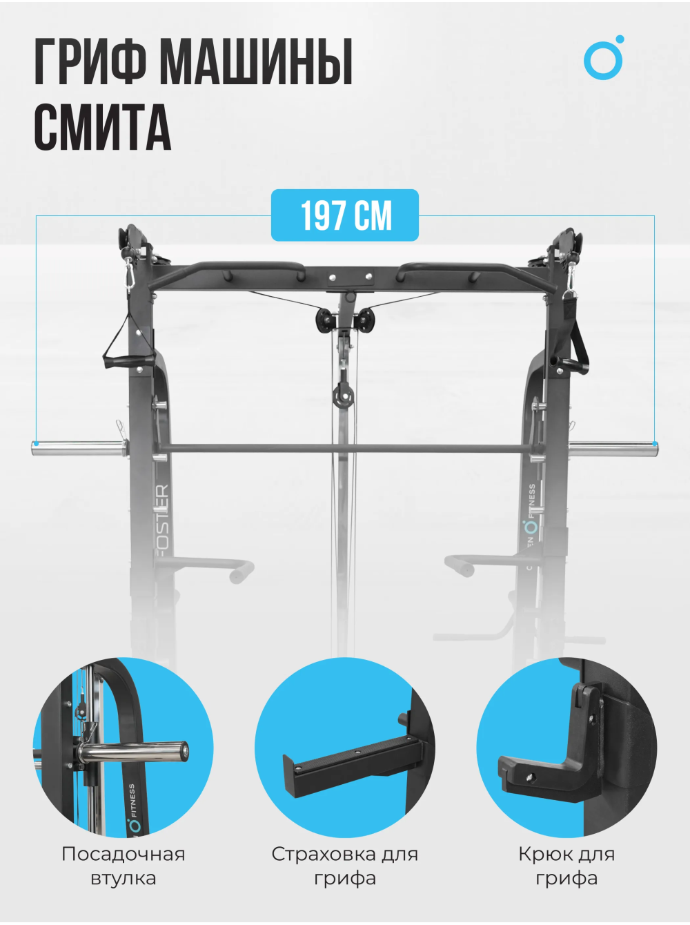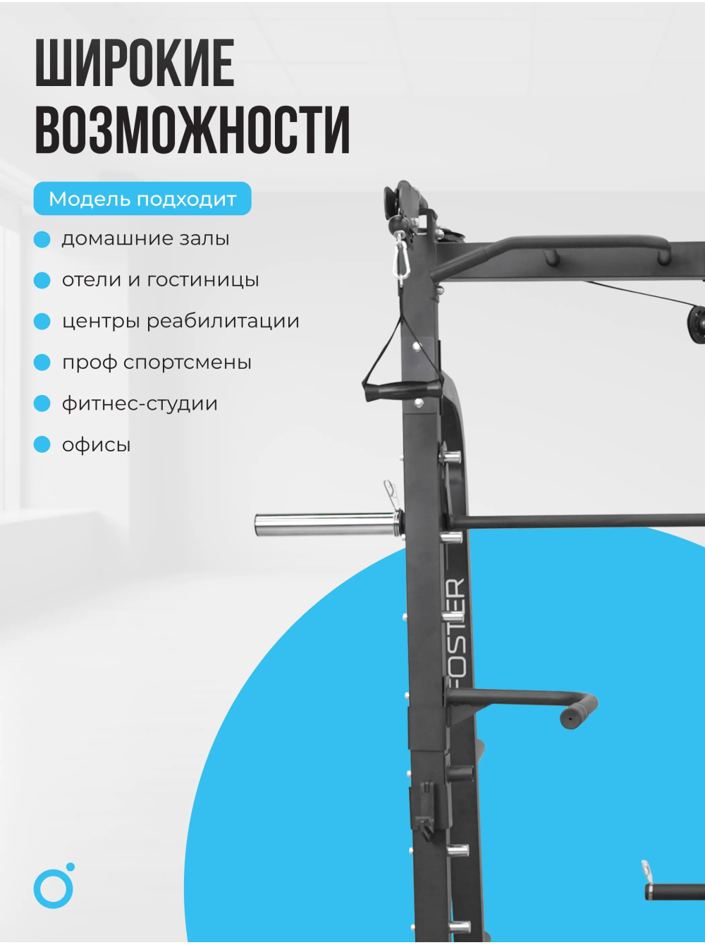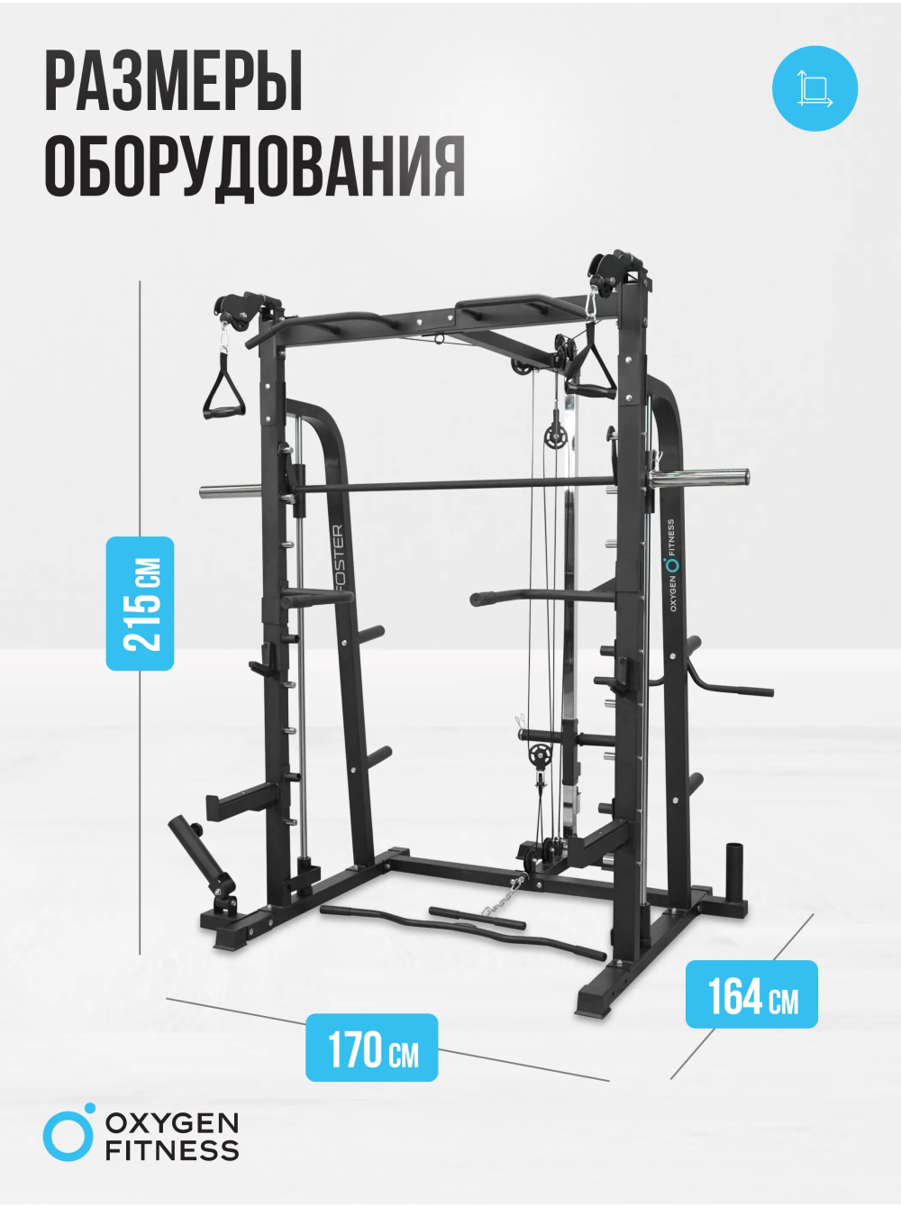 Машина Смита OXYGEN FITNESS FOSTER 0 отзывов 79990р. Производитель: OXYGEN Наличие: Есть в наличии Модель: FOSTER Одежда Обувь Как выбрать одежду своего размера? Купить Купить в один клик Скидки постоянным клиентам! Гарантия качества всех товаров магазина! Описание Отзывов (0) Особенности: БрендOxygen FitnessАртикулFOSTERНазначение полукоммерческоеТип тренажера машина смитаУпражнениявсе группы мышцДополнительноГриф - 197 см, ф50, 14 кг, 9 уровней регулировки по высоте, стакан для хранения грифа, 4 пружинных замка для грифа. Силовая рама. Машина Смита. Многопозиционный турник. Многопозиционные брусья. Двойная тяга. Гребная тяга. Шарнирный крепеж грифа.Вес нетто, кг128Вес брутто, кг131ПроизводительFitathlon Group (подразделение в Германии)Страна изготовленияКНРДлина в рабочем состоянии, см164Ширина в рабочем состоянии, см170Высота в рабочем состоянии, см215 Машина Смита OXYGEN FITNESS FOSTER — это идеальное решение для тех, кто ищет качественное полукоммерческое силовое оборудование на свободных весах. Созданная с учетом современных требований фитнес-индустрии, этот тренажер позволяет эффективно тренировать различные группы мышц, обеспечивая надежность и безопасность во время занятий. С весом нетто 128 кг, машина обладает прочной конструкцией, которая гарантирует стабильность во время выполнения упражнений. Гриф, длиной 197 см с диаметром 50 мм, обеспечивает удобство и комфорт при тренировках. Устройство оснащено 9 уровнями регулировки, что позволяет легко адаптировать его под индивидуальные потребности пользователя. Машина Смита OXYGEN FITNESS FOSTER позволяет выполнять широкий спектр упражнений, нацеленных на развитие различных групп мышц. Благодаря наличию 2 стаканов для грифа и 4 пружинных замков, вы сможете быстро и безопасно менять веса, что делает тренировки еще более эффективными. С помощью стального троса диаметром 5 мм, вы получите надежную и долговечную систему нагрузки. Машина Смита OXYGEN FITNESS FOSTER — это ваш надежный партнер на пути к достижению поставленных фитнес-целей! Ключевые преимущества OXYGEN FITNESS FOSTER: • полукоммерческое назначение, подходит как для домашних тренировок, так и для небольших фитнес-залов; • надежность и качество: прочные стальные тросы и высококачественные материалы; • широкие возможности для тренировки разных групп мышц с использованием свободных весов; Написать отзыв Ваше имя: Ваш отзыв: Примечание: HTML разметка не поддерживается! Используйте обычный текст. Оценка: Плохо Хорошо Отправить отзыв