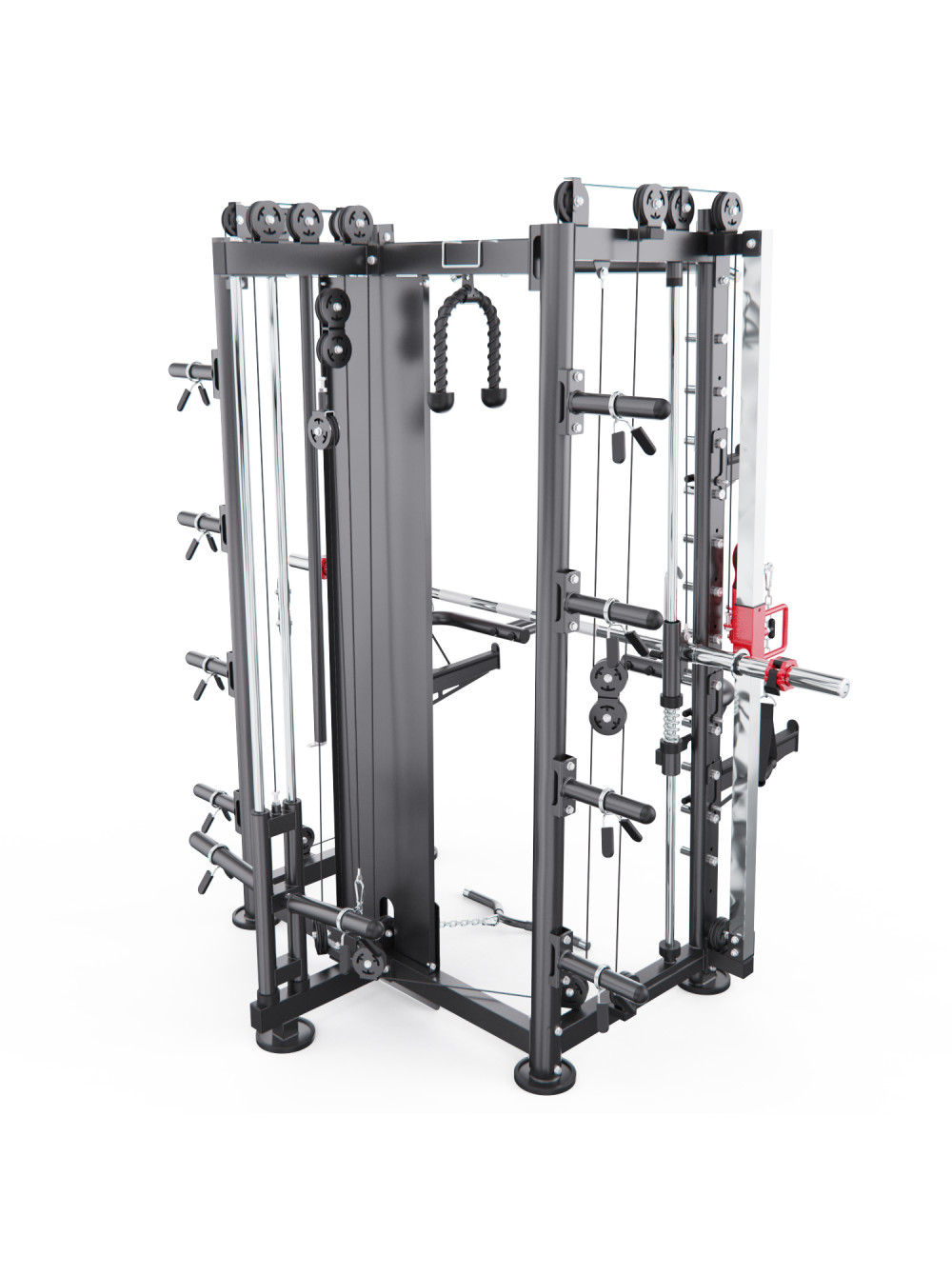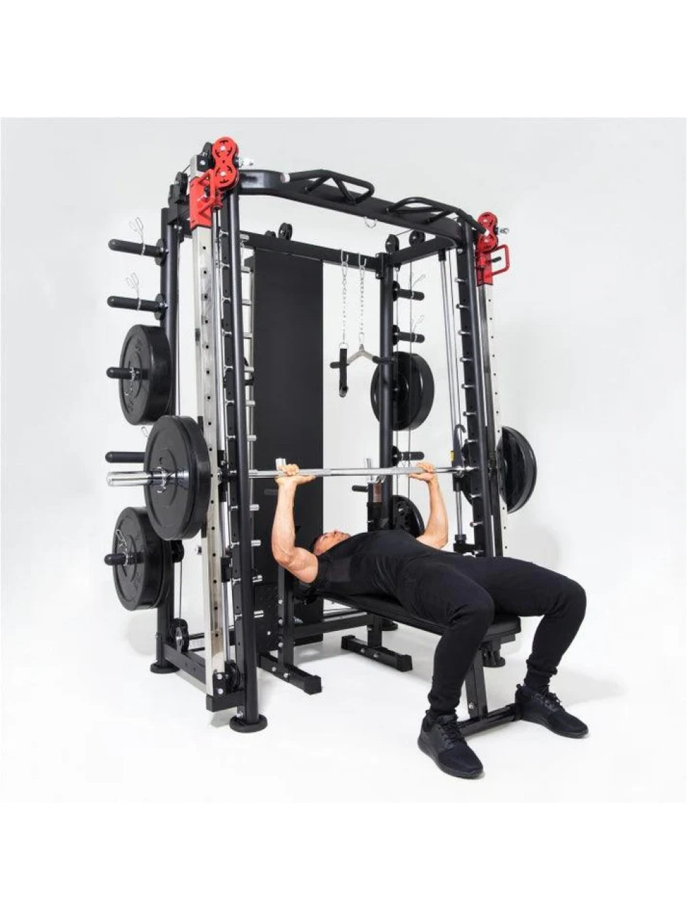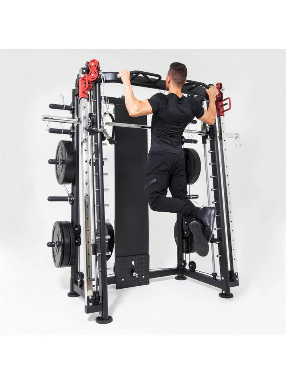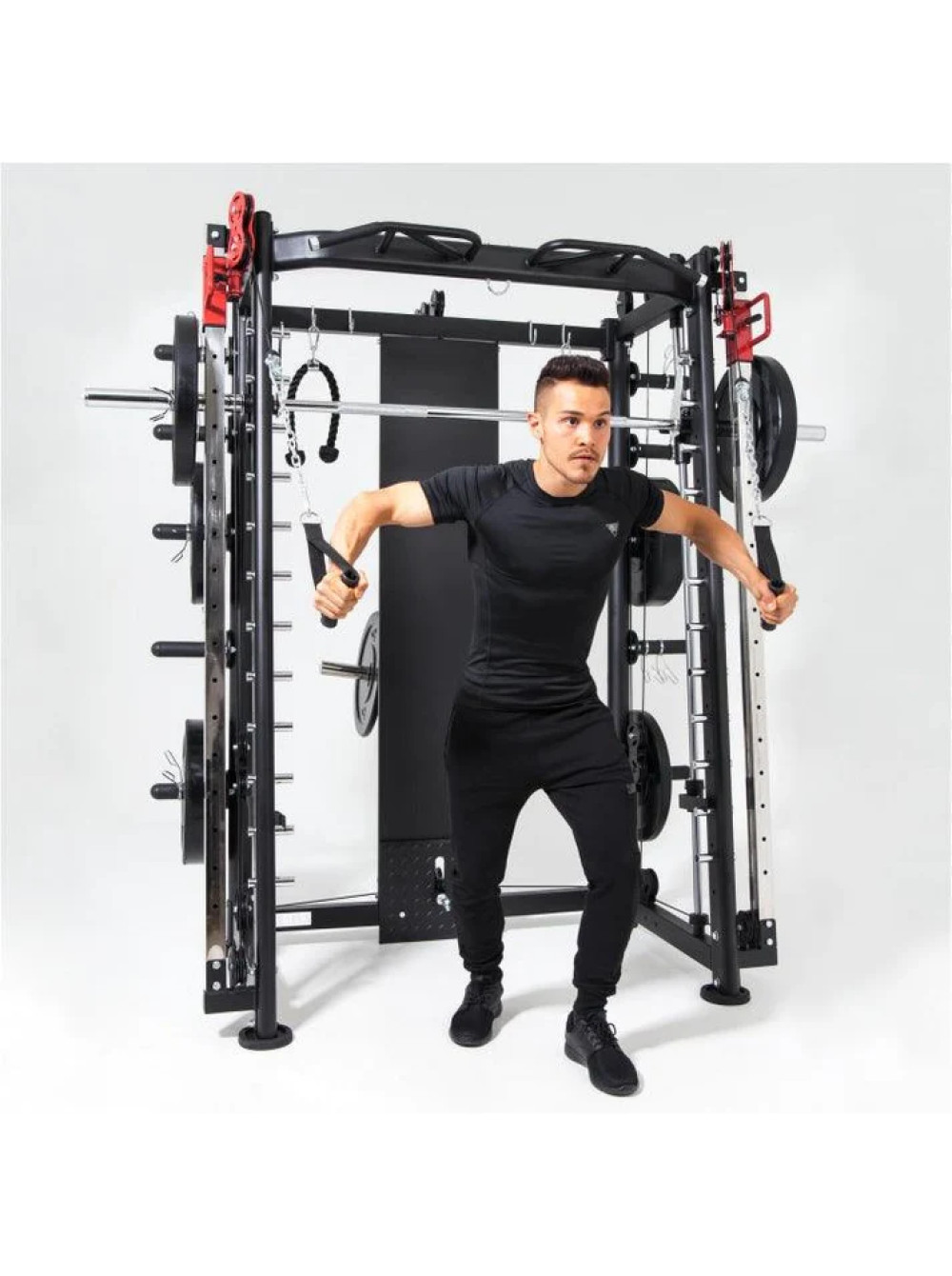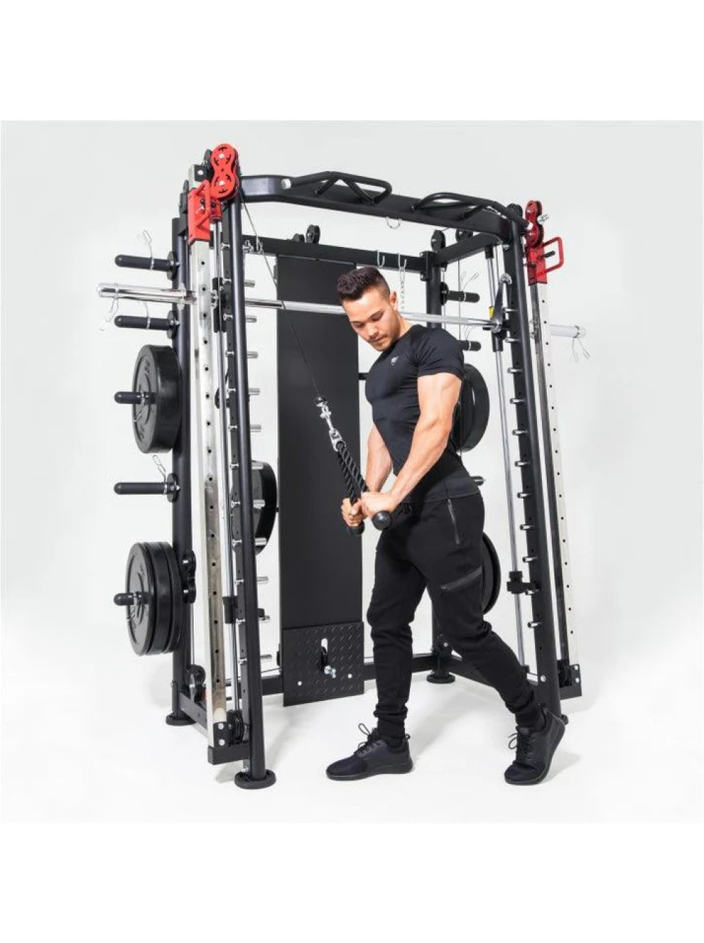 Мультистанция, машина Смита DFC Gorilla Sport 822 0 отзывов 285989р. Оптовая цена: 259990р. для покупки по оптовой цене свяжитесь с нами по телефону Производитель: DFC Наличие: Есть в наличии Модель: 100822 Документы (инструкции): Myltistanciya-mashina-Smita-DFC-Gorilla-Sport-822.pdf Одежда Обувь Как выбрать одежду своего размера? Купить Купить в один клик Скидки постоянным клиентам! Гарантия качества всех товаров магазина! Описание Отзывов (0) Документы Размер стола219 х 128 х 218,5 смРазмер упаковки222 х 97 х 41,6 смВес упаковки244,5 кгВес196 кгГарантия12 месяцевСтрана производстваКитайКоличество посадочных мест8Общая нагрузка300 кгНагрузка на встроенный гриф300 кгНагрузка на кронштейны для штанги до250 кгНагрузка тяга сверху / снизу до200 кг - верх, 180 кг - низОбщая нагрузка на кронштейны для хранения до800 кгПосадочный диаметр дисков51 ммПрофиль рамы50 х 70 х 2 мм; 50 х 50 х 2 ммНагрузка турник200 кг Мультистанция, машина Смита DFC Gorilla Sports 100822 — это профессиональный тренажёр для силовых тренировок в домашних условиях. Благодаря множеству функций и высокой максимальной нагрузке, он подходит как для начинающих, так и для опытных спортсменов, желающих развивать мышцы всего тела. Тренажёр рассчитан на высокие нагрузки: до 300 кг на встроенный гриф, до 200 кг на мультипозиционный турник и до 180 кг на нижнюю тягу. Надежные кронштейны выдерживают до 250 кг, а держатели для хранения дисков рассчитаны на 100 кг каждый — это делает комплекс максимально прочным и безопасным. Посадочный диаметр под диски — 51 мм (диски не входят в комплект и приобретаются отдельно). Каркас тренажёра выполнен из усиленного профиля 50 х 70 х 2 мм и 50 х 50 х 2 мм, что обеспечивает устойчивость даже при максимальных нагрузках. В комплект входят: гриф весом 10,6 кг, мультипозиционный турник, гибкий трос для бицепса, ручка для тяги снизу, две универсальные ручки на цепях для верхней и нижней тяги, а также 8 пружинных замков для хранения дисков. Вы сможете выполнять десятки упражнений — от жима лёжа и приседаний до тяги сверху, снизу и работы с собственным весом. DFC Gorilla Sports 100822 заменяет сразу несколько тренажёров и позволяет тренировать все группы мышц — спину, грудные, ноги, плечи, пресс и руки. Это продуманное и эффективное решение для домашних тренировок на профессиональном уровне. Написать отзыв Ваше имя: Ваш отзыв: Примечание: HTML разметка не поддерживается! Используйте обычный текст. Оценка: Плохо Хорошо Отправить отзыв Myltistanciya-mashina-Smita-DFC-Gorilla-Sport-822.pdf