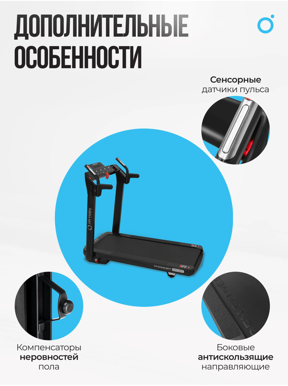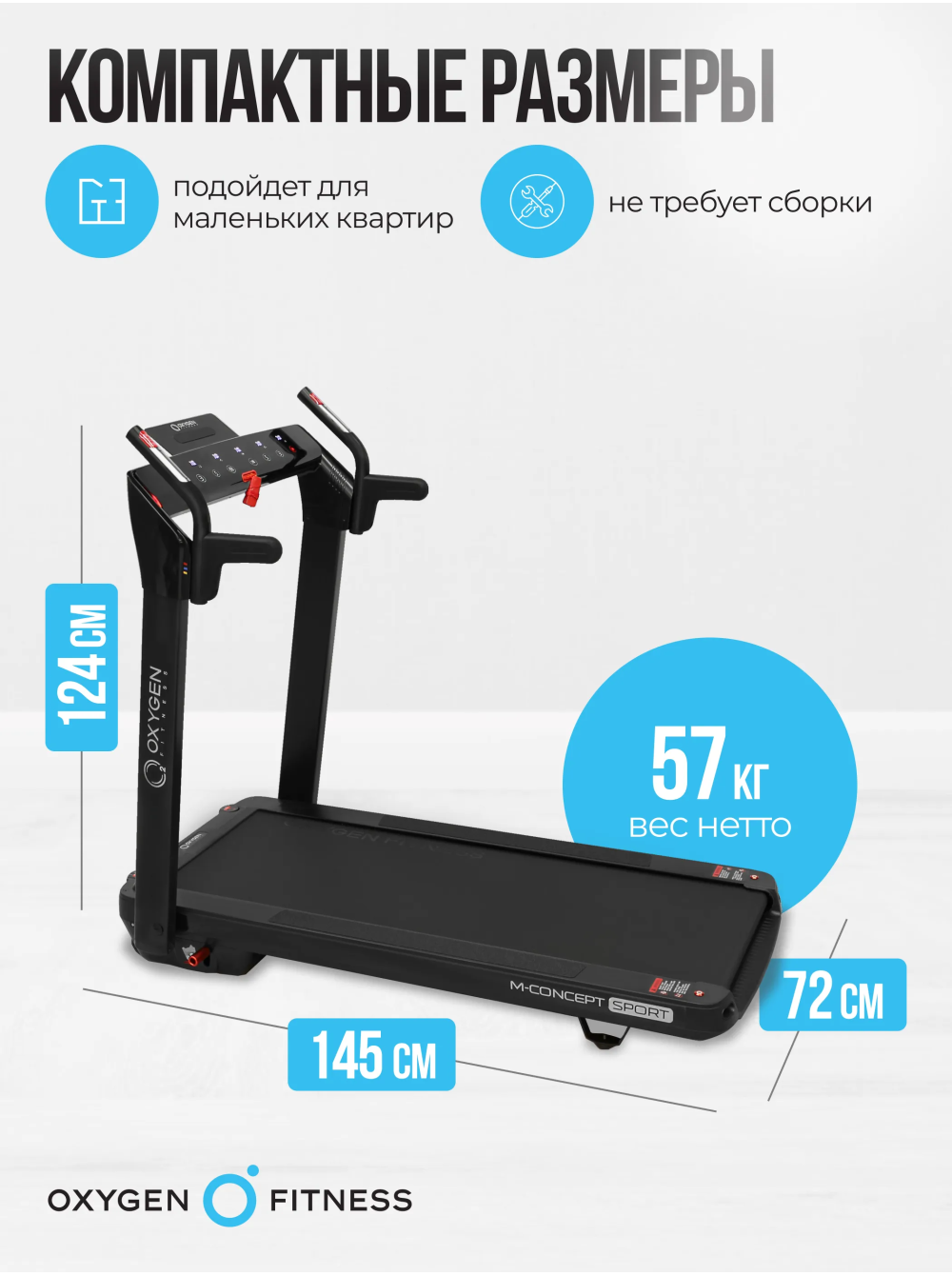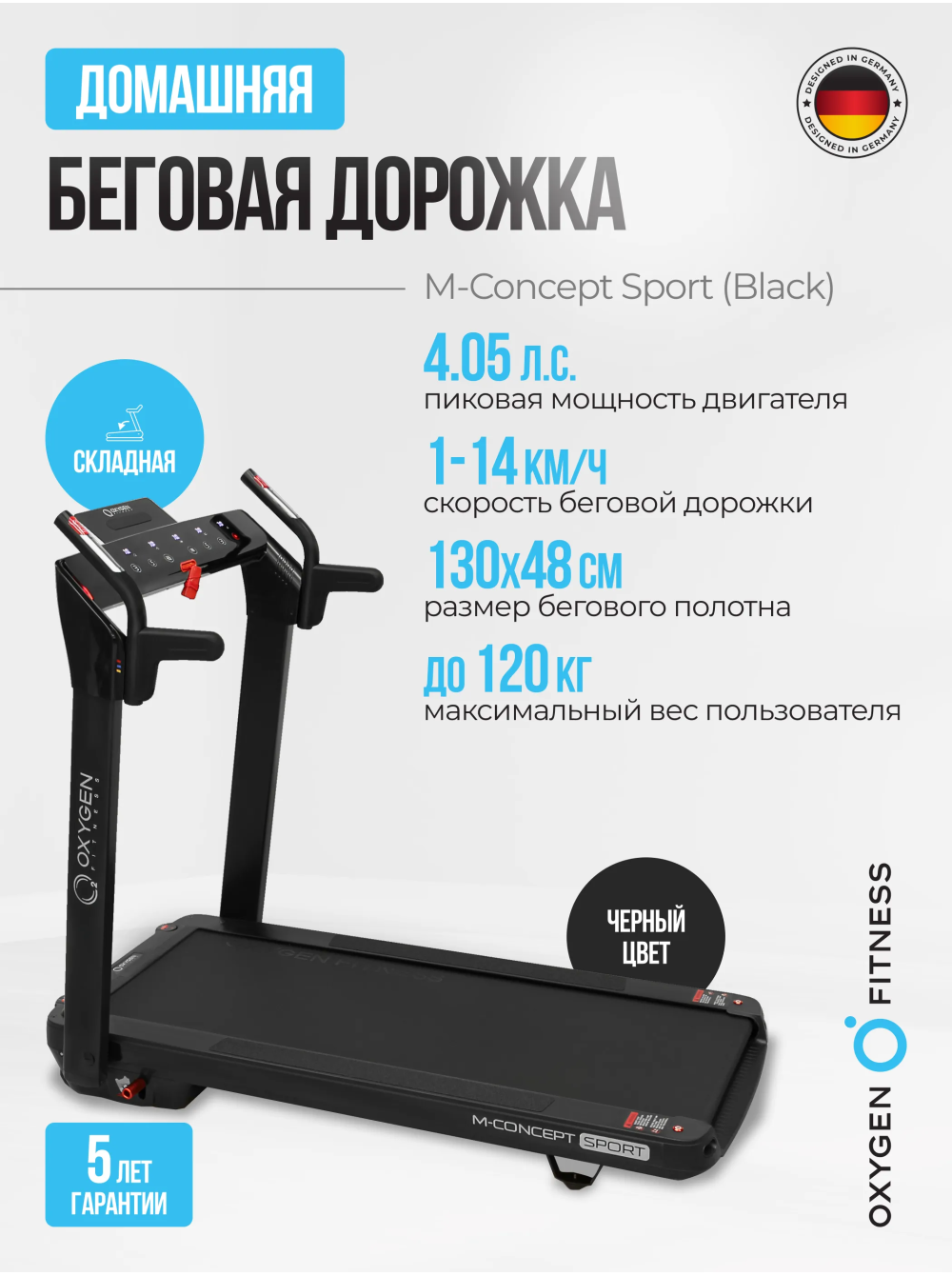 OXYGEN FITNESS M-CONCEPT SPORT (BLACK) Беговая дорожка домашняя 0 отзывов 109990р. Производитель: OXYGEN Наличие: Есть в наличии Модель: M-CONCEPT_SPORT_BLACK Одежда Обувь Как выбрать одежду своего размера? Купить Купить в один клик Скидки постоянным клиентам! Гарантия качества всех товаров магазина! Описание Отзывов (0) Особенности:Вид сбокуВид спередиВид сзади Вид дорожки в сложенном виде. Толщина тренажера в сложенном виде составляет всего 35 см (или 30 см при условии снятия небольших поручней)Электрический угол наклона от 0 до 12%Многослойное коммерческое полотно Habasit NVT-256 толщиной 1.6 ммБеговое полотно 130*48 смНескользящие боковые направляющие6 профессиональных эластомеров VCS™ (по 3 с каждой стороны) обеспечивают отличную амортизациюРегулятор системы складывания, позволяющий собрать дорожку за несколько секундCенсорные датчики пульсаКнопки быстрого доступа к изменению режимов скоростиСъемные поручниКнопки быстрого доступа к изменению угла наклонаПодставка под планшет или смартфонЧерная акриловая консоль с яркой подсветкой по бокамУдобная рукоятка для транспортировкиТранспортировочные роликиДополнительные ролики для транспортировки в вертикальном положенииКомпенсаторы неровностей полаКлюч безопасностиUSB/AUX вход для вывода аудио файлов на динамики 3 Ватта БрендOxygen FitnessАртикулM-CONCEPT_SPORT_BLACKНазначение домашнееТип тренажера электрическая беговая дорожкаДвигатель2.25 л.с. DC Fuji ElectricПиковая мощность двигателя, л.с.4.05 DCСкорость, км/ч1-14Максимальный вес пользователя 120Беговое полотно1.6 мм, многослойное коммерческое Habasit NVT-256Длина бегового полотна, см130Ширина бегового полотна, см48Регулировка угла наклона электроннаяКоличество уровней наклона12Материал декиМДФ, парафинированнаяТолщина деки18 ммСистема амортизации6 профессиональных эластомеров VCS™Измерение пульсаестьСопряжение с кардиодатчикамигерцовый датчик (приобретается отдельно)Консоль LCDТип консоли 6 LED дисплеев с белой индикациейПоказания консоливремя, скорость, дистанция, калории, пульс, уровень наклона, шагиОбщее количество программ17Спецификация программручной режим, 8 тренировочных профилей, 3 пользовательские, 3 пульсозависимые, 3 режима обратного отсчетаМультимедиавстроенные колонкиЯзык интерфейсаанглийскийСкладная конструкция ДаПодставка под планшет/смартфонДаТранспортировочные роликиДаКомпенсаторы неровностей полаДаДополнительные функциисенсорные датчики на поручняхДополнительные особенности тренажералегкое перемещение в двух проекциях (smartMOVE™), отсеки для аксессуаровДлина в рабочем состоянии, см145Ширина в рабочем состоянии, см72Высота в рабочем состоянии, см124Вес нетто, кг57Вес брутто, кг63Подключение к сети220 ВПроизводительFitathlon Group (подразделение в Германии)Страна изготовленияКНР Серия M-Concept - это уникальные тонкие беговые дорожки от OXYGEN FITNESS™. Толщина тренажера в сложенном виде составляет всего 35 см. (или 30 см. при условии снятия небольших поручней). Дорожка легко помещается под кровать, в кладовку или любое другое небольшое место - хранить ее можно и в горизонтальном, и в вертикальном состоянии. Безусловным преимуществом серии является инновационная система перемещения smartMOVE™ - за счет 4 разнонаправленных роликов тренажер можно перемещать в двух проекциях (вперед-назад и вправо-влево) - это очень удобно и, главное, легко в условиях небольших площадей городских кварт