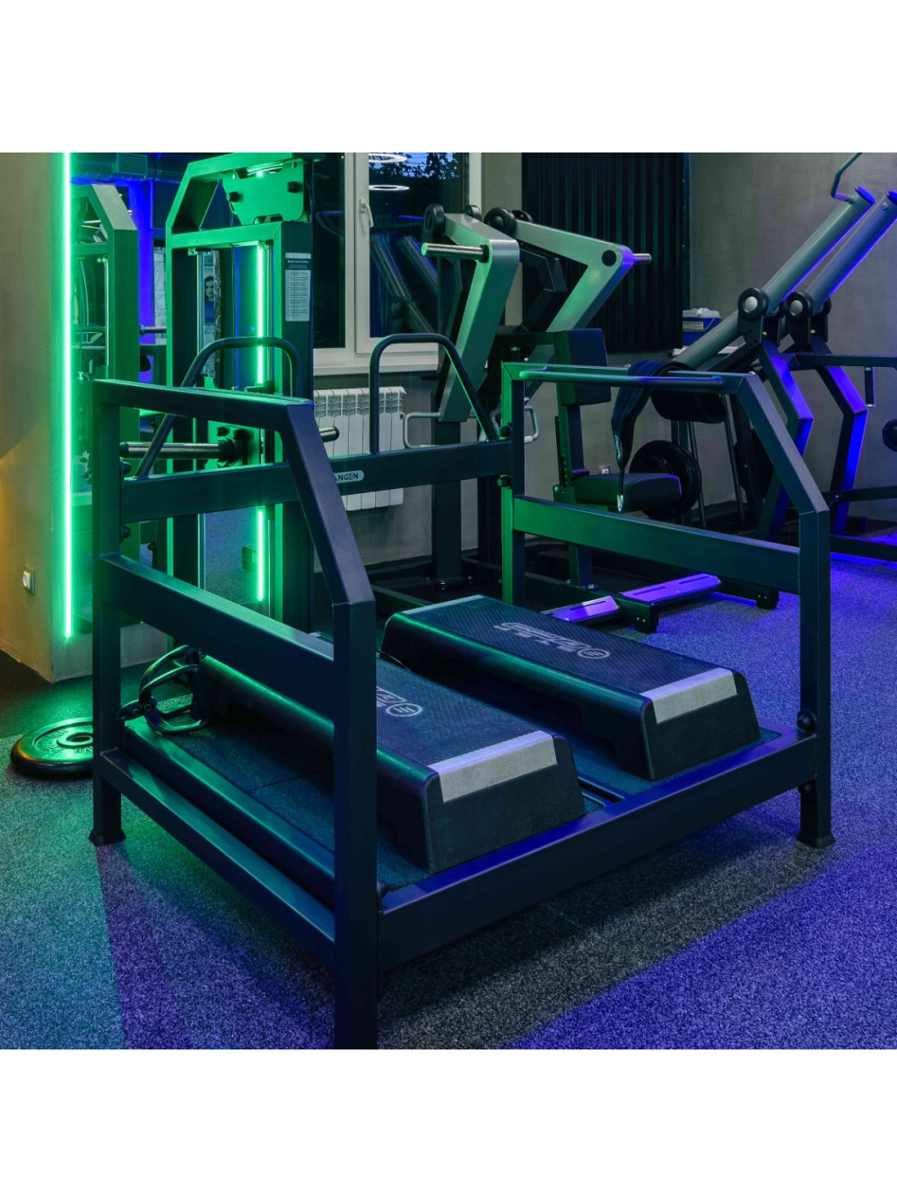 Тренажер для спортивных залов с высокой и средней проходимостью. Предназначен выполнять упражнение приседание с отягощением для тренировки мышц ног и ягодиц. Особенность этого тренажера в том, что спортсмен создает определенные углы нагрузки для ног, чего нельзя добиться при классических приседаниях. в следствие чего нагрузка по-другому распределяется на основные четырехглавые мышцы бедра и большие ягодичные, и другие мышцы нижней части тела, при этом исключается осевая нагрузка на позвоночник. Конструкция тренажера позволяет выполнять приседания с отягощением даже людям, имеющим проблемы со спиной. Профиль: 100?50?3 мм Цвет рамы: графит (другие цвета опционально) Габариты: 2072?1310?1680 мм Вес: 200 кг