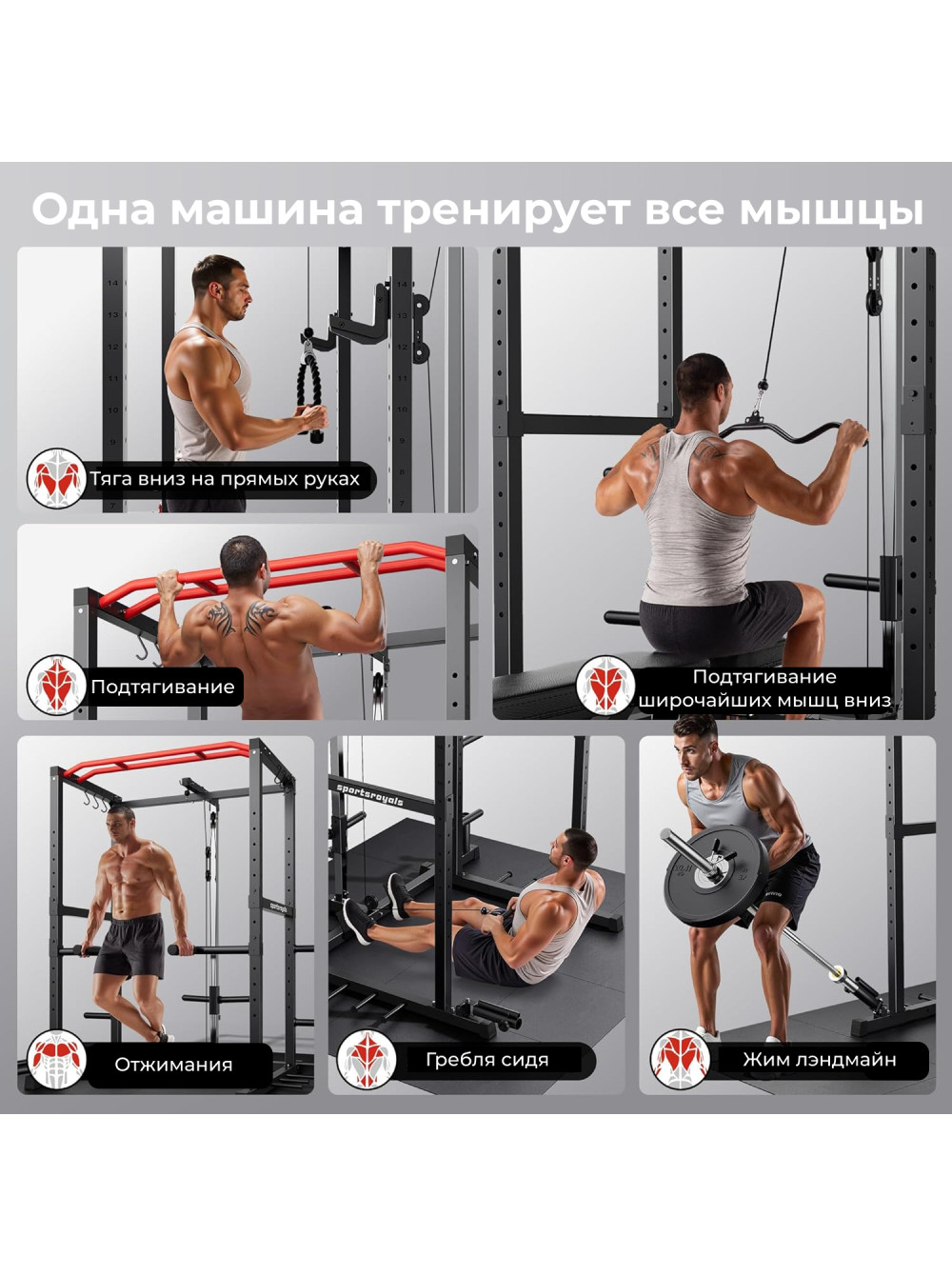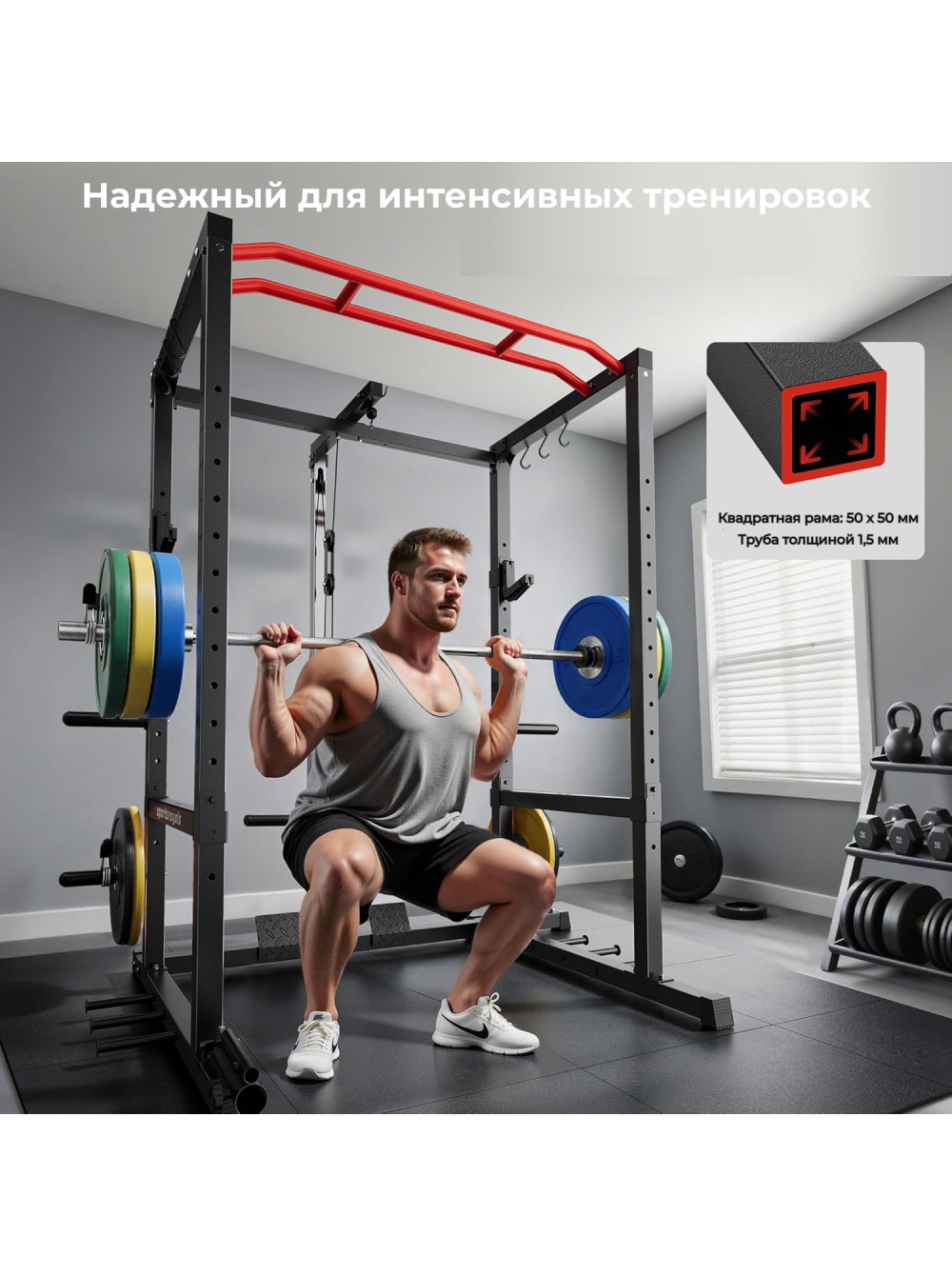 Силовая рама многофункциональная DFC D024 0 отзывов 50589р. Оптовая цена: 45990р. для покупки по оптовой цене свяжитесь с нами по телефону Производитель: DFC Наличие: Есть в наличии Модель: D024 Документы (инструкции): Silovaya-rama-mnogofynkcionalnaya-DFC-D024.pdf Одежда Обувь Как выбрать одежду своего размера? Купить Купить в один клик Скидки постоянным клиентам! Гарантия качества всех товаров магазина! Описание Отзывов (0) Документы Размер упаковки211 х 21 х 17 смРазмер упаковки 2115,5 х 51 х 16 смВес упаковки30,7 кгВес упаковки 239,1 кгВес64,5 кгГарантия12 месяцевСтрана производстваКитайОбщая нагрузка120 кгПосадочный диаметр50 ммПрофиль рамы50 х 50 х 1,5 мм Силовая рама многофункциональная DFC D024 — надежный домашний тренажёр для проработки всех основных групп мышц. Конструкция изготовлена из прочного стального профиля, что обеспечивает высокую устойчивость и долговечность при интенсивных нагрузках. Максимальная статическая нагрузка 545 кг. Модель оснащена системой верхних и нижних тяг, что позволяет выполнять вертикальную тягу широким и узким хватом, горизонтальную тягу сидя, тягу прямыми руками, поворот рукоятки на полный угол и разгибания на трицепс. Шкивы с прецизионными подшипниками обеспечивают плавность и мягкий ход. Телескопические стойки имеют защитное покрытие, устойчивое к коррозии, и рассчитаны на длительный срок эксплуатации. Конструкция включает четырнадцать уровней регулировки высоты, позволяя подстроить раму под задачи спортсмена. Тренажёр подходит для приседаний, жима лёжа, становой тяги, упражнений со штангой, а также для развития спины, груди, рук и ног, заменяя полноценный спортзал дома. Защитные рамы выдерживают повышенные нагрузки, обеспечивая безопасность во время силовых тренировок. Телескопическая труба, стойка для хранения блинов и прочие элементы конструкции обладают высокой прочностью, что делает тренажёр идеальным для регулярных домашних занятий. Посадочный диаметр рассчитан на использование олимпийских блинов, при необходимости может адаптироваться под более компактные диски. На тренажёре можно выполнять упражнения со штангой, подтягивания, отжимания на брусьях, жим лёжа, приседания и становую тягу, обеспечивая комплексную нагрузку всему телу. Силовая рама многофункциональная DFC D024 — универсальное решение для компактного домашнего спортивного уголка. Она сочетает функциональность, компактность и прочность, подходит как для новичков, так и для продвинутых пользователей. Тренажёр легко транспортировать и удобно хранить. Благодаря широким возможностям и надежной конструкции, он станет отличным выбором для эффективных тренировок дома. Гарантия на детали подверженные естественному износу в процессе эксплуатации — до 6 месяцев с момента установки тренажера при условии регулярного планового ТО. Важно: гарантия не распространяется на преждевременный износ из-за чрезмерной эксплуатации тренажера. Написать отзыв Ваше имя: Ваш отзыв: Примечание: HTML разметка не поддерживается! Используйте обычный текст. Оценка: Плохо Хорошо Отправить отзыв Silovaya-rama-mnogofynkcionalnaya-DFC-D024.pdf