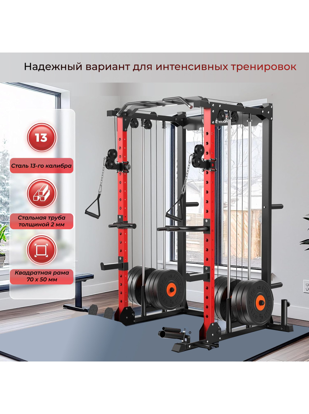 Силовая рама многофункциональная DFC D034 0 отзывов 98989р. Оптовая цена: 89990р. для покупки по оптовой цене свяжитесь с нами по телефону Производитель: DFC Наличие: Есть в наличии Модель: D034 Документы (инструкции): Silovaya-rama-mnogofynkcionalnaya-DFC-D034.pdf Одежда Обувь Как выбрать одежду своего размера? Купить Купить в один клик Скидки постоянным клиентам! Гарантия качества всех товаров магазина! Описание Отзывов (0) Документы Размер упаковки216 х 25 х 12 смРазмер упаковки 2137 х 46 х 26 смРазмер упаковки 360 х 55 х 21 смВес упаковки35,5 кгВес упаковки 244,5 кгВес упаковки 325,5 кгВес96 кгГарантия12 месяцевСтрана производстваКитайПосадочный диаметр50 ммПрофиль рамы50 х 50 х 1,5 ммМаксимальный вес120 кгТолщина тросов5 мм Силовая рама многофункциональная DFC D034 — компактное и удобное решение для домашних тренировок, позволяющее выполнять широкий спектр силовых упражнений, включая подтягивания, отжимания на брусьях, тягу верхнего и нижнего блока. Профиль рамы 50*70*2 мм, Максимальная статическая нагрузка до 800 кг, что обеспечивает безопасную и комфортную эксплуатацию тренажёра для пользователей разного уровня подготовки. Рама имеет прочный профиль и посадочный диаметр, а толщина тросов и рукояти для тяги обеспечивают надёжность и стабильность при выполнении упражнений. Тренажёр компактный и удобный, легко размещается в домашних условиях и не занимает много места. Прочная конструкция и качественные материалы гарантируют долговечность и устойчивость даже при регулярных занятиях. Силовая рама многофункциональная DFC D034 сочетает компактность, эргономичность и многоуровневую регулировку, обеспечивая универсальность использования и возможность адаптации под индивидуальные параметры пользователя. Она идеально подходит для домашних тренировок и позволяет безопасно развивать силу, выносливость и мышечный корсет. Гарантия на детали подверженные естественному износу в процессе эксплуатации — до 6 месяцев с момента установки тренажера при условии регулярного планового ТО. Важно: гарантия не распространяется на преждевременный износ из-за чрезмерной эксплуатации тренажера. Написать отзыв Ваше имя: Ваш отзыв: Примечание: HTML разметка не поддерживается! Используйте обычный текст. Оценка: Плохо Хорошо Отправить отзыв Silovaya-rama-mnogofynkcionalnaya-DFC-D034.pdf