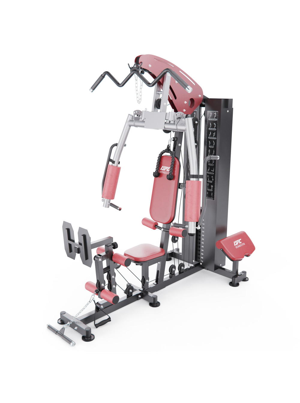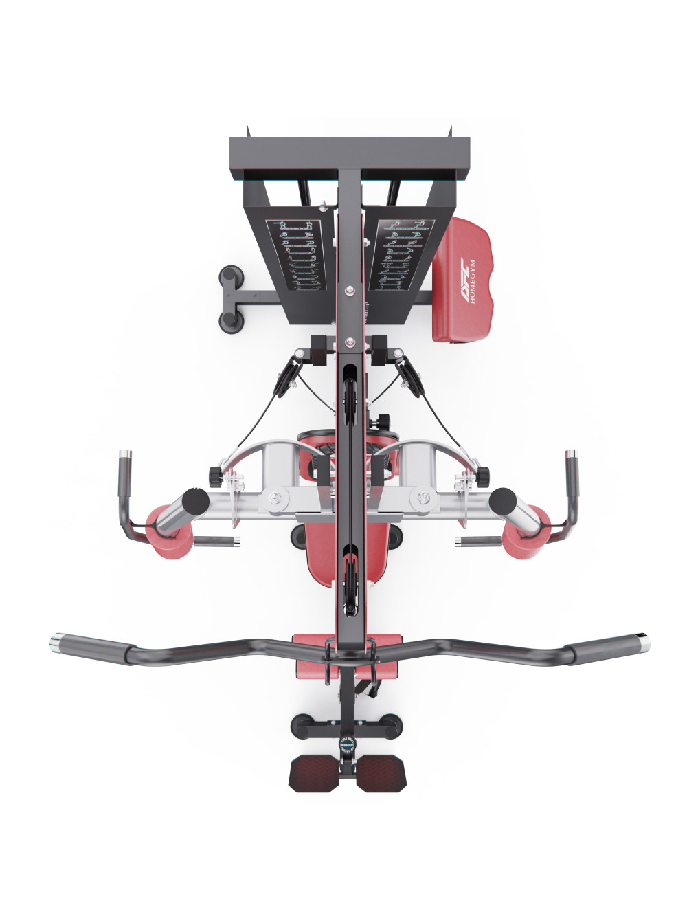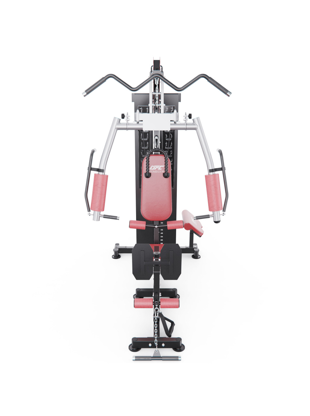 Силовой комплекс DFC D7009 со стеком 72 кг — это современное многофункциональное оборудование, которое позволит вам создать полноценную домашнюю спортплощадку. Благодаря продуманной конструкции и внушительному стеку в 72 кг, комплекс подходит как для начинающих, так и для опытных атлетов.   Основные преимущества •    Универсальность применения: возможность выполнять широкий спектр упражнений на все группы мышц •    Прочная конструкция: устойчивость и надежность при максимальных нагрузках •    Большой стек: 72 кг весовых пластин для постепенного увеличения нагрузки •    Компактность: оптимальное использование пространства при установке •    Безопасность: продуманная система фиксации и страховочные механизмы   Технические особенности конструкции Профиль рамы выполнен из высококачественной стали с параметрами 50×75×1.5 мм, что обеспечивает: •    Исключительную прочность всей конструкции •    Длительный срок службы •    Надежную фиксацию всех элементов •    Безопасность при максимальных нагрузках   Технические характеристики •    Максимальный вес стека: 72 кг •    Общий вес конструкции: 158 кг •    Габариты в собранном виде: 1500×1000×2050 мм •    Максимальная нагрузка на пользователя: 150 кг •    Материалы: высокопрочная сталь с антикоррозийным покрытием •    Профиль конструкции: 50×75×1.5 мм •    Нагрузка: регулируемая, 12 уровней   Гарантия: длительный срок службы при соблюдении условий эксплуатации   Комплекс позволяет эффективно прорабатывать: •    Мышцы ног: жимы ногами, разгибания •    Мышцы рук: жимы, разведение, сгибание •    Плечевой пояс: различные варианты жимов и тяг •    Корпус: упражнения на пресс и спину