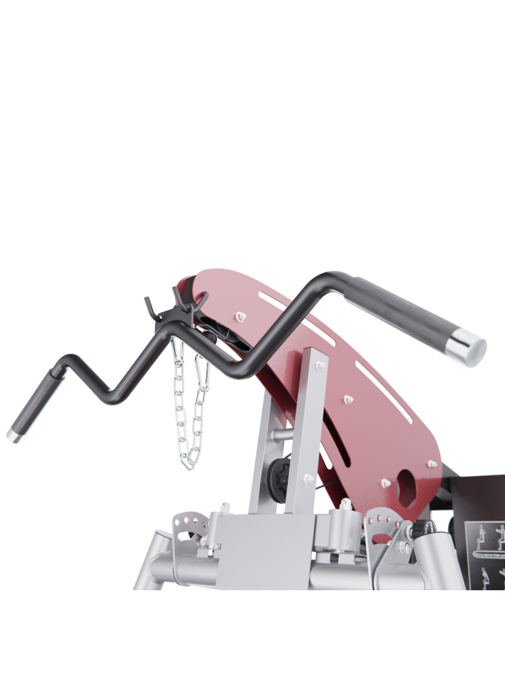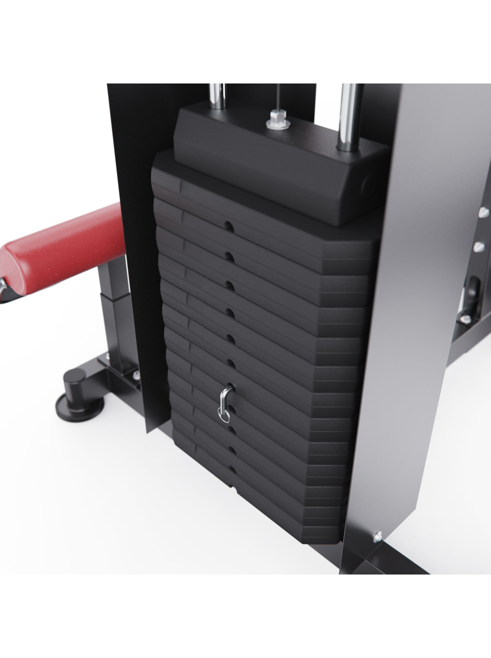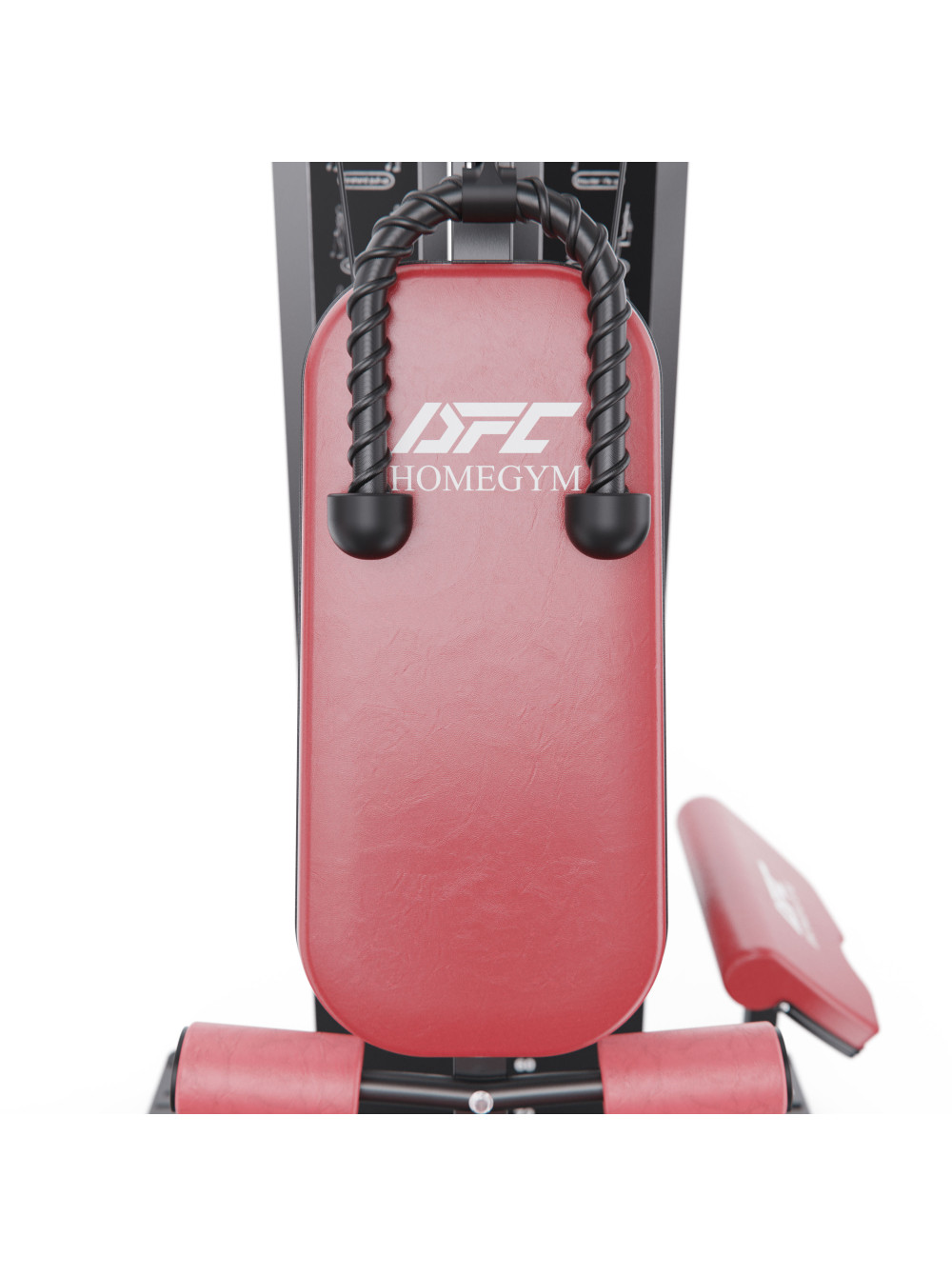 Силовой комплекс DFC D7009 со стеком 72 кг — это современное многофункциональное оборудование, которое позволит вам создать полноценную домашнюю спортплощадку. Благодаря продуманной конструкции и внушительному стеку в 72 кг, комплекс подходит как для начинающих, так и для опытных атлетов.   Основные преимущества •    Универсальность применения: возможность выполнять широкий спектр упражнений на все группы мышц •    Прочная конструкция: устойчивость и надежность при максимальных нагрузках •    Большой стек: 72 кг весовых пластин для постепенного увеличения нагрузки •    Компактность: оптимальное использование пространства при установке •    Безопасность: продуманная система фиксации и страховочные механизмы   Технические особенности конструкции Профиль рамы выполнен из высококачественной стали с параметрами 50×75×1.5 мм, что обеспечивает: •    Исключительную прочность всей конструкции •    Длительный срок службы •    Надежную фиксацию всех элементов •    Безопасность при максимальных нагрузках   Технические характеристики •    Максимальный вес стека: 72 кг •    Общий вес конструкции: 158 кг •    Габариты в собранном виде: 1500×1000×2050 мм •    Максимальная нагрузка на пользователя: 150 кг •    Материалы: высокопрочная сталь с антикоррозийным покрытием •    Профиль конструкции: 50×75×1.5 мм •    Нагрузка: регулируемая, 12 уровней   Гарантия: длительный срок службы при соблюдении условий эксплуатации   Комплекс позволяет эффективно прорабатывать: •    Мышцы ног: жимы ногами, разгибания •    Мышцы рук: жимы, разведение, сгибание •    Плечевой пояс: различные варианты жимов и тяг •    Корпус: упражнения на пресс и спину
