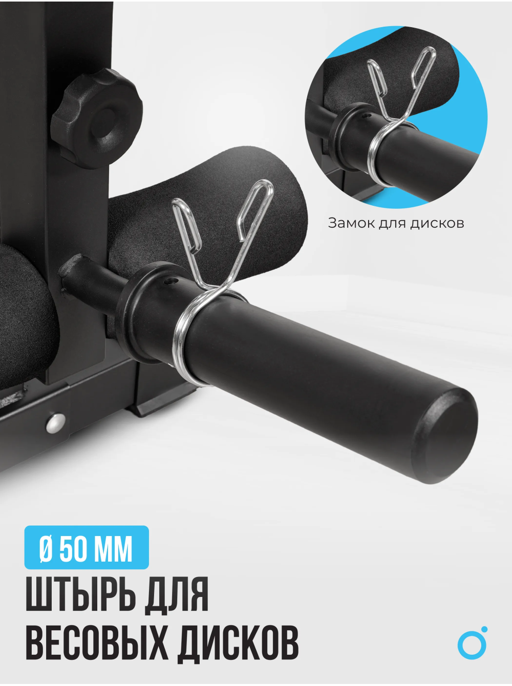 Дополнительнонакопитель для дисков ф50, замок для дисков, бицепс рукоятка. 4 неопреновых валика ф8*17, транспортировочные ролики. Регулировка парты бицепса - 3 уровня. Подушки: спинка - 90*27*5, сиденье - 38*37*5.5, парта бицепса - 41*24*5.