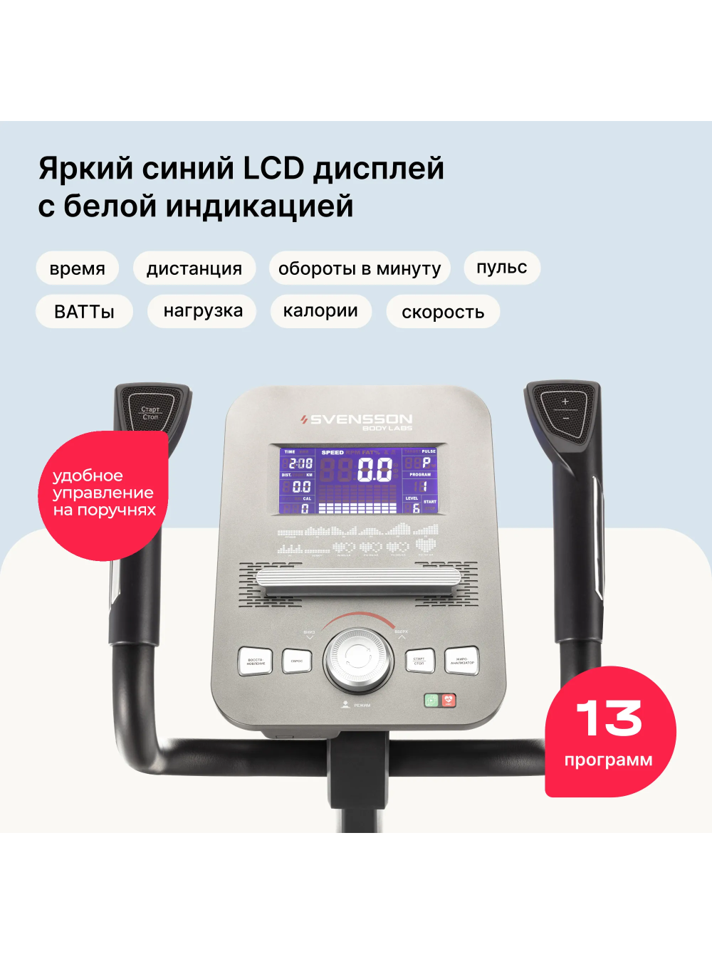 Эллиптический тренажер домашний SVENSSON BODY LABS TITAN 0 отзывов 69990р.76990р. Вы экономите: 7000р. (-9%) Производитель: SVENSSON INDUSTRIAL Наличие: Есть в наличии Модель: TITAN Документы (инструкции): mpdf.php?url=%2Fcatalog%2Fellipticheskie-trenazhery%2Fellipticheskiy-trenazher-domashniy-svensson-body-labs-titan%2F&pdfversion=1&name_file=ellipticheskiy-trenazher-domashniy-svensson-body-labs-titan Одежда Обувь Как выбрать одежду своего размера? Купить Купить в один клик Скидки постоянным клиентам! Гарантия качества всех товаров магазина! Описание Отзывов (0) Документы Особенности:Расстояние между педалями 5 СМ, Длина шага 50 СМШИРОКИЕ ПЕДАЛИ С АНТИСКОЛЬЗЯЩИМ ПОКРЫТИЕМРЕГУЛИРОВКА УРОВНЯ НАКЛОНА СЕНСОРНЫЕ ДАТЧИКИ ПУЛЬСА ЭЛЕКТРОМАГНИТНАЯ СИСТЕМА НАГРУЖЕНИЯ SpinMaster EMS ТРАНСПОРТИРОВОЧНЫЕ РОЛИКИКОМПЕНСАТОРЫ НЕРОВНОСТЕЙ ПОЛА БрендSvensson Body LabsАртикулTITANНазначение домашнееТип тренажера эллиптический с наклономСистема нагружения электромагнитнаяКоличество уровней нагрузки16Инерционный вес маховика, кг26, BioFusion™Тип педального узладисковый шатун с увеличенным радиусомРасстояние между педалями, мм50Длина шага, мм500Регулировка угла наклона ручнаяИзмерение пульсаестьСопряжение с кардиодатчикамигерцовый датчик (приобретается отдельно)Консоль LCDТип консоли LCD дисплей синий с белой индикациейПоказания консоливремя, скорость, дистанция, калории, пульс, нагрузка, обороты в минуту, ВаттыОбщее количество программ13Спецификация программбыстрый старт, ручной режим, 6 предустановленных, 4 пульсозависимые, жироанализаторИнтеграционные технологииBluetooth для работы с тренировочным мобильным приложением (Kinomap™, Zwift™)Язык интерфейсарусский, английскийПодставка под планшет/смартфонДаТранспортировочные роликиДаКомпенсаторы неровностей полаДаДополнительные функциисенсорные датчики на поручнях, возможность сопряжения с кардиодатчиком Bluethooth через фитнес-приложенияДлина в рабочем состоянии, см174Ширина в рабочем состоянии, см70Высота в рабочем состоянии, см173Вес нетто, кг61.2Вес брутто, кг80.5Максимальный вес пользователя 150Подключение к сети220 ВПроизводительFitathlon Group (подразделение в Швеции)Страна изготовленияКНР Погрузитесь в мир эффективных тренировок с эллиптическим тренажером SVENSSON BODY LABS TITAN, созданным специально для домашнего использования. Его высокопрочная рама с антикоррозийной обработкой и электромагнитная система нагружения SpinMaster EMS с 16 уровнями интенсивности обеспечивают непревзойденное качество и комфорт во время тренировок. Трехуровневая механическая регулировка угла наклона, дисковый шатун педального узла с увеличенным радиусом и удобные изогнутые подвижные поручни с мягкой оплеткой делают тренировки на SVENSSON BODY LABS TITAN максимально удобными и эффективными. Педали увеличенного размера с антискользящим покрытием обеспечивают безопасность и комфорт во время занятий. Яркий синий LCD дисплей с белой индикацией, отображающий все необходимые показатели, включая время, скорость, дистанцию, калории, пульс, нагрузку, обороты в минуту, ВАТТы, позволяет вам максимально контролировать тренировочный процесс. 13 предустановленных программ - включая быстрый старт, ручной режим, пульсозависимые программы, жироанализатор и пользовательский режим, делают вашу тренировку на SVENSSON BODY LABS TITAN еще более увлекательным и результативным занятием. Дополнительные удобства, такие как быстрые клавиши доступа на поручнях, подставка под планшет, транспортировочные