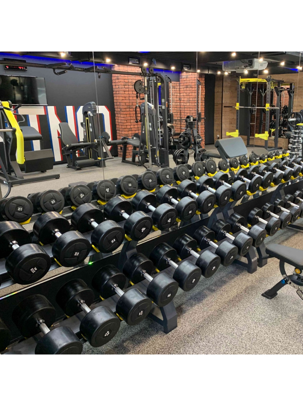 A2215-10 Стойка для гантелей (на 10 пар, желтые ложементы) ТАНГЕН 0 отзывов 68000р. Оптовая цена: 54400р. для покупки по оптовой цене свяжитесь с нами по телефону Производитель: ТАНГЕН Наличие: Предзаказ Модель: 9ecf768a-d865-11ef-bac7-00155d019509 Одежда Обувь Как выбрать одежду своего размера? Купить Купить в один клик Скидки постоянным клиентам! Гарантия качества всех товаров магазина! Описание Отзывов (0) Стойка предназначена для хранения и удобного использования круглых гантелей. Представляет собой сборную металлическую конструкцию с двумя полками и ложементами под гантели. Чашеобразные гнёзда под гантели изготовлены из прочного пластика, обеспечивающего надежную фиксацию и безопасность при использовании оборудования. Полки выполнены из листового металла толщиной 3 мм. Ложементы (40 шт.) изготовлены из прочного нескользящего пластика. Расстояние между ложементами 240 мм. Цвет ложементов: жёлтый. Стойка имеет резиново-пластиковые подпятники на каждой опоре (6 шт.). На стойке можно разместить десять пар гантелей с длиной рукояти от 120 до 160 мм, общим весом до 720 кг. Подходит для хранения гантельных рядов PROFESSIONAL и POWER. Высота от пола: первый ряд 350 мм, второй ряд 800 мм. Габариты: 2400?655?825 мм. Вес: 95 кг. Цвет: графит. Максимальная нагрузка: 720 кг. Профиль: 100?50?3 мм Особенности: длина рукояти гантели для размещения от 120 до 160 мм. Производитель: TANGEN. Габариты: 2400?655?825 мм Вес: 95 кг Основа: 100?50?3 мм Макс. нагрузка: 720 кг Особенности: ложементы жёлтого цвета Написать отзыв Ваше имя: Ваш отзыв: Примечание: HTML разметка не поддерживается! Используйте обычный текст. Оценка: Плохо Хорошо Отправить отзыв