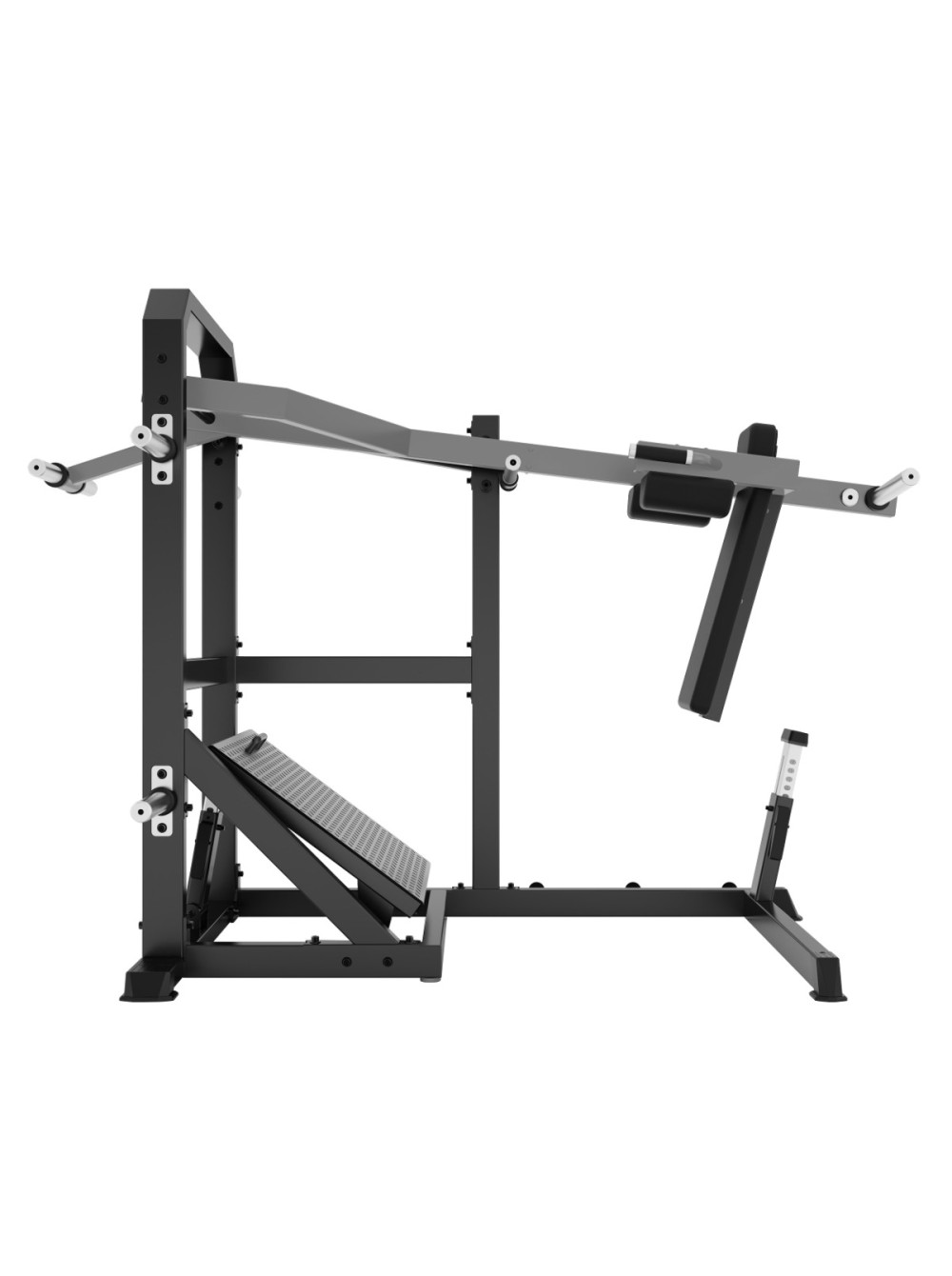 A610 Маятниковые приседания 0 отзывов 243659р. Оптовая цена: 194927р. для покупки по оптовой цене свяжитесь с нами по телефону Производитель: DHZ Наличие: Предзаказ Модель: 422337bb-d884-11ef-bac7-00155d019509 Одежда Обувь Как выбрать одежду своего размера? Купить Купить в один клик Скидки постоянным клиентам! Гарантия качества всех товаров магазина! Описание Отзывов (0) Профессиональный тренажёр для коммерческого использования A610 Маятниковые приседания предназначен для базовой тренировки квадрицепсов, ягодичных мышц и задней поверхности бедра. Маятниковый механизм обеспечивает глубокую амплитуду движения и контролируемую нагрузку, а высокая спинка и подушки под плечи создают устойчивую и безопасную фиксацию корпуса. Основание тренажёра выполнено из стального прямоугольного профиля 80?50 мм с толщиной стенки 3 мм. Все элементы изготавливаются на высокоточном оборудовании с ЧПУ, что обеспечивает точность геометрии и стабильность конструкции. Несущие узлы соединены методом роботизированной сварки, обеспечивающим точность сопряжения элементов и высокую эксплуатационную надёжность. На металлические элементы после антикоррозийной обработки нанесено двухслойное порошковое напыление в электростатическом поле для обеспечения прочности покрытия и устойчивости к истиранию. Цветовое исполнение: графит (возможна индивидуальная окраска под проект). Нагрузка: свободные веса. Подвижный маятниковый узел оснащён высокой спинкой с раздельным подголовником и двумя мягкими подушками под плечи. Подушки под плечи имеют повышенную жёсткость, что исключает деформацию при работе с большими весами и обеспечивает стабильную фиксацию корпуса. Все мягкие элементы нерегулируемые. Мягкие элементы выполнены из вспененного полиуретана, обеспечивающего оптимальную плотность и устойчивость к деформации. Обивка – износостойкая искусственная кожа. Цвет обивки: чёрный (возможны индивидуальные решения под проект). На подвижном рычаге для работы с весом установлено по две пары накопителей с каждой стороны. Одна пара накопителей предназначена для увеличения нагрузки при помощи дисков, вторая – для снижения нагрузки за счёт регулируемого противовеса, также настраиваемого дисками. Все накопители рассчитаны на диски с посадочным диаметром 50 мм и оснащены заглушками на торцах. В местах соприкосновения подвижных узлов с рамой предусмотрены демпферы, смягчающие ударные нагрузки и защищающие конструкцию от повреждений. На раме тренажёра предусмотрены четыре накопителя для хранения дисков ? 50 мм. Торцы накопителей закрыты заглушками. Платформа для ног выполнена из рифлёного листового металла со скруглёнными краями. Платформа регулируется только по углу наклона при помощи полуавтоматического фиксатора в семи фиксированных положениях. Для удобства регулировки на верхней части платформы установлена металлическая рукоять из стального прутка. В нижней части рамы под спинкой установлен регулируемый ограничитель хода подвижного узла. Вылет ограничителя настраивается в пяти фиксированных положениях при помощи полуавтоматического фиксатора. Для удобства регулировки предусмотрена дополнительная рукоять. На торце ограничителя установлен демпфер, смягчающий ударные нагрузки в нижней точке амплитуды. Для безопасного начала и завершения подхода предусмотрен ста