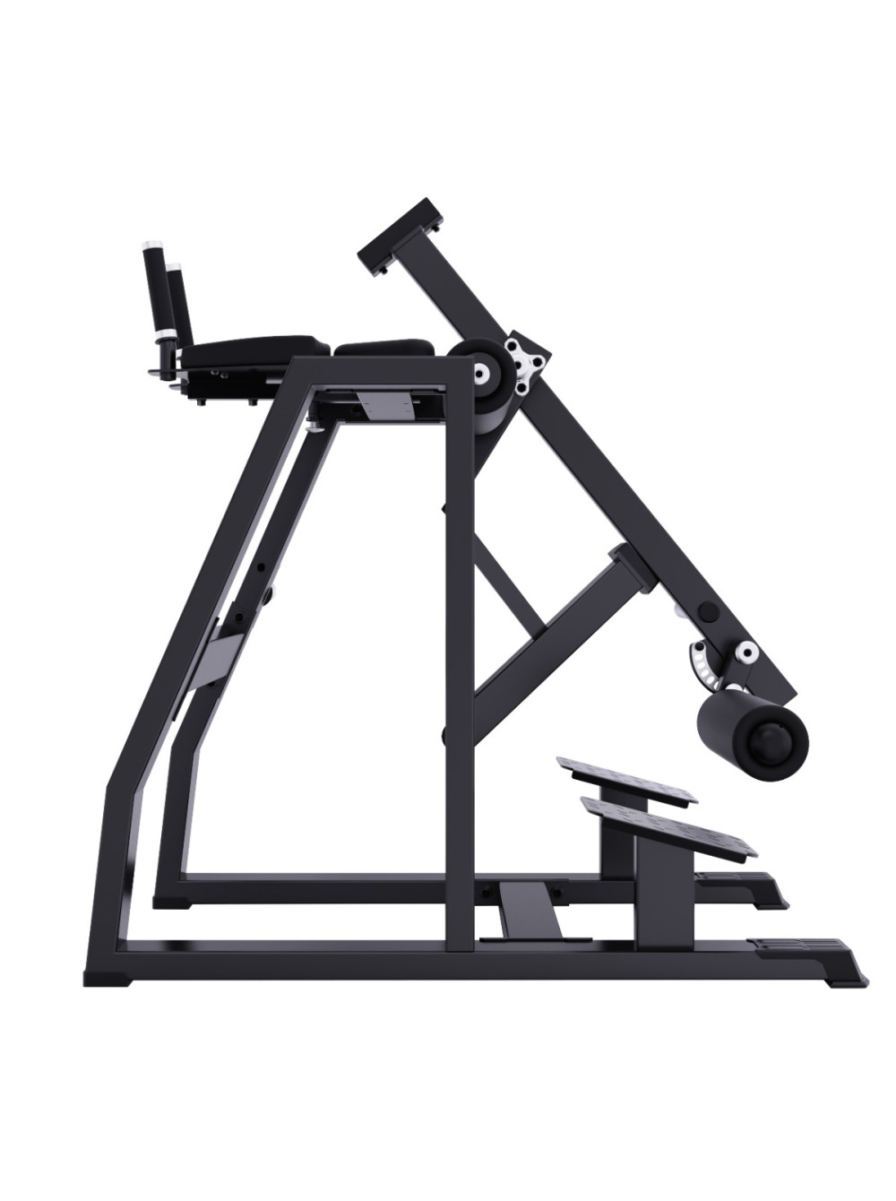 Профессиональный тренажёр для коммерческого использования A613 Обратная гиперэкстензия предназначен для изолированной проработки ягодичных мышц, задней поверхности бедра и мышц поясничного отдела. Конструкция обеспечивает физиологичную траекторию движения и высокую эффективность упражнения благодаря оптимальному расположению рабочего валика и адаптивной опоре корпуса. Основание тренажёра выполнено из стального прямоугольного профиля 80?50 мм с толщиной стенки 3 мм. Все элементы производятся на высокоточном оборудовании с ЧПУ, что обеспечивает точную геометрию и стабильность конструкции. Несущие узлы соединены методом роботизированной сварки, обеспечивающим точное сопряжение элементов и высокую эксплуатационную надёжность. На металлические элементы после антикоррозийной обработки нанесено двухслойное порошковое порошковое покрытие в электростатическом поле для повышения износостойкости и стойкости к механическим воздействиям. Цветовое исполнение: графит (возможна индивидуальная окраска под проект). Нагрузка: свободные веса. Рабочая зона состоит из трёх анатомических мягких элементов: подуши для опоры торса, раздельных подушек под предплечья и центрального валика под живот. Конструкция обеспечивает удобное размещение корпуса и снижает давление на тазобедренные суставы при максимальном сгибании. Рукояти выполнены из стального прутка с покрытием для надёжного хвата. Торцы рукоятей закрыты металлическими заглушками с болтовой фиксацией. Узел мягких элементов и вертикальных рукоятей регулируется по горизонтали (вылету) при помощи полуавтоматического фиксатора. Все мягкие элементы выполнены из вспененного полиуретана, устойчивого к деформации и рассчитанного на интенсивное использование. Обивка – износостойкая искусственная кожа. Цвет обивки: чёрный (возможны индивидуальные решения под проект). На подвижном рычаге установлен противовес, обеспечивающий сбалансированную кинематику и облегчённый старт движения. На подвижном рычаге размещён хромированный металлический накопитель под диски ? 50 мм с пластиковыми заглушками на торцах. На раме тренажёра предусмотрены два накопителя для хранения дисков ? 50 мм, оснащённые пластиковыми торцевыми заглушками. На рабочей стороне рычага установлен валик. Валик регулируется по диагонали в шести фиксированных положениях, что позволяет подобрать оптимальную биомеханику под рост пользователя. В местах соприкосновения рычага с рамой предусмотрены демпферы, смягчающие ударные нагрузки и обеспечивающие плавный возврат механизма. Для удобства размещения на тренажёре предусмотрены две наклонные опоры для ног, выполненные из рифлёного листового металла со скруглёнными краями для безопасности. Опорные элементы тренажёра оснащены пластиковыми подпятниками, предотвращающими повреждение напольного покрытия и обеспечивающими устойчивость конструкции. Конструкция рассчитана на длительную эксплуатацию в коммерческих фитнес-клубах и соответствует международным стандартам качества и безопасности. Габариты тренажера: 1550?1400?1230 мм. Профиль: 80?50?3 мм. Вес: 105 кг. Производитель: DHZ Fitness. Производитель оставляет за собой право на внесение изменений в конструкцию и комплектацию тренажера, не влияющих на его эксплуатационные качества. Профиль: 80?50?3 мм Материал: металл, 