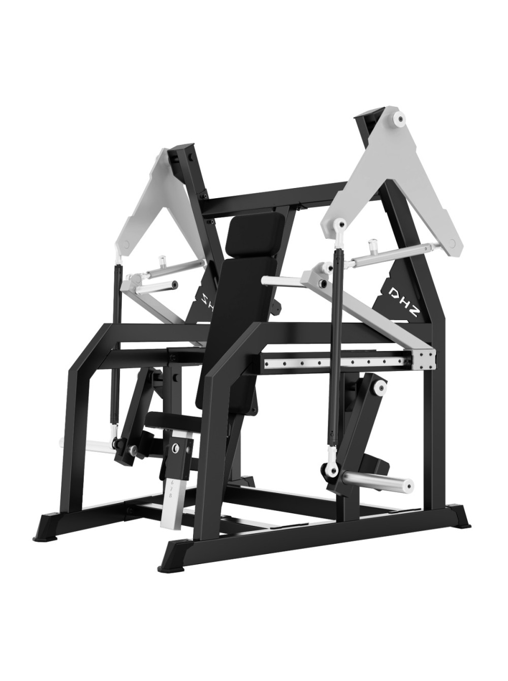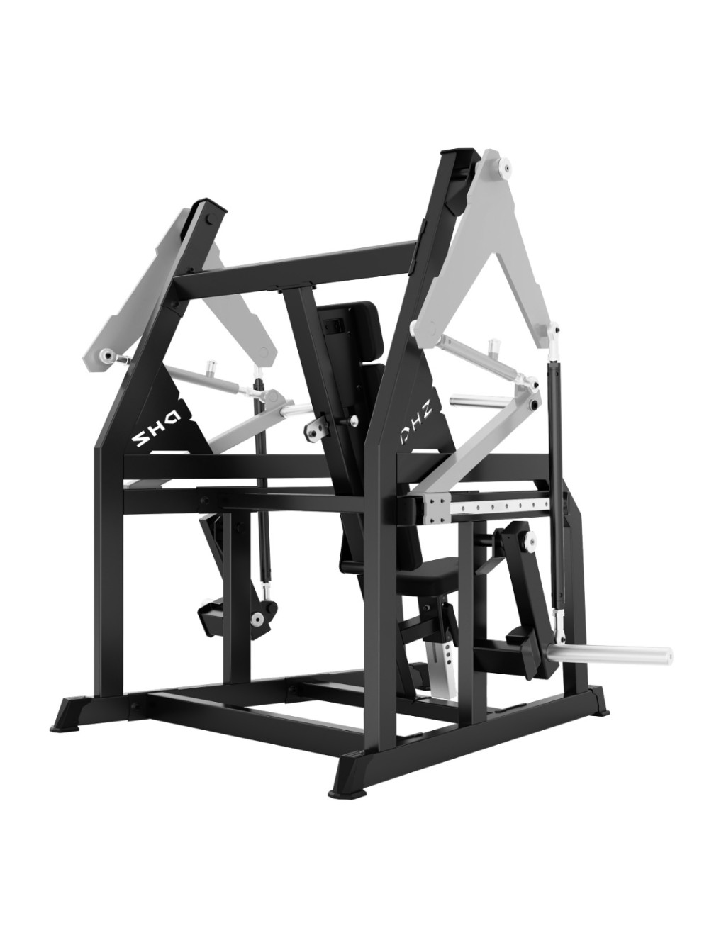 Профессиональный тренажёр для коммерческого использования A615 Жим от груди предназначен для изолированной и равномерной проработки грудных мышц, передних дельт и трицепсов. Конструкция обеспечивает прямолинейную траекторию движения, высокую стабильность и точную биомеханику благодаря системе тяг и направляющих. Основание тренажёра выполнено из стального прямоугольного профиля 80?50 мм с толщиной стенки 3 мм. Все элементы изготавливаются на высокоточном оборудовании с ЧПУ, что обеспечивает точность геометрии и стабильность конструкции. Несущие узлы соединены методом роботизированной сварки, обеспечивающим точное сопряжение элементов и высокую эксплуатационную надёжность. На металлические элементы после антикоррозийной обработки нанесено двухслойное порошковое напыление в электростатическом поле для повышения прочности покрытия и устойчивости к истиранию. Цветовое исполнение: графит (возможна индивидуальная окраска под проект). Нагрузка: свободные веса. Спинка эргономичной формы с раздельным подголовником регулируется по углу наклона при помощи механического фиксатора, обеспечивая оптимальное положение корпуса относительно рычагов. Сиденье эргономичной формы регулируется по высоте при помощи полуавтоматического фиксатора. Направляющая регулировки имеет числовую разметку для точной установки положения. Все мягкие элементы выполнены из вспененного полиуретана, устойчивого к деформации и рассчитанного на интенсивное использование. Обивка – износостойкая искусственная кожа. Цвет обивки: чёрный (возможны индивидуальные решения под проект). Независимые подвижные рычаги оснащены тягами с шаровыми шарнирами, обеспечивающими плавную кинематику и точную передачу усилия в рабочей амплитуде. Каждая рукоять имеет регулировку вылета при помощи механического фиксатора. Регулируемый узел соединён с рычагом через шарнирную тягу, а противоположная сторона перемещается по горизонтальной направляющей, что обеспечивает строго линейную траекторию движения и оптимальное положение локтей и плечевого сустава. Рукояти выполнены из стального прутка. Рабочая зона оснащена нескользящим покрытием, обеспечивающим надёжный хват при выполнении упражнения. На каждом рычаге установлено по одному накопителю под диски ? 50 мм для формирования рабочей нагрузки. В местах соприкосновения подвижных элементов с рамой предусмотрены демпферы, смягчающие ударные нагрузки и защищающие конструкцию от повреждений. Опорные элементы тренажёра оснащены пластиковыми подпятниками, предотвращающими повреждение напольного покрытия и обеспечивающими устойчивость оборудования. Конструкция рассчитана на длительную эксплуатацию в коммерческих фитнес-клубах и соответствует международным стандартам качества и безопасности. Габариты тренажера: 1460?2060?1675 мм. Профиль: 80?50?3 мм. Вес: 210 кг. Производитель: DHZ Fitness. Производитель оставляет за собой право на внесение изменений в конструкцию и комплектацию тренажера, не влияющих на его эксплуатационные качества. Профиль: 80?50?3 мм Материал: металл, искусственная кожа Цвет рамы: графит (другие цвета опционально) Цвет обивки: черный (другие цвета опционально) Габариты: 1460?2060?1675 мм Вес: 210 кг