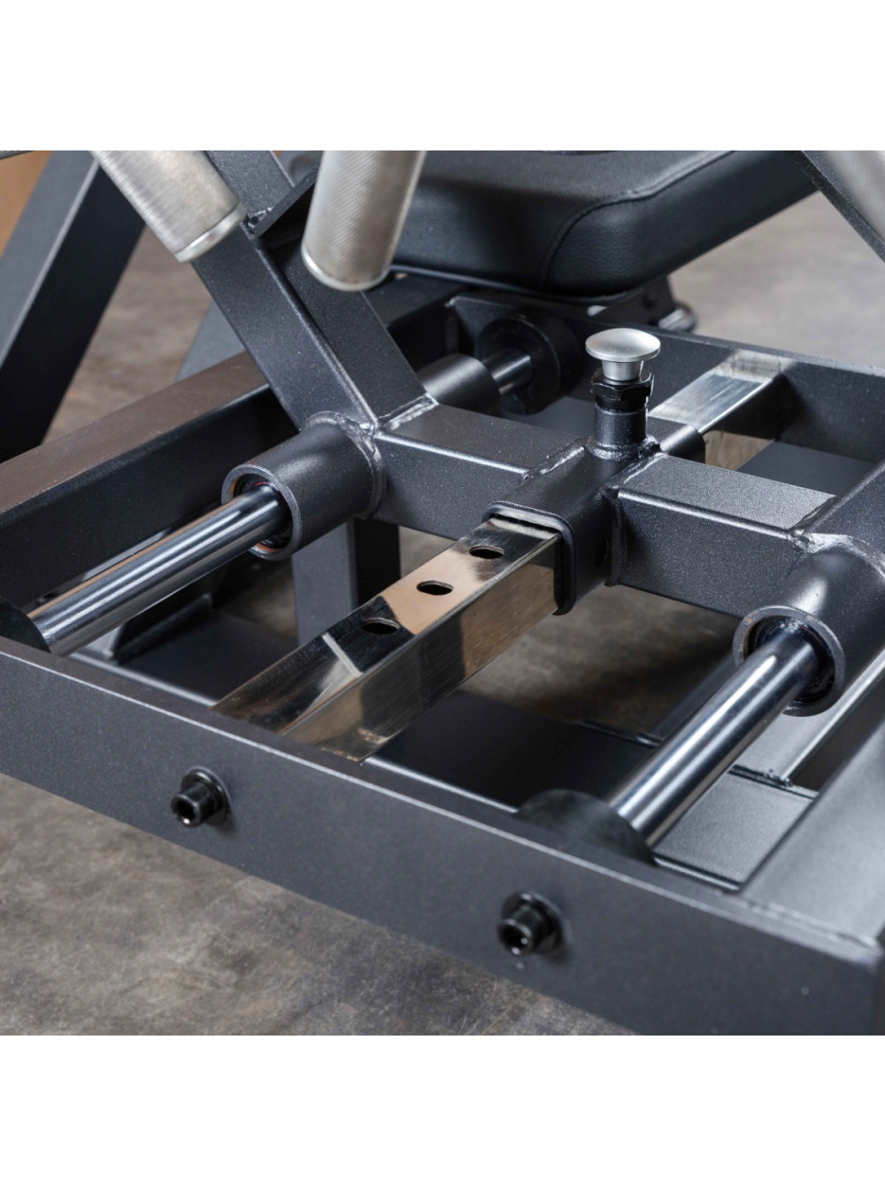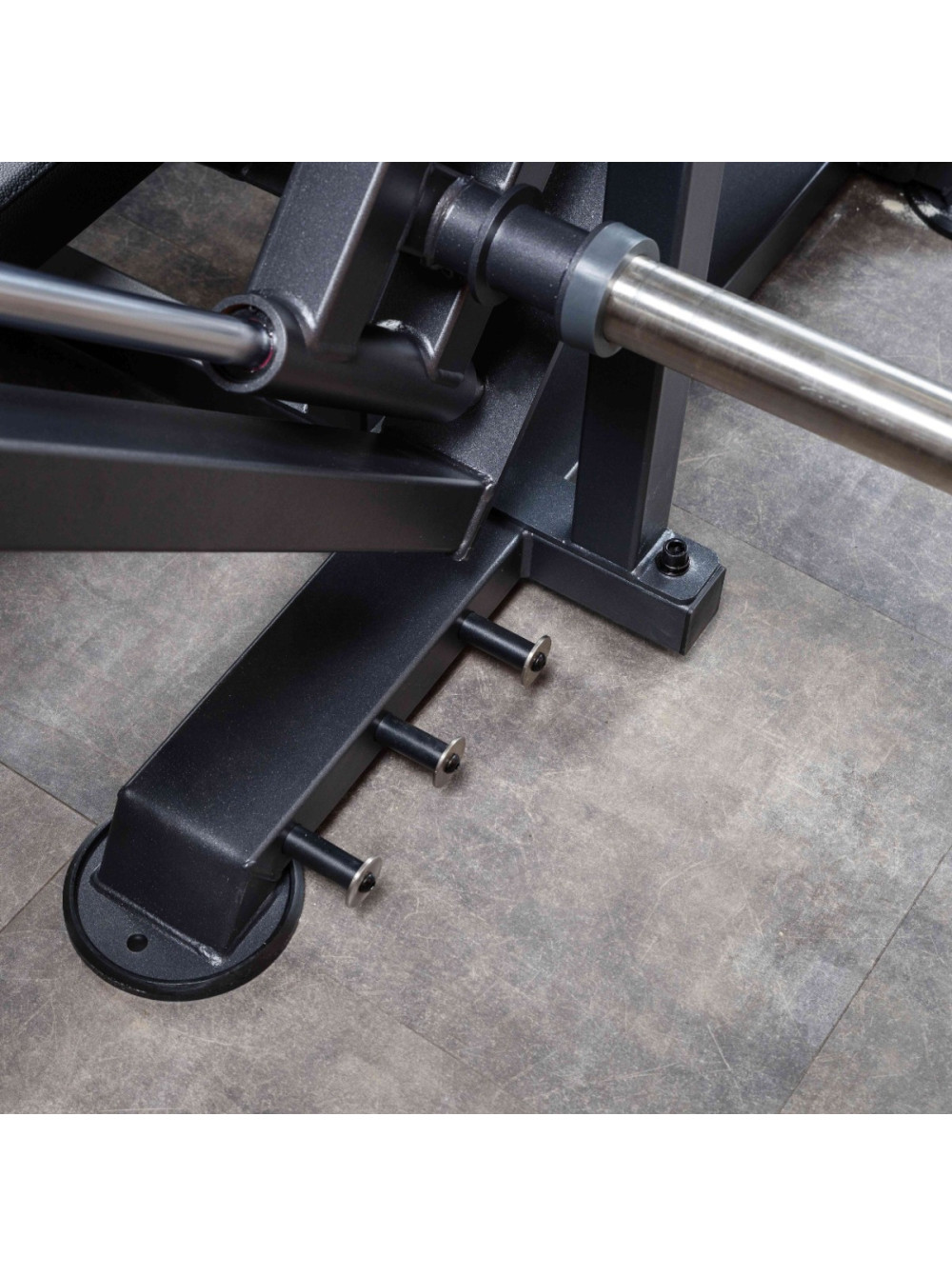 A619 Отведение ноги назад 0 отзывов 194973р. Оптовая цена: 155978р. для покупки по оптовой цене свяжитесь с нами по телефону Производитель: DHZ Наличие: Предзаказ Модель: 59c9f697-936b-11f0-bacd-00155d019509 Одежда Обувь Как выбрать одежду своего размера? Купить Купить в один клик Скидки постоянным клиентам! Гарантия качества всех товаров магазина! Описание Отзывов (0) Профессиональный тренажёр для коммерческого использования A619 Отведение ноги назад предназначен для изолированной проработки большой, средней и малой ягодичных мышц, а также задней поверхности бедра. Конструкция с регулируемым углом наклона и амплитудой движения обеспечивает точную биомеханику упражнения, вариативность нагрузки и высокий уровень комфорта. Основание тренажёра выполнено из стального прямоугольного профиля 100?50 мм с толщиной стенки 3 мм. В конструкции также применены элементы из профильной трубы 80?50 мм и 50?50 мм толщиной 3 мм. Все детали изготавливаются на высокоточном лазерном оборудовании с ЧПУ, что обеспечивает точную геометрию и стабильность конструкции. Несущие узлы соединены методом роботизированной сварки, исключающим перекосы и повышающим эксплуатационную надёжность. На металлические элементы после антикоррозийной обработки нанесено двухслойное порошковое напыление в электростатическом поле для обеспечения прочности покрытия и устойчивости к истиранию. Цветовое исполнение: графит (возможна индивидуальная окраска под проект). Нагрузка: свободные веса. В правой части конструкции расположена рама, внутри которой установлены две направляющие из нержавеющей стали длиной 1180 мм. По ним перемещается подвижный рычаг, обеспечивая плавность и стабильность движения. На одном конце рычага установлен накопитель для свободных весов длиной 270 мм и диаметром 45 мм, рассчитанный на диски с посадочным отверстием 50 мм. На торце накопителя установлена пластиковая заглушка. В основании накопителя предусмотрен демпфер для защиты покрытия рамы от механических повреждений и амортизации при установке весов. Противоположный конец рычага оснащён рабочим упором (рычагом толкания) из круглой стальной трубы длиной 510 мм и диаметром 75 мм. Элемент покрыт порошковой краской и регулируется по дугообразной траектории в шести фиксированных положениях при помощи механического фиксатора. Направляющая рама, по которой движется рычаг, регулируется по углу наклона в трёх положениях при помощи механического фиксатора с системой газлифт. Газлифт облегчает подъём узла и обеспечивает плавную смену положения. Угол наклона регулируется от почти вертикального (для выполнения движения, аналогичного подъёму ноги вверх) до диагональных положений, имитирующих классическое движение в глют-машине. В верхней части рамы установлен демпфер, ограничивающий ход рычага и амортизирующий в верхней точке движения. Для регулировки наклона на раме предусмотрена металлическая рукоять длиной 365 мм и диаметром 30 мм с ромбовидной накаткой для удобного хвата. В нижней части основания тренажера размещены три фиксатора для установки эспандеров, соответствующих трём положениям угла наклона. Фиксаторы выполнены из металлического стержня длиной 100 мм с торцевой упорной пластиной, предотвращающей соскальзывание эспандеров при растяжении. Рабочая зона тренажёра состоит из двух горизонтальных прямоугольных