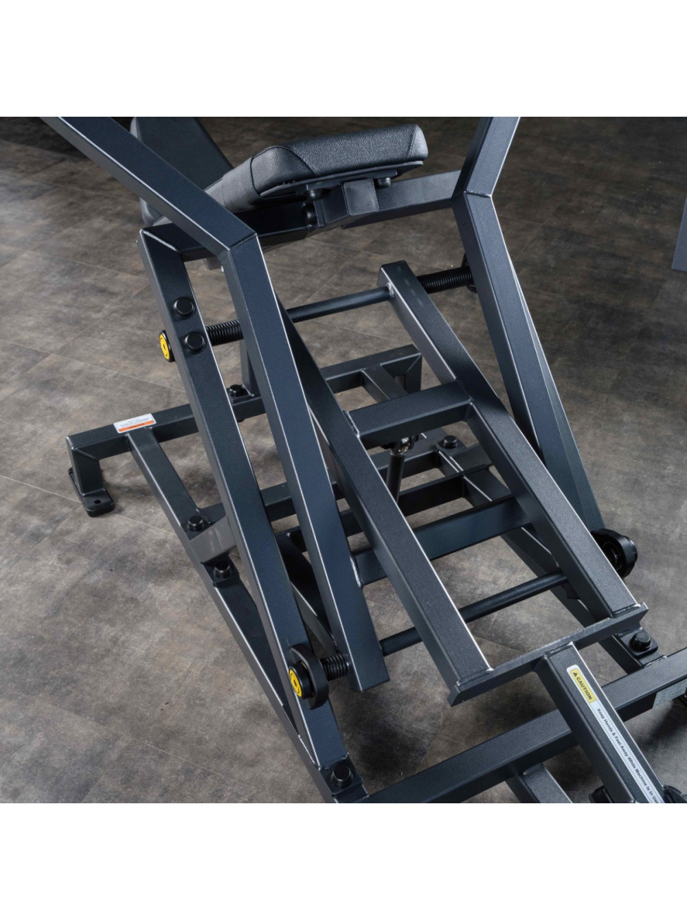 A703L Жим от плеч 0 отзывов 162245р. Оптовая цена: 129796р. для покупки по оптовой цене свяжитесь с нами по телефону Производитель: DHZ Наличие: Предзаказ Модель: 59c9f68f-936b-11f0-bacd-00155d019509 Одежда Обувь Как выбрать одежду своего размера? Купить Купить в один клик Скидки постоянным клиентам! Гарантия качества всех товаров магазина! Описание Отзывов (0) Профессиональный тренажёр для коммерческого использования A703L Жим от плеч предназначен для изолированной проработки дельтовидных мышц, трицепсов и верхнего отдела грудных мышц. Конструкция с зависимыми рычагами обеспечивает согласованную работу обеих рук, стабильную нагрузку и равномерное сопротивление по всей амплитуде движения. Основание выполнено из стального прямоугольного профиля 50?50 мм с толщиной стенки 3 мм. Все детали производятся на высокоточном лазерном оборудовании с ЧПУ, что гарантирует точную геометрию и стабильность конструкции. Несущие узлы соединены методом роботизированной сварки, обеспечивающим высокую прочность швов, точность сопряжений и длительный срок службы при интенсивной эксплуатации. На металлические элементы после антикоррозийной обработки нанесено двухслойное порошковое напыление в электростатическом поле, обеспечивающее надёжное сцепление покрытия и устойчивость к истиранию. Цветовое исполнение: графит (возможна индивидуальная окраска под проект). Нагрузка: свободные веса. Механизм движения реализован через систему тяг с шаровыми шарнирами, обеспечивающих точную передачу усилия, плавный ход и стабильную работу всех узлов на протяжении всей амплитуды движения. Такая конструкция исключает перекосы, снижает трение и повышает долговечность. Рычажная система имеет общую ось, обеспечивая согласованное движение обеих сторон и равномерное распределение нагрузки. На рычагах установлены два цельнолитых накопителя под свободные веса длиной 260 мм и диаметром 45 мм, рассчитанных на диски с посадочным отверстием 50 мм. Демпферы толщиной 20 мм в основании накопителей предотвращают прямой контакт дисков с металлом, снижая ударные нагрузки и продлевая срок службы покрытия. В местах контакта рычагов с рамой предусмотрены дополнительные демпферы толщиной 30 мм для защиты покрытия и компенсации ударных нагрузок. На осях рычагов установлены гофрированные пластиковые пыльники, предотвращающие загрязнение и продлевающие срок службы подвижных узлов. Спинка прямоугольной формы длиной 830 мм и шириной 250 мм установлена под оптимальным углом, обеспечивающим естественную биомеханику жима и поддержку позвоночника. Поверхность обтянута износостойкой искусственной кожей, на центральной части размещена декоративная накладка с вышивкой логотипа FLEX. Сиденье эргономичной трапециевидной формы (ширина от 240 до 140 мм к свободному краю, длина 310 мм) регулируется в 10 положениях при помощи полуавтоматического фиксатора, что позволяет точно настроить положение спортсмена относительно рычагов. Рукояти изготовлены из стального прутка диаметром 35 мм, рабочая зона длиной 165 мм оснащена ромбовидной накаткой для надёжного и безопасного хвата. Торцы рукоятей оборудованы металлическими заглушками с болтовой фиксацией, исключающими люфт и ослабление при эксплуатации. Прямоугольные подпятники из износостойкой резины имеют металлическое основание и отверстия для фиксации к полу. Т