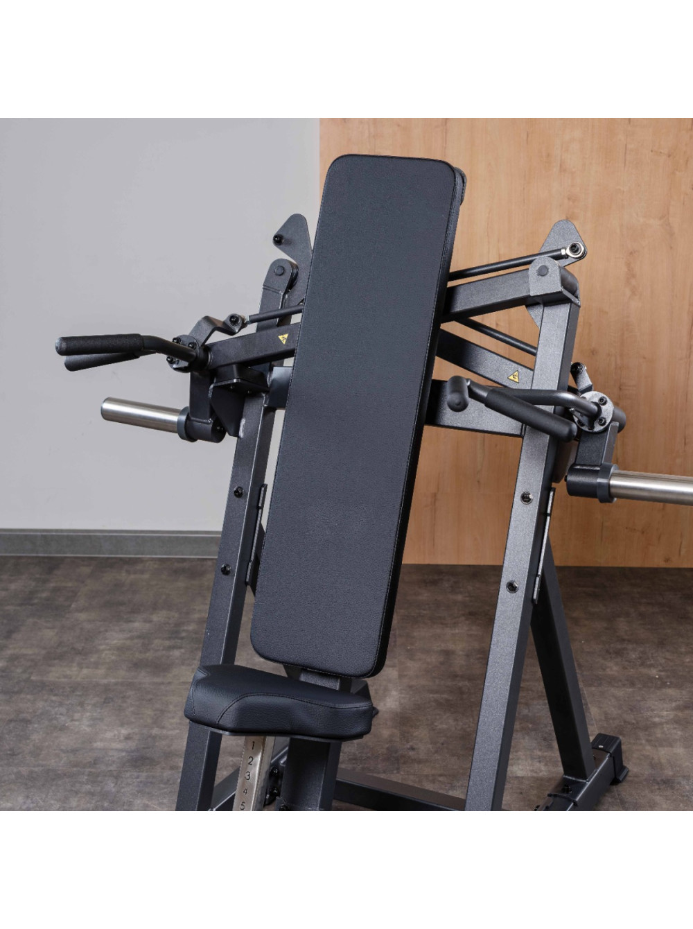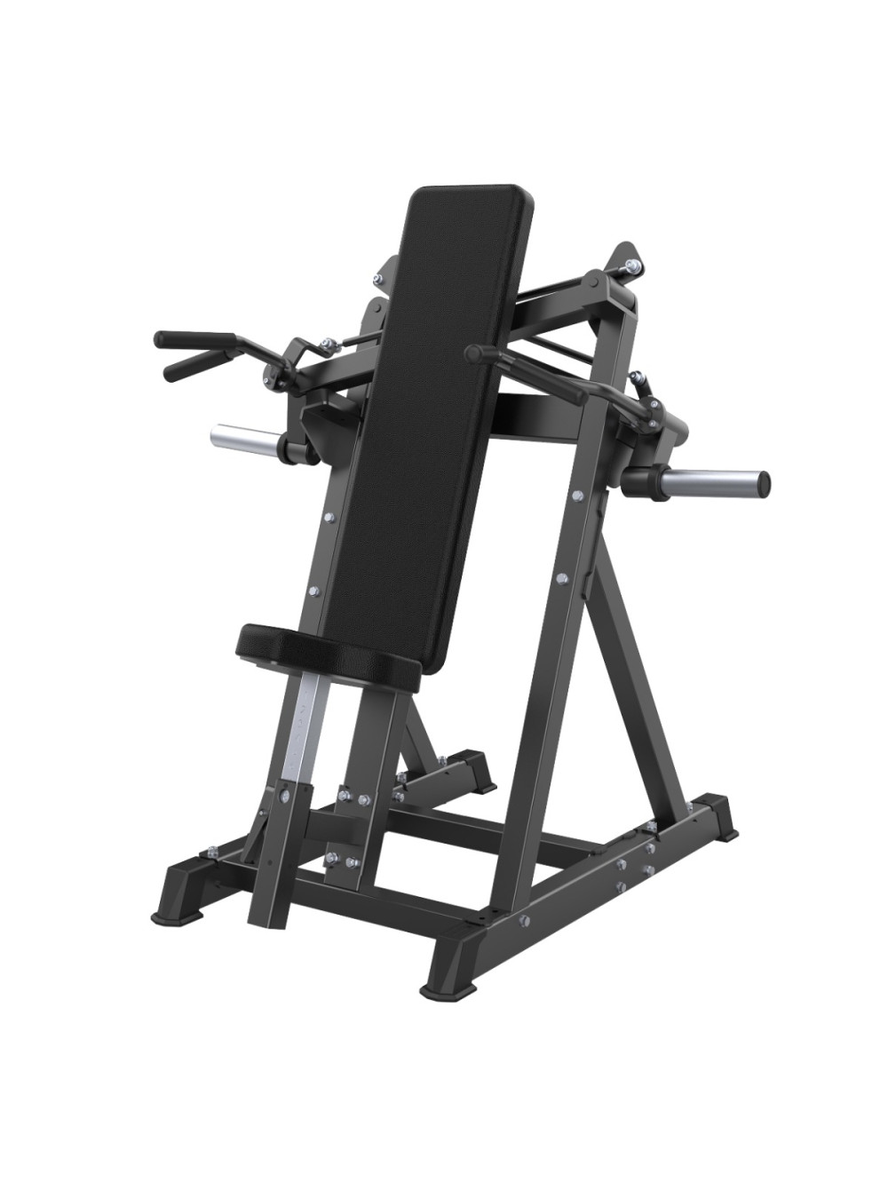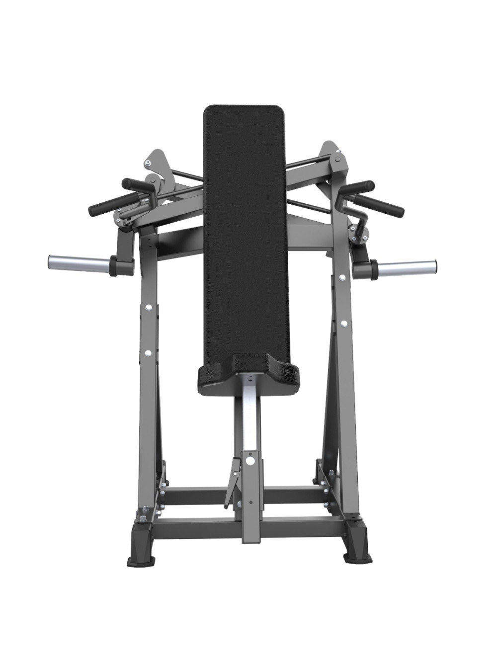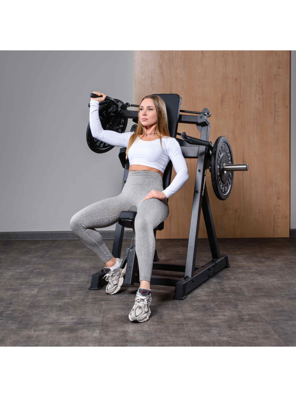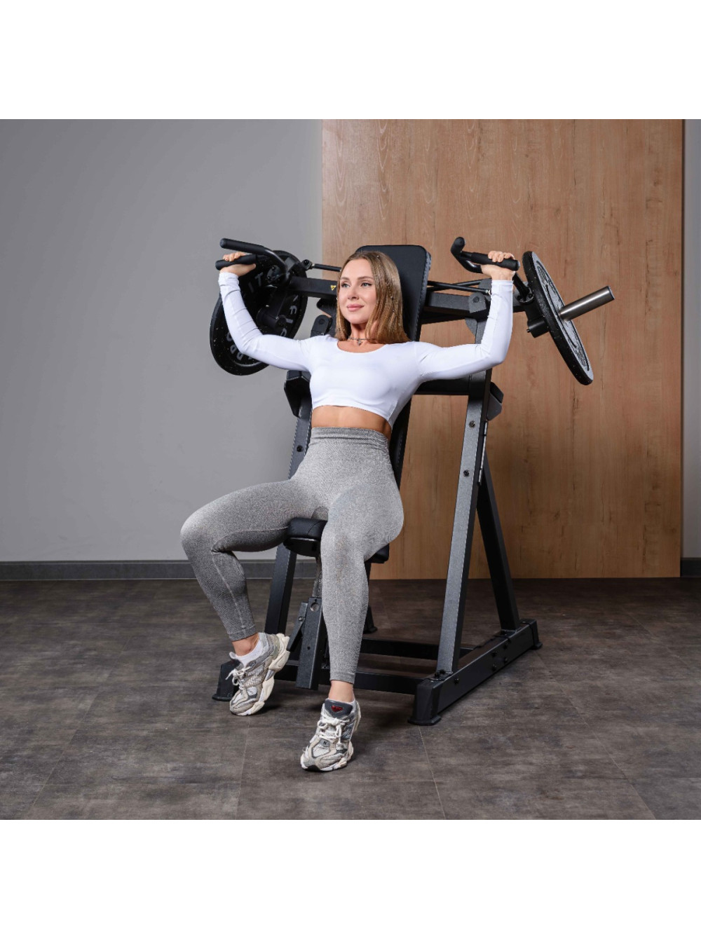 A804 Жим от плеч X-Cross 0 отзывов 107500р. Оптовая цена: 86000р. для покупки по оптовой цене свяжитесь с нами по телефону Производитель: DHZ Наличие: Предзаказ Модель: 6f55d948-bac7-11f0-bacf-00155d019509 Одежда Обувь Как выбрать одежду своего размера? Купить Купить в один клик Скидки постоянным клиентам! Гарантия качества всех товаров магазина! Описание Отзывов (0) Профессиональный тренажёр для коммерческого использования A804 Жим от плеч X-Cross предназначен для изолированной и акцентированной проработки дельтовидных мышц с вовлечением трицепсов. Конструкция с перекрёстной кинематикой рычагов обеспечивает естественную траекторию движения, стабильную нагрузку и равномерное распределение усилия на протяжении всей амплитуды. Основание тренажёра выполнено из стального профиля 80?50?3 мм. Все элементы изготавливаются на высокоточном оборудовании с ЧПУ, что обеспечивает точную геометрию и стабильность конструкции. Несущие узлы соединены методом роботизированной сварки, исключающим перекосы и повышающим эксплуатационную надёжность. На металлические элементы после антикоррозийной обработки нанесено двухслойное порошковое напыление в электростатическом поле для обеспечения прочности покрытия и устойчивости к истиранию. Цветовое исполнение: графит (возможна индивидуальная окраска под проект). Нагрузка: свободные веса. Подвижная система рычагов выполнена по схеме X-Cross – рычаги перекрещиваются в рабочей зоне, формируя сходящуюся траекторию движения, близкую к естественной биомеханике жима вверх. Рычаги независимые, что позволяет выполнять упражнение с симметричной нагрузкой либо прорабатывать каждую сторону отдельно, компенсируя мышечные дисбалансы. Механизм движения реализован через систему тяг и подшипниковых узлов, обеспечивающих плавный ход, точную передачу усилия и стабильную работу конструкции при динамических нагрузках. На подвижных рычагах установлены накопители под свободные веса, рассчитанные на диски с посадочным диаметром 50 мм. В местах сопряжения накопителей с рамой предусмотрены демпферы для защиты покрытия и снижения ударных нагрузок. Рукояти для двух хватов расположены под анатомически выверенным углом и обеспечивают естественное положение кистей при выполнении жима. Конструкция рукоятей способствует снижению нагрузки на плечевые суставы и улучшению контроля движения. Рукояти выполнены из стального прутка с противоскользящим покрытием. Спинка удлинённой формы обеспечивает стабильную опору спины и контроль положения корпуса во время выполнения упражнения. Сиденье регулируется по высоте при помощи полуавтоматического фиксатора, что позволяет адаптировать тренажёр под рост и антропометрию пользователя. Конструкция сиденья и спинки обеспечивает устойчивую посадку и правильное положение позвоночника при работе с весом. Все мягкие элементы выполнены из вспененного полиуретана оптимальной плотности, устойчивого к деформации при длительной эксплуатации. Обивка изготовлена из износостойкой искусственной кожи, устойчивой к истиранию и влаге. Цвет обивки: чёрный (возможна индивидуальная окраска под проект, как и цвет металлических элементов). Опорные элементы тренажёра оснащены подпятниками, обеспечивающими устойчивость оборудования и защиту напольного покрытия от повреждений. Конструкция тренажёра рассчитан