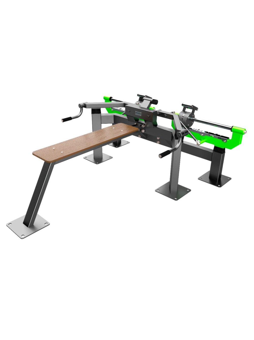 F-2802 Уличный тренажер Баттерфляй вверх с переменной нагрузкой ZAVODSPORTA 0 отзывов 297180р. Оптовая цена: 237744р. для покупки по оптовой цене свяжитесь с нами по телефону Производитель: ZSO Наличие: Предзаказ Модель: ef8176a4-b43d-11ee-bab0-00155d019500 Одежда Обувь Как выбрать одежду своего размера? Купить Купить в один клик Скидки постоянным клиентам! Гарантия качества всех товаров магазина! Описание Отзывов (0) Уличный тренажер Баттерфляй с переменной нагрузкой ZAVODSPORTA* предназначен для установки на уличных спортивных площадках с учетом интенсивной эксплуатации в разных климатических условиях. Тренажёры серии Force спроектированы по образцу профессионального оборудования для залов, с учётом антропометрических данных пользователей и биомеханики движений, обеспечивая комфортное и физиологичное выполнение упражнений. Несущая конструкция уличного тренажера выполнена из профильных труб 120?80 мм и 100?50 мм с толщиной стенки 3 мм. Детали изготовлены из листового металла толщиной 8 мм, 5 мм и 3 мм. Основание закладной (гильза) выполнено из трубы 80?80?3 мм с цокольной опорой крепления из листового металла толщиной 8 мм и 6 мм. Фланцевое соединение для монтажа тренажера выполнено из листового металла 300?300 мм с толщиной 8 мм, имеет 4 овальных отверстия для регулировки тренажера под болтовое крепление М16. Резьбовые соединения защищены составными металлическими колпачками, входящими в комплект поставки. Подвижные рычаги изготовлены из профильной трубы 100?50 мм и 60?60 мм с толщиной стенки 3 мм. Детали изготовлены из листового металла толщиной 8 мм, 6 мм, 5 мм и 3 мм. Подвижные рычаги оснащены передвижными грузовыми блоками, изготовленными из листового металла толщиной 8 мм. Перемещение грузовых блоков осуществляется с использованием подшипников при помощи парных рукоятей длиной 120 мм из металлического прутка с мягкой накаткой. Направляющие для перемещения грузовых блоков изготовлены из нержавеющей стальной трубы диаметром 40 мм, что обеспечивает устойчивость к коррозии, высокую износостойкость и стабильность хода подвижных элементов в условиях эксплуатации при темперных перепадах и метеорологических явлениях. Стартовый вес на один подвижный рычаг 17 кг с шагом 1,2 кг. Плавное ступенчатое увеличение нагрузки доступно в 7 положениях. Общий стартовый вес на два рычага 34 кг, максимальный - 52 кг. Маркировка уровней нагрузки выполнена методом лазерной резки по листовому металлу на оборудовании с ЧПУ, что обеспечивает высокую точность, стойкость и долговечность в условиях уличной эксплуатации. Соприкасающиеся элементы оборудованы резиновыми отбойниками для защиты рамы от механических повреждений и амортизации при завершении подхода. Рукояти выполнены из стальной трубы диаметром 33 мм с толщиной стенки 3,2 мм. Места хвата оборудованы резиновым покрытием длиной 130 мм с рифлением. Металлические элементы покрыты цинкосодержащим грунтом, формирующим антикоррозийный слой в результате химической реакции компонентов грунта с металлом, и порошковой краской с шагреневой фактурой, запечённой в печи полимеризации. Шагреневое покрытие повышает устойчивость поверхности к механическим повреждениям и маскирует следы эксплуатации. Поверхности деталей с контактными или ударными зонами дополнительно защищены методом горячего цинкования, обеспечивающим долговременную стойкость к аг