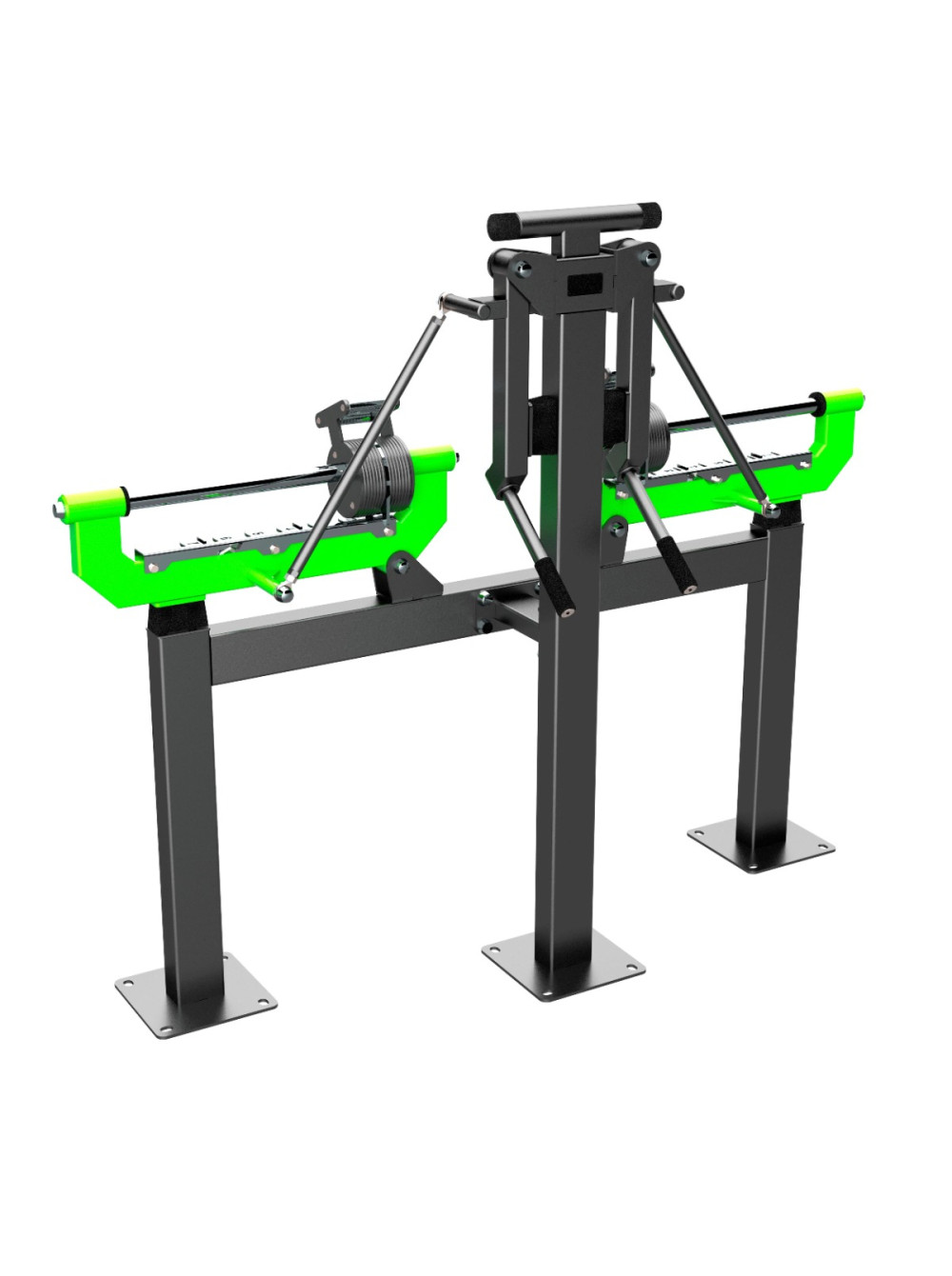F-2805 Уличный тренажер Дельт-машина с переменной нагрузкой ZAVODSPORTA 0 отзывов 220740р. Оптовая цена: 176592р. для покупки по оптовой цене свяжитесь с нами по телефону Производитель: ZSO Наличие: Предзаказ Модель: 6a269eb7-ae93-11ee-baaf-00155d019500 Одежда Обувь Как выбрать одежду своего размера? Купить Купить в один клик Скидки постоянным клиентам! Гарантия качества всех товаров магазина! Описание Отзывов (0) Уличный тренажер Дельт-машина с переменной нагрузкой ZAVODSPORTA* предназначен для установки на уличных спортивных площадках с учетом интенсивной эксплуатации в разных климатических условиях. Тренажёры серии Force спроектированы по образцу профессионального оборудования для залов, с учётом антропометрических данных пользователей и биомеханики движений, обеспечивая комфортное и физиологичное выполнение упражнений. Несущая конструкция уличного тренажера выполнена из профильных труб 120?80 мм и 100?50 мм с толщиной стенки 3 мм. Детали изготовлены из листового металла толщиной 8 мм, 5 мм и 3 мм. Основание закладной (гильза) выполнено из трубы 80?80?3 мм с цокольной опорой крепления из листового металла толщиной 8 мм и 6 мм. Фланцевое соединение для монтажа тренажера выполнено из листового металла 300?300 мм с толщиной 8 мм, имеет 4 овальных отверстия для регулировки тренажера под болтовое крепление М16. Резьбовые соединения защищены составными металлическими колпачками, входящими в комплект поставки. Подвижные рычаги изготовлены из профильной трубы 100?50 мм и 60?60 мм с толщиной стенки 2 мм. Детали изготовлены из листового металла толщиной 8 мм, 6 мм, 5 мм, 3 мм. Подвижные рычаги оснащены передвижными грузовыми блоками, изготовленными из листового металла толщиной 8 мм. Перемещение грузовых блоков осуществляется с использованием подшипников при помощи парных рукоятей длиной 120 мм из металлического прутка с мягкой накаткой. Направляющие для перемещения грузовых блоков изготовлены из нержавеющей стальной трубы диаметром 40 мм, что обеспечивает устойчивость к коррозии, высокую износостойкость и стабильность хода подвижных элементов в условиях эксплуатации при темперных перепадах и метеорологических явлениях. Маркировка уровней нагрузки выполнена методом лазерной резки по листовому металлу на оборудовании с ЧПУ, что обеспечивает высокую точность, стойкость и долговечность в условиях уличной эксплуатации. Соприкасающиеся элементы оборудованы резиновыми отбойниками для защиты рамы от механических повреждений и амортизации при завершении подхода. Рукояти выполнены из стальной трубы диаметром 33 мм с толщиной стенки 3,2 мм. Места хвата оборудованы резиновым покрытием длиной 130 мм с рифлением. Металлические элементы покрыты цинкосодержащим грунтом, формирующим антикоррозийный слой в результате химической реакции компонентов грунта с металлом, и порошковой краской с шагреневой фактурой, запечённой в печи полимеризации. Шагреневое покрытие повышает устойчивость поверхности к механическим повреждениям и маскирует следы эксплуатации. Поверхности деталей с контактными или ударными зонами дополнительно защищены методом горячего цинкования, обеспечивающим долговременную стойкость к агрессивному воздействию внешней среды. Надёжность и прочность разъёмных соединений конструктивных элементов тренажёра обеспечиваются за счёт использования высококачественного оци
