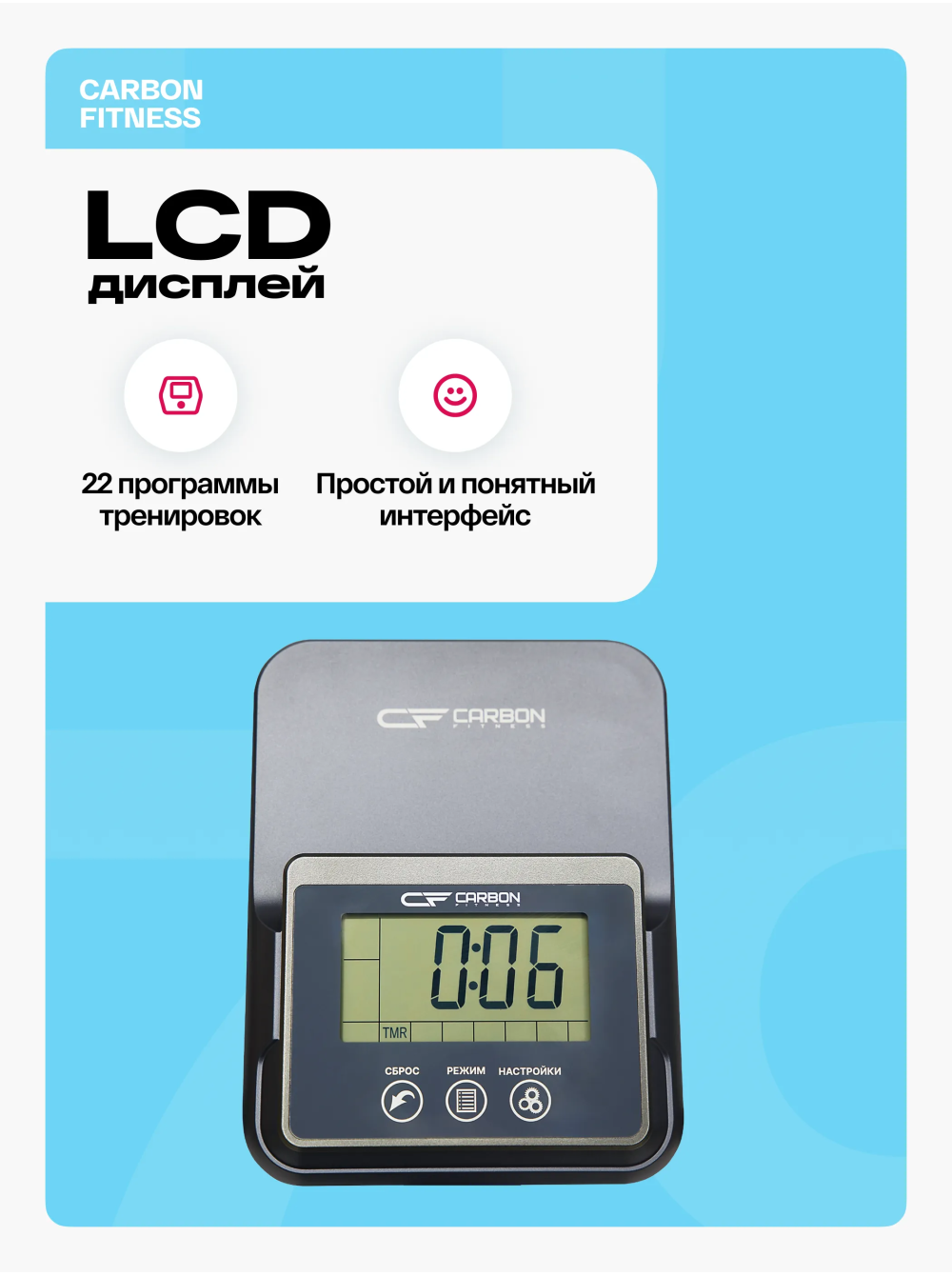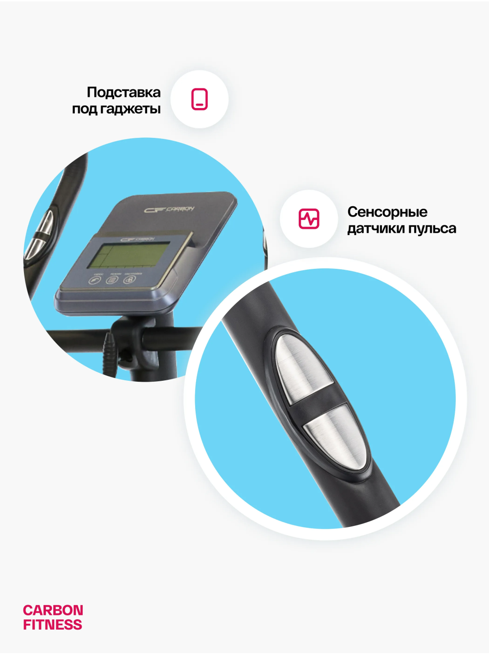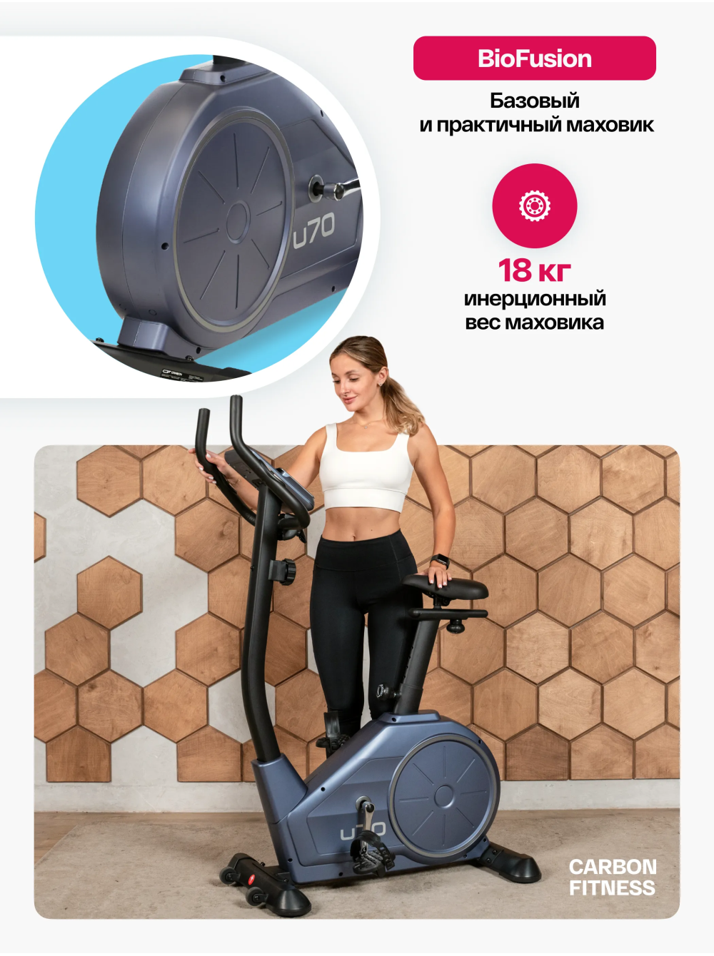 Велотренажер домашний CARBON FITNESS U70 0 отзывов 29990р. Производитель: CARBON Наличие: Есть в наличии Модель: U70 Одежда Обувь Как выбрать одежду своего размера? Купить Купить в один клик Скидки постоянным клиентам! Гарантия качества всех товаров магазина! Описание Отзывов (0) Велотренажер CARBON FITNESS U70 — это идеальный выбор для тех, кто стремится поддерживать форму, не выходя из дома. Высокопрочная рама с антикоррозийной обработкой и механическая магнитная система нагрузки делают его надёжным и долговечным, обеспечивая комфортную и плавную работу на всех 8 уровнях сопротивления. С маховиком BioFusion™ весом 18 кг и задним приводом тренажер обеспечивает устойчивое движение, снижая нагрузку на суставы и повышая эффективность тренировок. Комфортабельное сиденье анатомической формы регулируется как по горизонтали, так и по вертикали, что позволяет настроить его под индивидуальные параметры пользователя, обеспечивая удобную посадку. Сенсорные датчики на поручнях позволяют контролировать пульс, что важно для поддержания нужного уровня нагрузки в зависимости от целей тренировки. LCD-дисплей консоли на русском и английском языках отображает основные параметры тренировки время, скорость, дистанцию, количество оборотов и пульс. Функция одометра и подставка для планшета или смартфона позволяют отслеживать прогресс и оставаться на связи и смотреть любимые видео. CARBON FITNESS U70 поддерживает пользователей до 140 кг, что делает его доступным для всех членов семьи. Прорезиненные педали с регулируемыми ремешками обеспечивают дополнительную безопасность, а транспортировочные ролики позволяют легко перемещать тренажер по дому. Этот компактный велотренажер — надежный выбор для домашних тренировок, обеспечивающий полный контроль над нагрузкой и комфортное использование для достижения спортивных целей. Ключевые преимущества CARBON FITNESS U70: • магнитная система нагружения с 8 уровнями нагрузки; • маховик BioFusion с инерционным весом 18 кг; • максимальный вес пользователя до 140 кг; • компактные габариты: 90*52,5*142 см. Бренд Carbon Fitness Артикул U70 Назначение домашнее Тип тренажера велотренажер вертикальный, Посадка вертикальная Система нагружения магнитная Количество уровней нагрузки 8 Регулировка нагрузки механическая Инерционный вес маховика, кг 18, BioFusion™ Тип педального узла трехкомпонентный шатун Сиденье комфортабельное, анатомической формы Регулировка положения сиденья по горизонтали и вертикали Рукоятки стандартные с оплеткой из пенорезины Измерение пульса есть Консоль LCD Тип консоли LCD дисплей монохромный Показания консоли время, скорость, дистанция, калории, пульс, обороты в минуту, одометр Общее количество программ ручной режим Спецификация программ быстрый старт, ручной режим Язык интерфейса русский, английский Подставка под планшет/смартфон Да Транспортировочные ролики Да Компенсаторы неровностей пола Да Дополнительные функции сенсорные датчики на поручнях Вес нетто, кг 30 Вес брутто, кг 33 Максимальный вес пользователя 140 Подключение к сети не требует подключения, Производитель Fitathlon Group (подразделение в Германии) Страна изготовления КНР Гарантийный срок мес. ? 12 мес. Размеры: Размер в рабочем состоянии, см. 91х52.5x141 Размеры упаковки, см. 97.5х63x25.5 Написать отзыв Ваше имя: Ваш отзыв: Примечание: HTML разметка не поддерживается! Используйте обычный текст. Оцен