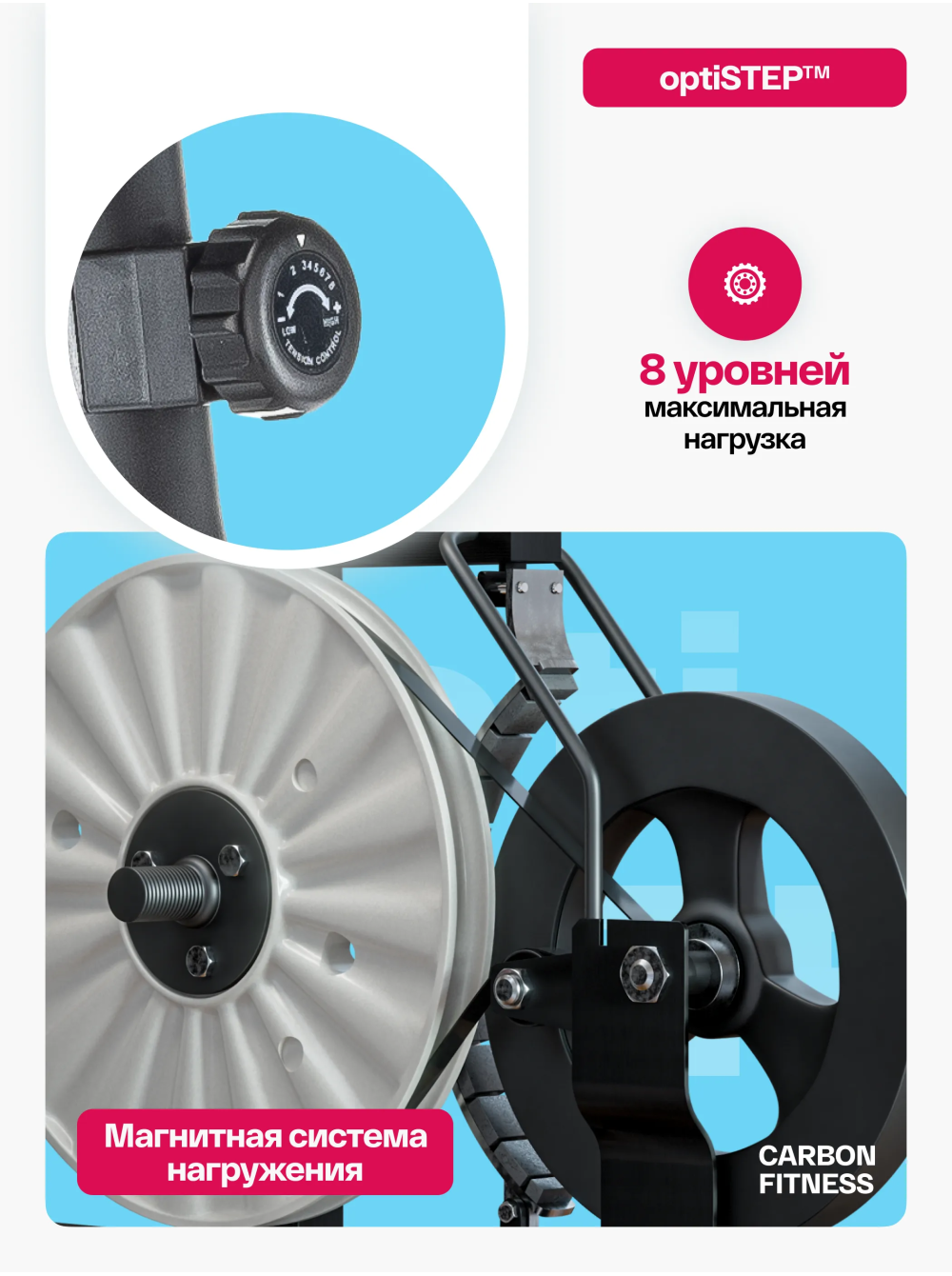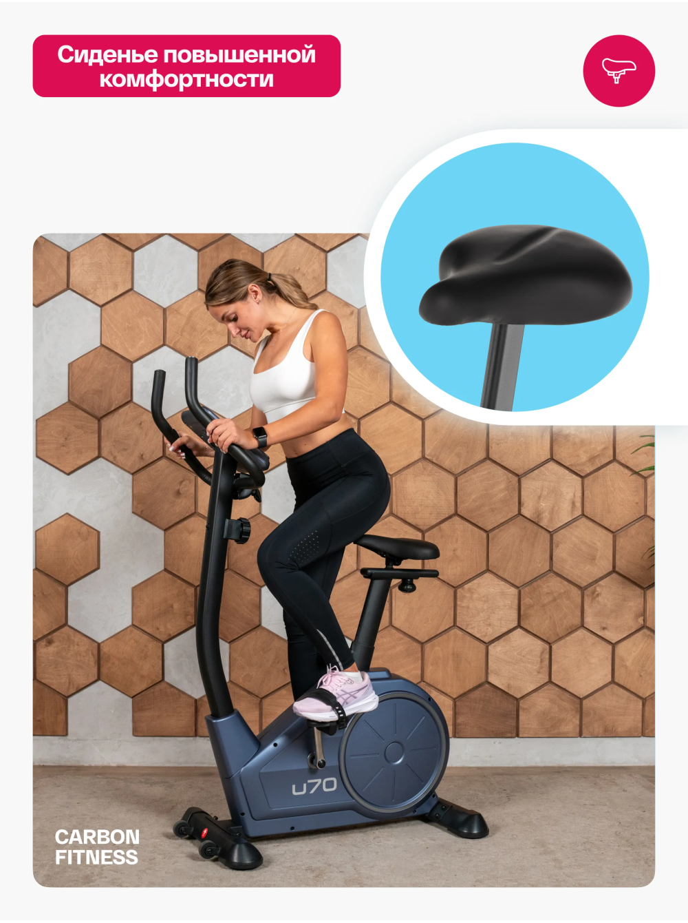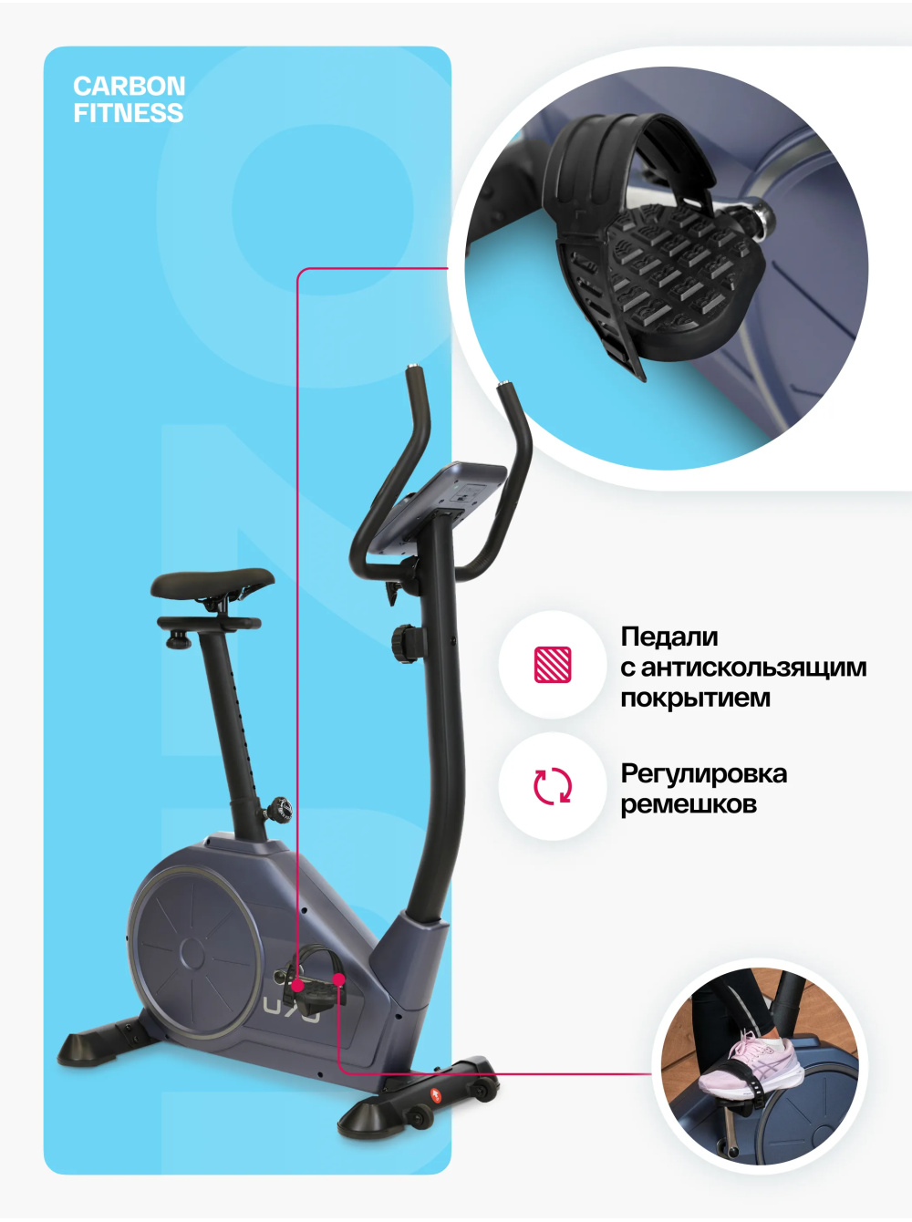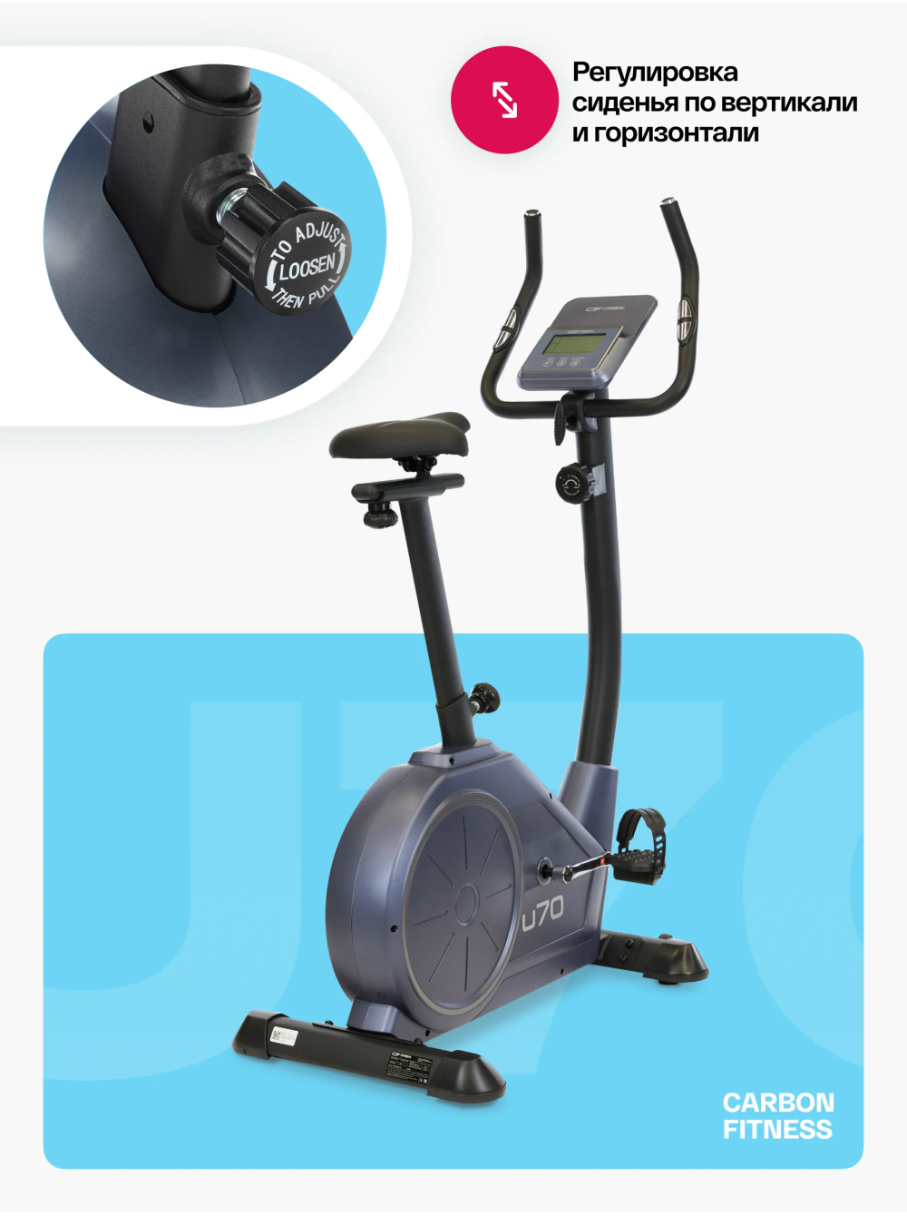 Велотренажер домашний CARBON FITNESS U70 0 отзывов 29990р. Производитель: CARBON Наличие: Есть в наличии Модель: U70 Одежда Обувь Как выбрать одежду своего размера? Купить Купить в один клик Скидки постоянным клиентам! Гарантия качества всех товаров магазина! Описание Отзывов (0) Велотренажер CARBON FITNESS U70 — это идеальный выбор для тех, кто стремится поддерживать форму, не выходя из дома. Высокопрочная рама с антикоррозийной обработкой и механическая магнитная система нагрузки делают его надёжным и долговечным, обеспечивая комфортную и плавную работу на всех 8 уровнях сопротивления. С маховиком BioFusion™ весом 18 кг и задним приводом тренажер обеспечивает устойчивое движение, снижая нагрузку на суставы и повышая эффективность тренировок. Комфортабельное сиденье анатомической формы регулируется как по горизонтали, так и по вертикали, что позволяет настроить его под индивидуальные параметры пользователя, обеспечивая удобную посадку. Сенсорные датчики на поручнях позволяют контролировать пульс, что важно для поддержания нужного уровня нагрузки в зависимости от целей тренировки. LCD-дисплей консоли на русском и английском языках отображает основные параметры тренировки время, скорость, дистанцию, количество оборотов и пульс. Функция одометра и подставка для планшета или смартфона позволяют отслеживать прогресс и оставаться на связи и смотреть любимые видео. CARBON FITNESS U70 поддерживает пользователей до 140 кг, что делает его доступным для всех членов семьи. Прорезиненные педали с регулируемыми ремешками обеспечивают дополнительную безопасность, а транспортировочные ролики позволяют легко перемещать тренажер по дому. Этот компактный велотренажер — надежный выбор для домашних тренировок, обеспечивающий полный контроль над нагрузкой и комфортное использование для достижения спортивных целей. Ключевые преимущества CARBON FITNESS U70: • магнитная система нагружения с 8 уровнями нагрузки; • маховик BioFusion с инерционным весом 18 кг; • максимальный вес пользователя до 140 кг; • компактные габариты: 90*52,5*142 см. Бренд Carbon Fitness Артикул U70 Назначение домашнее Тип тренажера велотренажер вертикальный, Посадка вертикальная Система нагружения магнитная Количество уровней нагрузки 8 Регулировка нагрузки механическая Инерционный вес маховика, кг 18, BioFusion™ Тип педального узла трехкомпонентный шатун Сиденье комфортабельное, анатомической формы Регулировка положения сиденья по горизонтали и вертикали Рукоятки стандартные с оплеткой из пенорезины Измерение пульса есть Консоль LCD Тип консоли LCD дисплей монохромный Показания консоли время, скорость, дистанция, калории, пульс, обороты в минуту, одометр Общее количество программ ручной режим Спецификация программ быстрый старт, ручной режим Язык интерфейса русский, английский Подставка под планшет/смартфон Да Транспортировочные ролики Да Компенсаторы неровностей пола Да Дополнительные функции сенсорные датчики на поручнях Вес нетто, кг 30 Вес брутто, кг 33 Максимальный вес пользователя 140 Подключение к сети не требует подключения, Производитель Fitathlon Group (подразделение в Германии) Страна изготовления КНР Гарантийный срок мес. ? 12 мес. Размеры: Размер в рабочем состоянии, см. 91х52.5x141 Размеры упаковки, см. 97.5х63x25.5 Написать отзыв Ваше имя: Ваш отзыв: Примечание: HTML разметка не поддерживается! Используйте обычный текст. Оцен