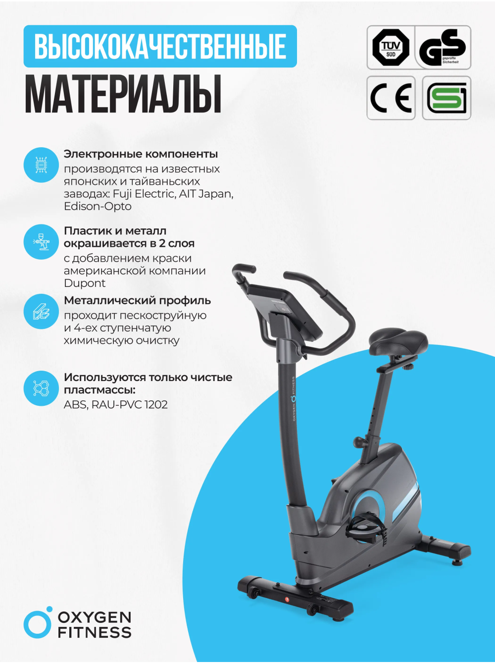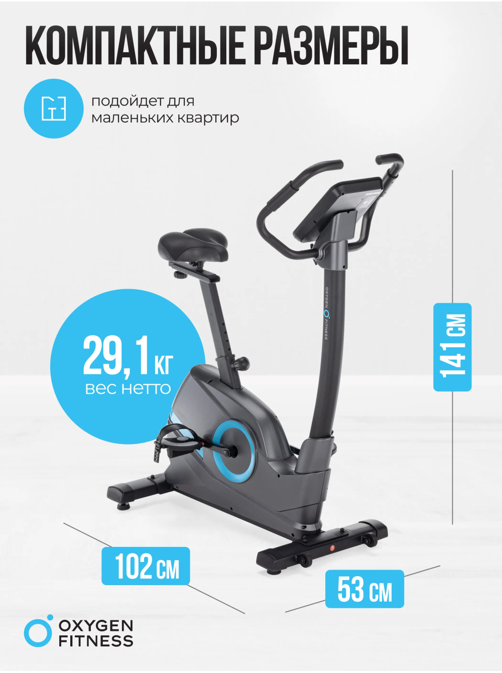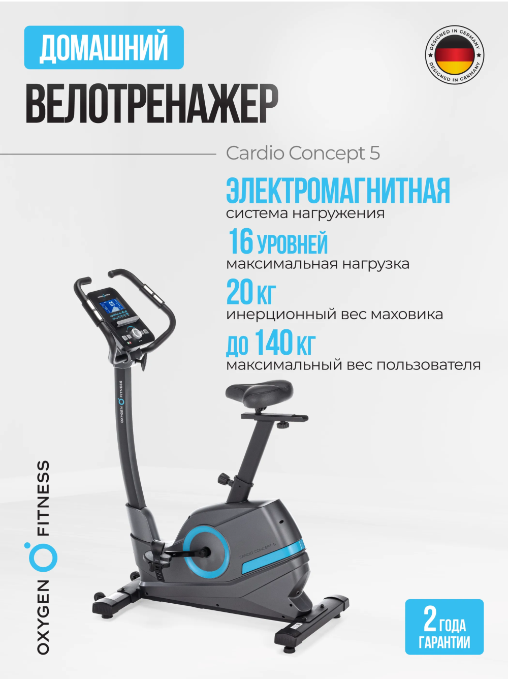 Велотренажер домашний OXYGEN FITNESS CARDIO CONCEPT 5 0 отзывов 39990р. Производитель: OXYGEN Наличие: Есть в наличии Модель: CARDIO_CONCEPT_5 Документы (инструкции): mpdf.php?url=%2Fcatalog%2Fvelotrenazhery%2Fvelotrenazher-domashniy-oxygen-fitness-cardio-concept-5%2F&pdfversion=1&name_file=velotrenazher-domashniy-oxygen-fitness-cardio-concept-5 Одежда Обувь Как выбрать одежду своего размера? Купить Купить в один клик Скидки постоянным клиентам! Гарантия качества всех товаров магазина! Описание Отзывов (0) Документы Особенности:РЕГУЛИРОВКА УГЛА НАКЛОНА РУЛЯ АНТИСКОЛЬЗЯЩИЕ ПЕДАЛИ С ФИКСАТОРАМИ РЕГУЛИРОВКА ПОЛОЖЕНИЯ РУЛЯ ПО ВЫСОТЕ РЕГУЛИРОВКА СИДЕНЬЯ В ДВУХ ПЛОСКОСТЯХ СИДЕНЬЕ АНАТОМИЧЕСКОЙ ФОРМЫСЕНСОРНЫЕ ДАТЧИКИ ПУЛЬСА ТРАНСПОРТИРОВОЧНЫЕ РОЛИКИ КОМПЕНСАТОРЫ НЕРОВНОСТЕЙ ПОЛА НОВЫЙ СТИЛЬНЫЙ ДИЗАЙН БрендOxygen FitnessАртикулCARDIO_CONCEPT_5Назначение домашнееТип тренажера велотренажер вертикальныйПосадка вертикальная Система нагружения электромагнитнаяКоличество уровней нагрузки16Регулировка нагрузкиэлектроннаяИнерционный вес маховика, кг20, BioFusion™Тип педального узлатрехкомпонентный шатун Сиденьекомфортабельное, анатомической формыРегулировка положения сиденьяпо горизонтали и вертикалиРукояткистандартные с оплеткой из пенорезиныРегулировка положения руляпо горизонталиИзмерение пульсаестьСопряжение с кардиодатчикамигерцовый датчик (приобретается отдельно)Консоль LCDТип консоли LCD дисплей с белой индикациейПоказания консоливремя, скорость, дистанция, калории, пульс, нагрузка, программа, обороты в минуту, ВаттыОбщее количество программ14Спецификация программбыстрый старт, ручной режим, пользовательские, 6 предустановленных, 4 пульсозависимые, жироанализатор, восстановлениеИнтеграционные технологииBluetooth для работы с тренировочным мобильным приложением (Zwift™, Kinomap™)Язык интерфейсарусский, английскийПодставка под планшет/смартфонДаТранспортировочные роликиДаКомпенсаторы неровностей полаДаДополнительные функциисенсорные датчики на поручнях, возможность подключения кардиодатчика Bluetooth через фитнес-приложенияВес нетто, кг29.1Вес брутто, кг33.6Максимальный вес пользователя 140Подключение к сети220 ВПроизводительFitathlon Group (подразделение в Германии)Страна изготовленияКНР Велотренажер CARDIO CONCEPT 5 от OXYGEN FITNESS представляет собой надежное и эффективное оборудование для занятий фитнесом в уютной обстановке вашего дома. Электромагнитная система нагружения magicFLOW™ PLUS с 16 уровнями нагрузки позволяет вам настраивать интенсивность тренировок в соответствии с вашими потребностями. Высокопрочная рама с антикоррозийной обработкой обеспечивает долговечность и надежность тренажера. Удобное сиденье анатомической формы и регулировкой положения как по вертикали, так и по горизонтали, обеспечивает комфорт и поддержку во время тренировок. Сенсорные датчики на поручнях и встроенный телеметрический приемник для нагрудного кардиодатчика (приобретается отдельно) позволяют вам контролировать свой пульс и следить за сердечным ритмом. Синий LCD дисплей с яркой белой индикацией отображает разнообразные показания, включая время, скорость, дистанцию, калории, пульс, нагрузку, профиль программы, обороты в минуту и ВАТТы. Среди 14 программ тренировок вы найдете быстрый старт, ручной режим, пользовательские программы, предустановленные программы, пульсозависимые программы, жироанализатор и программу восстановления. Интеграционные технологи