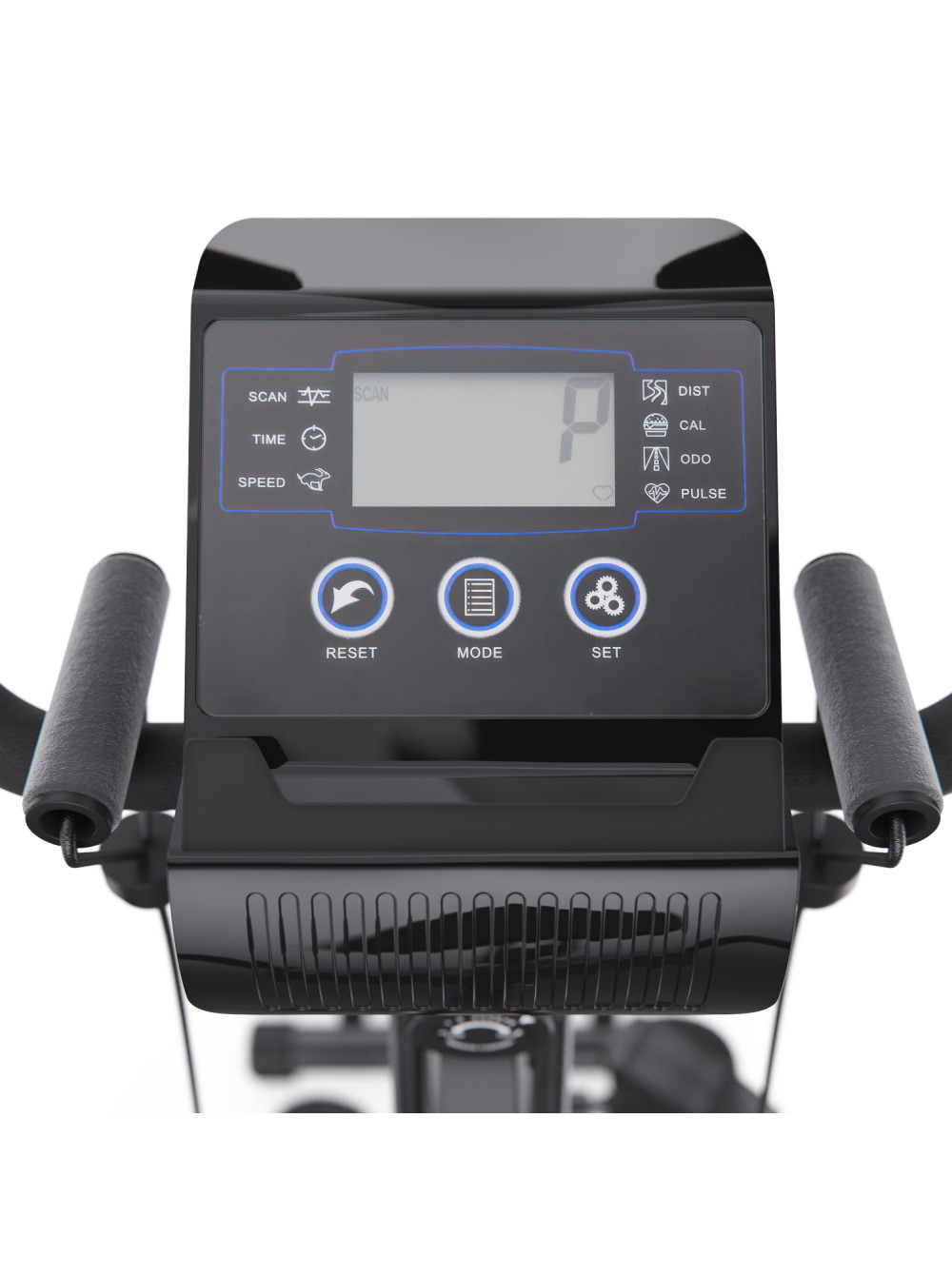 Велотренажер X-Bike DFC BIFANUO 0 отзывов 20889р. Оптовая цена: 18990р. для покупки по оптовой цене свяжитесь с нами по телефону Производитель: DFC Наличие: Есть в наличии Модель: B008B Документы (инструкции): Velotrenajer-X-Bike-DFC-BIFANUO.pdf Одежда Обувь Как выбрать одежду своего размера? Купить Купить в один клик Скидки постоянным клиентам! Гарантия качества всех товаров магазина! Описание Отзывов (0) Документы ДисплейМонохромный LCDРазмер стола65 х 41 х 114 смРазмер в сложенном виде33 х 41 х 134 смРазмер упаковки116 х 39 х 23 смВес упаковки19, 86 кгВес18,2 кгГарантия12 месяцевСтрана производстваКитайСерияBIFANUOЭспандер120 смИнерционный вес маховика3 кгРазмер сиденья26,5 х 23,5 х 5 смРазмер спинки20,5 х 20,5 х 5 смСистема нагруженияМагнитнаяКоличество уровней нагрузки8Регулировка нагрузкиМеханическаяМаксимальный вес110 кгРегулировка сиденья6 уровней по вертикалиПедали12,5 х 10 смСкладная конструкцияДаВысота от сиденья до пола78,5-87,5 смИзмерение пульсаСенсорные датчики на поручняхПодставка под планшетЕстьТранспортировочные роликиЕсть Вертикальный велотренажер с эспандерами DFC X-Bike BIFANUO — идеальный кардиотренажер для домашних тренировок. Этот велотренажёр представляет собой современный кардиотренажер для ног и рук домашний, который сочетает эффективную аэробную нагрузку с возможностью проработки мышц верхней части тела. Как велотренажер для ног, он обеспечивает качественную нагрузку на мышцы бёдер, ягодиц и икр, а встроенные эспандеры превращают его в полноценный тренажер для ног и рук. Максимальный вес пользователя – 110 кг, что делает тренажер кардио доступной для широкого круга людей. Модель подходит для пользователей с разным уровнем подготовки – от новичков до опытных спортсменов. Тренажер для ног оснащен 8 уровнями нагрузки, которые регулируются механически. Инерционный вес маховика 3 кг. Магнитная система сопротивления обеспечивает плавный и бесшумный ход, что делает тренировки комфортными даже вечером или ранним утром. Встроенный монохромный LCD-дисплей отображает ключевые параметры: скорость, время, дистанцию, пульс, количество сожженных калорий и режим сканирования данных. Работает дисплей от 2-х батареек ААА, идущих в комплекте. Эргономичное сиденье с 6 уровнями регулировки по высоте (от 78,5-87,5 см от пола) позволяет настроить тренажер под любой рост. Размер сиденья равен 26,5 х 23,5 х 5 см, а размер спинки 20,5 х 20,5 х 5 см. Педали с противоскользящим покрытием и регулируемым ремешком надежно удерживают стопу во время интенсивной тренировки. Датчики пульса на рукоятках помогают контролировать нагрузку без дополнительных устройств. Благодаря складной конструкции тренажер легко хранить даже в небольших помещениях. В сложенном виде его габариты составляют 33 х 41 х 134 см. Встроенные транспортировочные ролики позволяют без усилий перемещать его по комнате, а компенсаторы неровностей пола обеспечивают устойчивость на любой поверхности. В комплекте идут эспандеры длиной 120 см для проработки мышц рук и плеч. Подставка под планшет или смартфон делает тренировки более увлекательными – можно смотреть фильмы, сериалы или онлайн-уроки. Велотренажер домашний DFC X-Bike BIFANUO – это современный, функциональный и компактный тренажер для домашнего использования. Он поможет поддерживать форму, укреплять мышцы и улучшать общее самочувствие и здоровье! Написать отзыв Ваше имя: Ваш отзыв: При