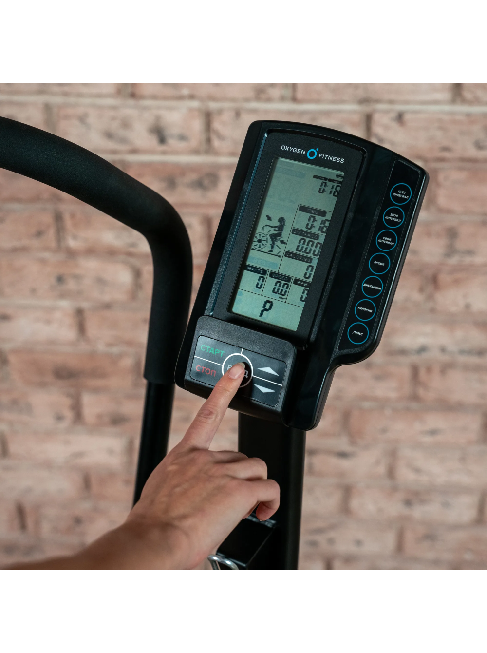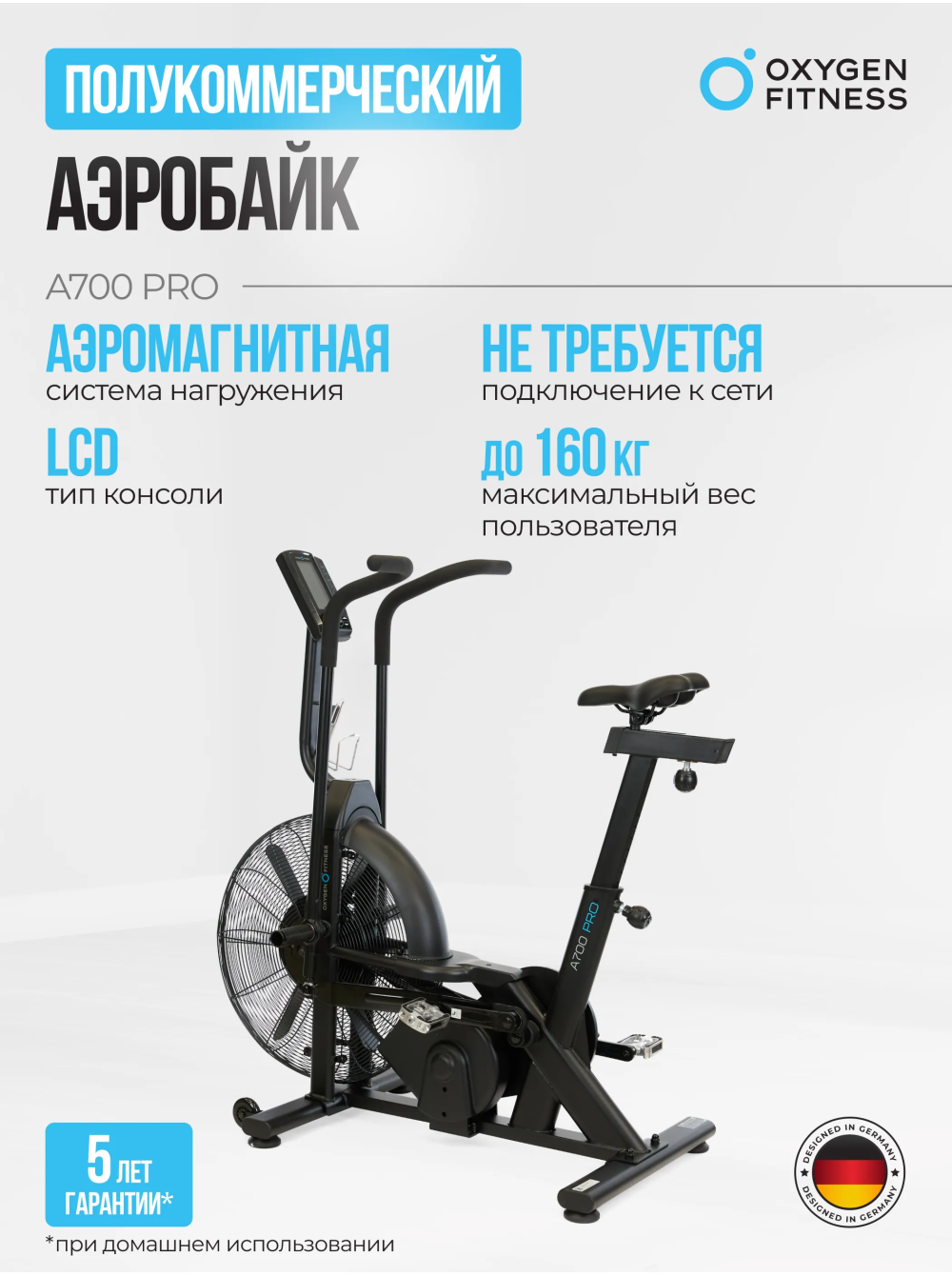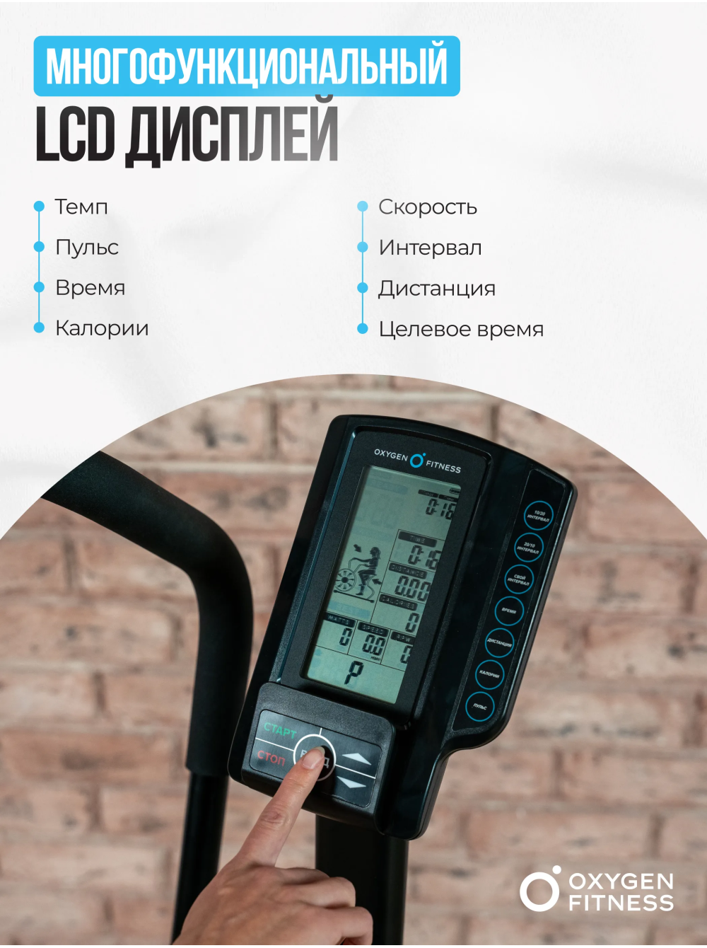 Аэробайк OXYGEN FITNESS A700 PRO 0 отзывов 73990р. Производитель: OXYGEN Наличие: Есть в наличии Модель: A700_PRO Одежда Обувь Как выбрать одежду своего размера? Купить Купить в один клик Скидки постоянным клиентам! Гарантия качества всех товаров магазина! Описание Отзывов (0) Особенности:ПЕДАЛИ ИЗ ЛЕГИРОВАННОЙ СТАЛИ АЭРОДИНАМИЧЕСКАЯ СИСТЕМА НАГРУЖЕНИЯ РЕГУЛИРОВКА СИДЕНЬЯ В ДВУХ ПЛОСКОСТЯХ ДЕРЖАТЕЛЬ ДЛЯ БУТЫЛКИ ДОПОЛНИТЕЛЬНЫЕ УПОРЫ ДЛЯ НОГ ТРАНСПОРТИРОВОЧНЫЕ РОЛИКИ И КОМПЕНСАТОРЫ НЕРОВНОСТЕЙ ПОЛА ПОРУЧНИ С АНТИСКОЛЬЗЯЩИМ ПОКРЫТИЕМ УДОБНАЯ РУКОЯТЬ РЕГУЛИРОВКИ ПОЛОЖЕНИЯ СИДЕНЬЯ БрендOxygen FitnessАртикулA700_PROНазначение полукоммерческоеТип тренажера велотренажер вертикальныйПосадка вертикальная Система нагружения аэродинамическаяТип педального узлатрехкомпонентный шатун Сиденьекомфортабельное, анатомической формыРегулировка положения сиденьяпо горизонтали и вертикалиРукояткиподвижные поручни профессионального уровня с оплеткой из пенорезиныИзмерение пульсаестьСопряжение с кардиодатчикамигерцовый датчик (приобретается отдельно)Консоль LCDТип консоли LCD дисплей монохромныйПоказания консоливремя, скорость, дистанция, калории, пульс, ватты, темп, целевое время, интервалОбщее количество программ8Спецификация программручной режим, целевое время, целевая дистанция, целевой расход калорий, интервал 10/20, интервал 20/10, интервал пользователя, 1 пульсозависимаяЯзык интерфейсарусский, английскийПодставка под планшет/смартфонДаТранспортировочные роликиДаКомпенсаторы неровностей полаДаДополнительные особенности тренажерареверсивный ходВес нетто, кг50Вес брутто, кг57Максимальный вес пользователя 160Подключение к сетине требует подключенияПроизводительOxygen FitnessСтрана изготовленияКНР Представляем OXYGEN FITNESS A700 PRO — мощный и надежный аэробайк, созданный для тех, кто ищет эффективный и профессиональный способ держать себя в форме. Этот полупрофессиональный тренажер обеспечивает интенсивные кардио-нагрузки и идеален как для домашних тренировок, так и для использования в малых фитнес-залах. Аэродинамическая система нагружения реагирует на усилия пользователя, автоматически увеличивая сопротивление при повышении темпа, что делает тренировку еще более продуктивной. Прочная рама с антикоррозийной обработкой рассчитана на вес пользователя до 160 кг и выдерживает даже самые энергичные занятия. Надежный трехкомпонентный педальный узел и педали из легированной стали обеспечивают плавное и стабильное движение, делая каждую тренировку безопасной и комфортной. Анатомическое сиденье, которое легко регулируется по горизонтали и вертикали, позволяет подстроить посадку под себя для максимального удобства и эффективности. Подвижные поручни с мягкой оплеткой — еще одно преимущество A700 PRO. Они задействуют мышцы рук и спины, превращая велотренировку в полноценную кардио-нагрузку для всего тела. Для удобного отслеживания результатов в тренажере встроен датчик пульса с возможностью подключения кардиодатчика (приобретается отдельно). Вы всегда сможете контролировать интенсивность тренировки и поддерживать оптимальный пульсовой диапазон для своих целей. На информативной консоли с монохромным LCD-дисплеем выводятся все ключевые параметры тренировки: время, скорость, расстояние, калории, пульс, мощность, темп и интервалы. A700 PRO поддерживает 8 пр