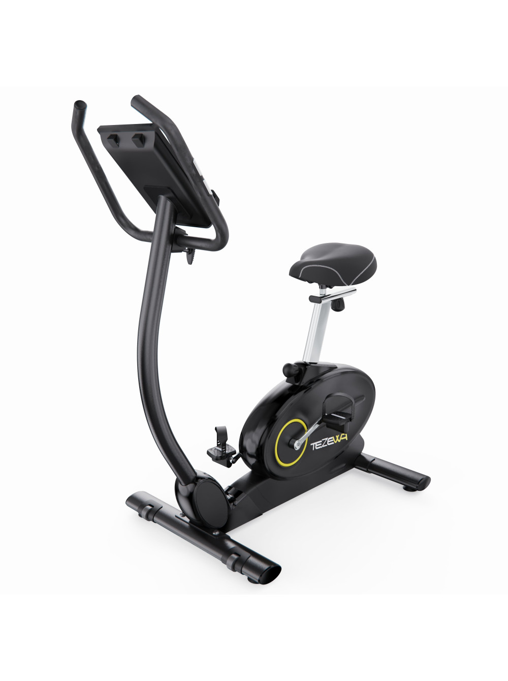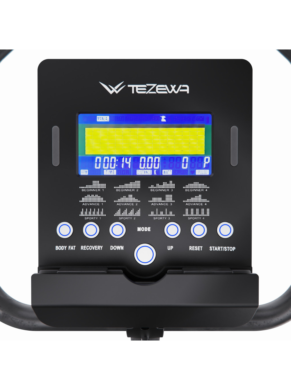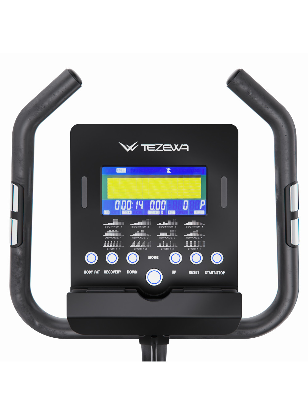 Электромагнитный велотренажер DFC TEZEWA PRO 01 0 отзывов 41789р. Оптовая цена: 37990р. для покупки по оптовой цене свяжитесь с нами по телефону Производитель: DFC Наличие: Есть в наличии Модель: B-T1901-pro Документы (инструкции): Elektromagnitnii-velotrenajer-DFC-TEZEWA-PRO-01.pdf Одежда Обувь Как выбрать одежду своего размера? Купить Купить в один клик Скидки постоянным клиентам! Гарантия качества всех товаров магазина! Описание Отзывов (0) Документы ДисплейLDC с синей подсветкойКоличество программ18Размер стола105 х 52 х 137 смРазмер упаковки110 х 27,5 х 65 смВес упаковки39,5 кгВес36,5 кгГарантия12 месяцевСтрана производстваКитайСерияBИнерционный вес маховика11 кгМаховик6 кгРазмер сиденья27,5 х 27,5 смСистема нагруженияЭлектромагнитнаяКоличество уровней нагрузки32 уровняРегулировка нагрузкиЭлектроннаяМаксимальный вес120 кгРегулировка руляДаРегулировка сиденья7 уровней по вертикали, по горизонталиВысота от сиденья до пола84,5 – 108 смИзмерение пульсаСенсорные датчики на поручняхПодставка под планшетЕстьТранспортировочные роликиЕстьКомпенсаторы неровности полаЕсть Электромагнитный велотренажер DFC TEZEWA PRO 01 — это отличный выбор для тех, кто ищет надёжный и современный велотренажёр для домашнего использования. Он сочетает в себе компактные габариты, продуманную конструкцию и богатый функционал, что делает его подходящим как для начинающих, так и для опытных пользователей. Модель предназначена для пользователей весом до 120 кг. Особенностью этой модели является плавная и точная регулировка сопротивления. Электронная регулировка сопротивления с 32 уровнями позволяет точно настраивать интенсивность тренировки. Велотренажёр оснащён регулируемым рулём, что позволяет настроить положение рук и корпуса максимально комфортно для каждого пользователя, а увеличенный инерционный вес маховика 11 кг способствует плавной и стабильной работе тренажёра, создавая комфортные условия для длительных и эффективных тренировок. Сиденье тренажёра регулируется на 7 уровней как по вертикали, так и по горизонтали, что позволяет точно настроить его под рост и особенности телосложения каждого пользователя. Высоту можно отрегулировать от 84,5 до 108 см от пола. Для дополнительной устойчивости и безопасности предусмотрены рифлёные, нескользящие педали с ремешками, которые надёжно фиксируют ноги и обеспечивают уверенный контроль во время занятий. Тренажёр оснащён 18 встроенными программами, включая ручной режим, 16 автоматических программ для разных уровней подготовки и программу Watt с поддержкой заданной мощности и автоматической регулировкой нагрузки. На встроенном LCD-дисплее с синей подсветкой отображаются все важные параметры тренировки: время, скорость, дистанция, калории, пульс (сенсорные датчики на поручнях), обороты в минуту (RPM), а также мощность в ваттах. Это делает тренировки максимально контролируемыми и эффективными. Для устойчивости тренажёр оснащён компенсаторами неровности пола, благодаря которым он надёжно стоит даже на неидеальной поверхности. Встроенные транспортировочные ролики позволяют легко переместить велотренажёр с места на место, что особенно удобно при использовании в ограниченном пространстве. Электромагнитный велотренажер DFC TEZEWA PRO 01 сочетает комфорт, функциональность и надёжность. Он обеспечивает плавную и тихую работу, подходит для тренировок любой интенсивно