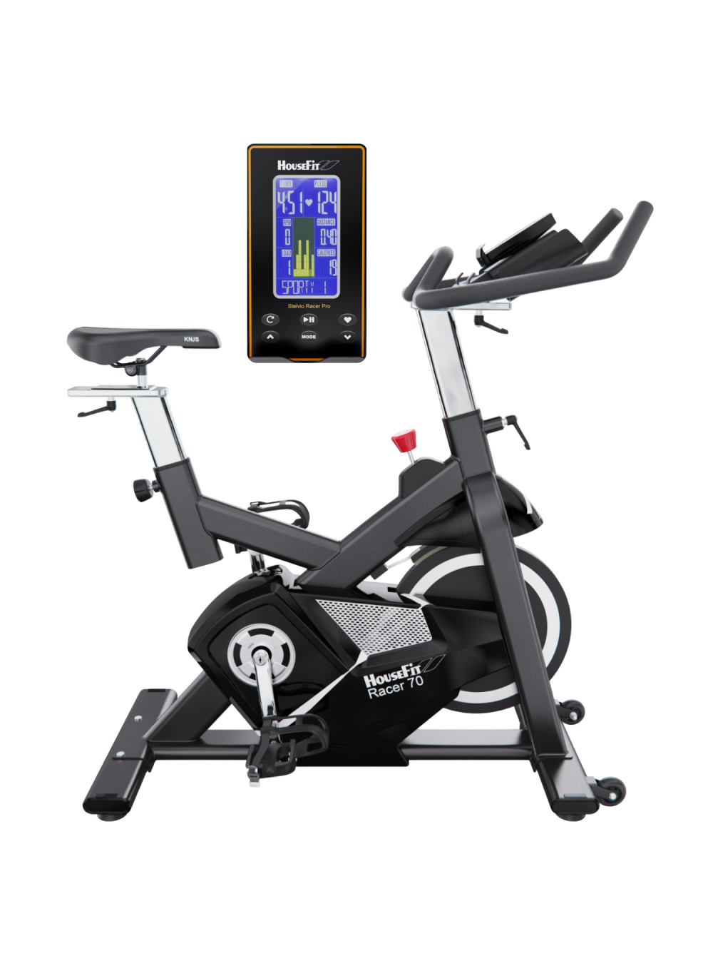 Спин-байк HOUSEFIT инерционный маховик 30 кг 0 отзывов 65989р. Оптовая цена: 59990р. для покупки по оптовой цене свяжитесь с нами по телефону Производитель: DFC Наличие: Есть в наличии Модель: B-HB-8285C Документы (инструкции): Spin-baik-HOUSEFIT-inercionnii-mahovik-30-kg.pdf Одежда Обувь Как выбрать одежду своего размера? Купить Купить в один клик Скидки постоянным клиентам! Гарантия качества всех товаров магазина! Описание Отзывов (0) Документы ДисплейLCD с синей подсветкойКоличество программ15Размер стола116 x 53 x 118 смРазмер упаковки106 х 22,5 х 92,5 смВес упаковки53,6 кгВес49,3 кгГарантия12 месяцевСтрана производстваКитайИнерционный вес маховика30 кгМаховик20 кгРазмер сиденья26 х 15,5 х 4,5 смСистема нагруженияМагнитная с колодочным тормозомКоличество уровней нагрузки32Регулировка нагрузкиЭлектроннаяМаксимальный вес150 кгРегулировка руля7 уровней по горизонтали и 8 по вертикалиРегулировка сиденья7 уровней по горизонтали, 10 уровней по вертикали, по углу наклонаВысота от сиденья до полаот 87 до 104 смПодставка под планшетЕстьДержатель для бутылкиНетТранспортировочные роликиЕсть Спин-байк DFC HouseFit RACER 70 для домашнего использования — это современный тренажер кардио, который идеально подойдёт для регулярных домашних тренировок. Благодаря своей универсальности и расширенной системе настроек, он эффективно заменит занятия в фитнес-зале. Тренажер отличается компактными размерами: 116 х 53 х 118 см, и рассчитан на максимальный вес пользователя до 150 кг. Кардиотренажер для ног и рук домашний оснащён магнитной системой нагрузки с колодочным тормозом и массивным маховиком с инерционным весом 30 кг, что обеспечивает плавный и бесшумный ход даже при интенсивной нагрузке. С помощью электронной регулировки нагрузки можно выбрать один из 32 уровней сопротивления для максимальной эффективности тренировки. На LCD-дисплее с синей подсветкой отображаются все необходимые параметры: скорость, время, дистанция, сожжённые калории, мощность (ватт), обороты в минуту и пульс (для измерения пульса необходимо использовать нагрудный ремень, не входит в комплект). Консоль включает 15 тренировочных программ: ручной режим, начинающий (4 программы), продвинутый (4 программы), спортивный (4 программы), кардио и тренировку с постоянной мощностью. Поддержка Bluetooth позволяет подключить тренажер к нагрудному пульсометру. Велотренажер имеет широкие возможности настройки посадки. Сиденье регулируется в 10 уровнях по вертикали, в 7 уровнях по горизонтали, а также по углу наклона. Руль настраивается в 8 вертикальных и 7 горизонтальных положениях. Размер сиденья — 26 х 15,5 х 4,5 см. Высота от сиденья до пола — от 87 до 104 см, что делает модель универсальной для пользователей разного роста. Удобство в использовании обеспечивают транспортировочные ролики, компенсаторы неровности пола и подставка под планшет. Велотренажёр для ног DFC HouseFit RACER 70 поможет развить выносливость, укрепить сердечно-сосудистую систему и эффективно сжигать калории. Это велотренажер домашний, который подойдёт как для начинающих, так и для опытных пользователей, стремящихся к прогрессу и контролю результатов тренировок. Написать отзыв Ваше имя: Ваш отзыв: Примечание: HTML разметка не поддерживается! Используйте обычный текст. Оценка: Плохо Хорошо Отправить отзыв Spin-baik-HOUSEFIT-inercionnii-mahovik-30-kg.pdf