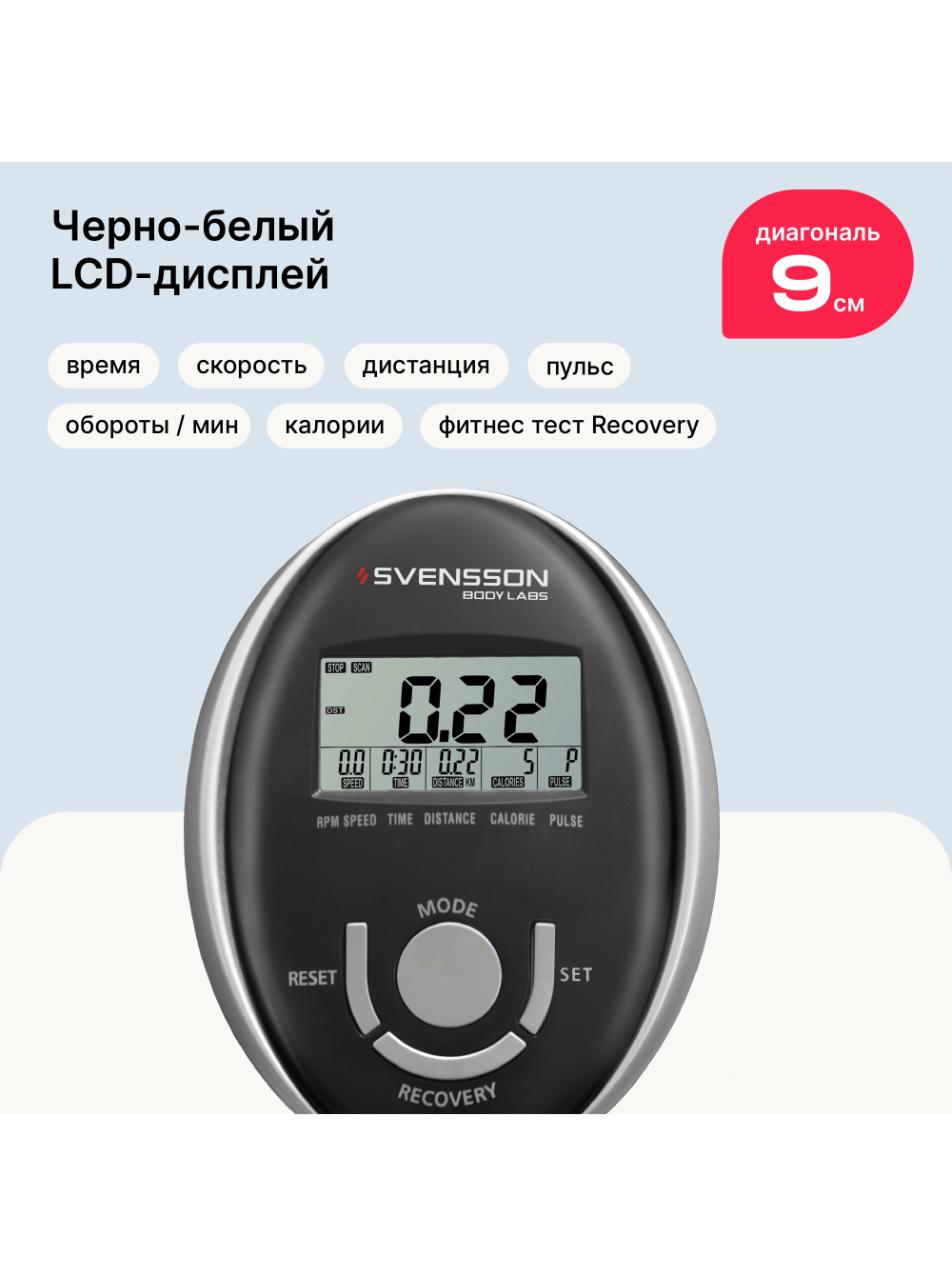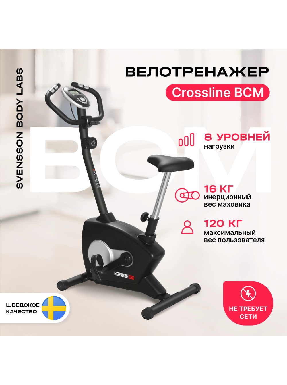 Велотренажер домашний SVENSSON BODY LABS CROSSLINE BCM 0 отзывов 21990р.32990р. Вы экономите: 11000р. (-33%) Производитель: SVENSSON INDUSTRIAL Наличие: Есть в наличии Модель: CROSSLINE_BCM Документы (инструкции): mpdf.php?url=%2Fcatalog%2Fvelotrenazhery%2Fsvensson-body-labs-crossline-bcm-velotrenazher-domashniy%2F&pdfversion=1&name_file=svensson-body-labs-crossline-bcm-velotrenazher-domashniy Одежда Обувь Как выбрать одежду своего размера? Купить Купить в один клик Скидки постоянным клиентам! Гарантия качества всех товаров магазина! Описание Отзывов (0) Документы Особенности:МАГНИТНАЯ НАГРУЗКА SPINMASTER™Трехкомпонентный педальный узелСИДЕНИЕ ПОВЫШЕННОЙ КОМФОРТНОСТИВЕРТИКАЛЬНАЯ РЕГУЛИРОВКА СИДЕНИЯКРУГОВАЯ РЕГУЛИРОВКА ПОЛОЖЕНИЯ РУЛЯПЕДАЛИ С ПРОРЕЗИНЕННЫМИ РЕМЕШКАМИКОМПЕНСАТОРЫ НЕРОВНОСТЕЙ ПОЛАТРАНСПОРТИРОВОЧНЫЕ РОЛИКИСЕНСОРНЫЕ ДАТЧИКИ ПУЛЬСА БрендSvensson Body LabsАртикулCROSSLINE_BCMНазначение домашнееТип тренажера велотренажер вертикальныйПосадка вертикальная Система нагружения магнитнаяКоличество уровней нагрузки8Регулировка нагрузкимеханическаяИнерционный вес маховика, кг16 BioFusionТип педального узлатрехкомпонентный шатунСиденьехромированное с подушкой повышенной комфортностиРегулировка положения сиденьяпо вертикалиРукояткистандартные с оплеткой из пенорезиныРегулировка положения рулякруговаяКонсоль LCDТип консоли черно-белый LCD дисплейПоказания консоливремя, дистанция, скорость, калории, обороты в мин., пульс, фитнес-тест (Recovery)Язык интерфейсаанглийскийПодставка под планшет/смартфонНетВентиляторНетТранспортировочные роликиДаКомпенсаторы неровностей полаДаВес нетто, кг23.8Вес брутто, кг25.6Максимальный вес пользователя 120Подключение к сетине требует подключенияПроизводительFitathlon Group (подразделение в Швеции)Страна изготовленияКНР SVENSSON BODY LABS CROSSLINE BCM - велотренажер небольших размеров с магнитной системой нагружения. Ориентирован на начинающих и продвинутых пользователей, которым не требуется специальные тренировочные программы и различные дополнительные опции. Высокая плавность хода и достаточные уровни нагрузки обеспечиваются благодаря запатентованной приводной системе SpinMaster , трехкомпонентному шатуну велосипедного типа и сбалансированному маховику весом 16 кг. Комфортабельное сидение с впрессованными гелиевыми подушками регулируется по высоте в 8 положениях, и вместе с возможностью регулировки положения руля позволяет подобрать оптимальное положение для пользователей различной комплекции. Рифленые антискользящие педали с прорезиненными многопозиционными ремешками обеспечивают надежное сцепление на любых скоростях педалирования. Хромированный подседельный штырь не только защищает поверхность от царапин, но и придает тренажеру большую внешнюю эффектность. За показатели пульса отвечают вмонтированные в рукоятки сенсорные датчики пульса. Велотренажер удобно перемещать благодаря двум транспортировочным роликам, а точное горизонтальное положение обеспечивают компенсаторы неровностей пола. Черно-белый LCD-дисплей диагональю 9 см одновременно выводит на экран различные параметры тренировки - время, дистанцию, скорость, калории, обороты в мин., пульс. Помимо этого, здесь предусмотрена функция фитнес-теста (Recovery) - она позволяет быстро оценивать тренированность человека и определять, насколько хорошо развита его сердечно-сосудистая и дыхательная системы. Конструкция рамы рассчитана на комфортную тренировку п
