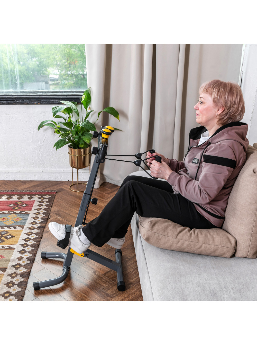 Велотренажер двойной DFC B810Y DUAL BIKE MAXI 0 отзывов 9889р. Оптовая цена: 8990р. для покупки по оптовой цене свяжитесь с нами по телефону Производитель: DFC Наличие: Есть в наличии Модель: B810Y Документы (инструкции): Velotrenajer-dvoinoi-DFC-B810Y-DUAL-BIKE-MAXI.pdf Одежда Обувь Как выбрать одежду своего размера? Купить Купить в один клик Скидки постоянным клиентам! Гарантия качества всех товаров магазина! Описание Отзывов (0) Документы Размер стола53 х 43,5 х 102 смРазмер в сложенном виде80 х 40 х 28 смРазмер упаковки64,7 х 43,29 х 18,7 смВес упаковки8,8 кгВес7 кгГарантия12 месяцевСтрана производстваКитайЭспандерЕстьСистема нагруженияТрубочнаяКоличество уровней нагрузкибесступенчатая системаРегулировка нагрузкиМеханическаяМаксимальный вес100 кгРегулировка руляПо горизонталиРегулировка угла наклонаМеханическаяУгол наклонаот 30 до 90°Регулировка по высотеЕстьДиапазон регулировокот 85 до 95 см, 8 уровнейСкладная конструкцияДаКомпенсаторы неровности полаЕстьЦветЖёлтый Велотренажёр двойной DFC B810W с накладками и ручками ярко-жёлтого цвета для домашнего использования. Многофункциональная модель позволяет тренировать как руки, так и ноги одновременно или врозь. Для разнообразия тренировок в комплекте поставляются эспандеры. Система нагрузки трубочная, регулировка осуществляется механически с помощью ручек на корпусе тренажёра. Велотренажёр выдерживает вес пользователя до 100 кг. Ручки тренажёра диаметром 60 мм регулируются по горизонтали, а также меняют угол наклона от 30 до 90°. Высота регулируется от 85 до 95 см в 8-ми положениях. Конструкция велотренажёра складная. Педали с регулируемыми ремешками на липучках. На ножках расположены резиновые накладки для защиты от скольжения и царапания поверхности пола, а также компенсаторы неровности пола. Написать отзыв Ваше имя: Ваш отзыв: Примечание: HTML разметка не поддерживается! Используйте обычный текст. Оценка: Плохо Хорошо Отправить отзыв Velotrenajer-dvoinoi-DFC-B810Y-DUAL-BIKE-MAXI.pdf