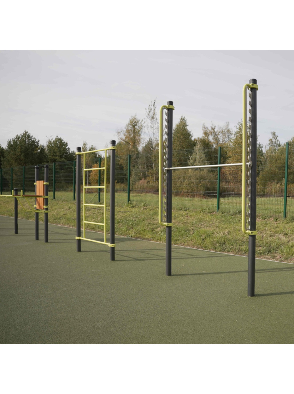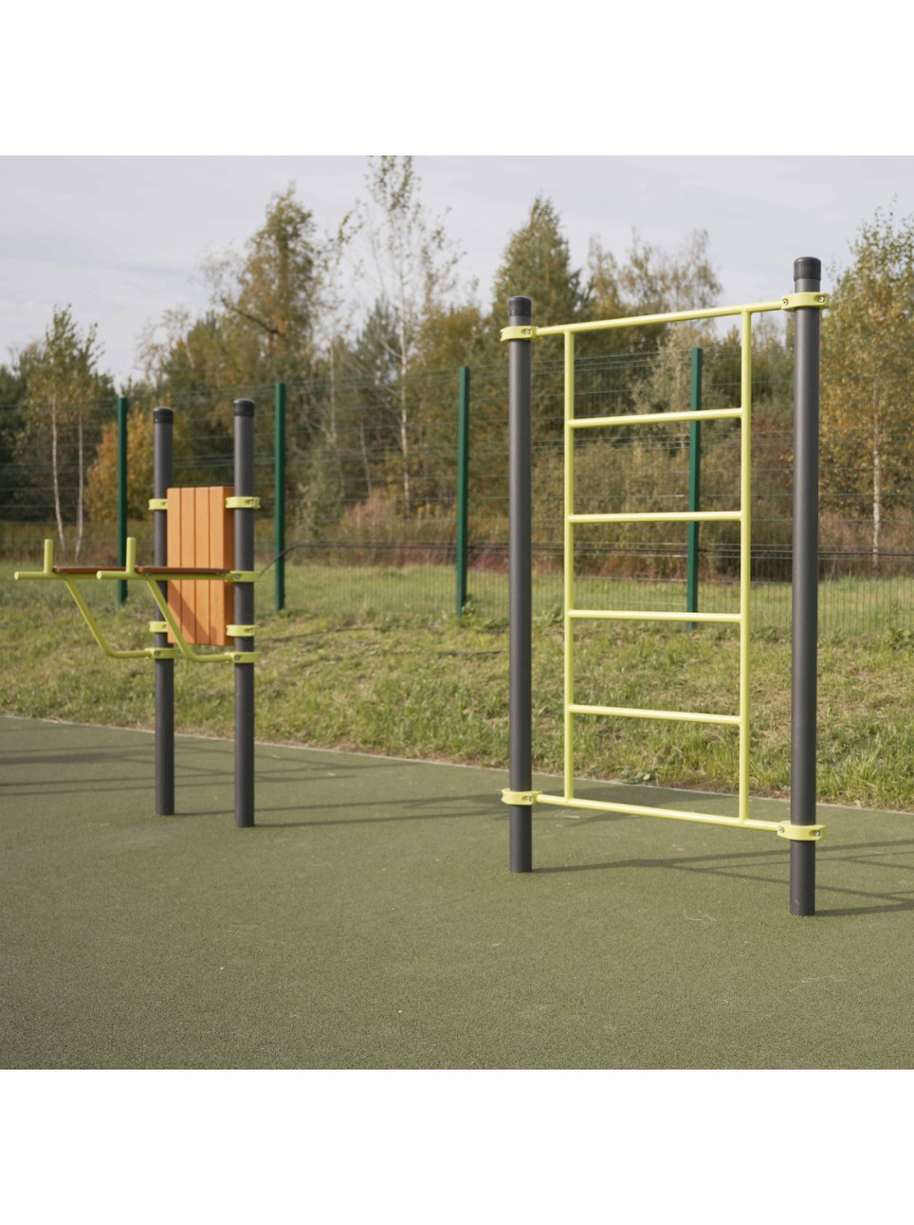 Уличный гимнастический снаряд (шведская стенка) ZAVODSPORTA* предназначен для установки на уличных спортивных площадках с учетом интенсивной эксплуатации в разных климатических условиях. Опорные столбы выполнены из металлической трубы диаметром 108 мм с толщиной стенки 3,5 мм. В состав комплекса входят два опорных столба высотой 3300 мм. Торцы опорных столбов оборудованы пластиковыми заглушками. Перекладины шведской стенки выполнены из металлической трубы диаметром 34 мм с толщиной стенки 3,2 мм. Элементы фиксируются к опорным столбам с помощью надёжных металлических хомутов с болтовым соединением. Конструкция хомутов обеспечивает прочную посадку и равномерное распределение нагрузки, а самоконтрящиеся гайки М10 предотвращают самопроизвольное ослабление креплений в процессе эксплуатации. Металлические элементы покрыты цинкосодержащим грунтом, формирующим антикоррозийный слой в результате химической реакции компонентов грунта с металлом, а затем — порошковой краской, запечённой в печи полимеризации. Металлические элементы ударопрочны, высокоустойчивы к температурным перепадам и метеорологическим явлениям. Надёжность и прочность разъёмных соединений конструктивных элементов тренажёра обеспечиваются за счёт использования высококачественного оцинкованного крепежа. При изготовлении деталей на высокоточных станках лазерной резки используется технология шип-паз. Это создает точные линейные размеры, точность позиционирования деталей в сборочных узлах и стабильность размеров конструкции тренажера. Цвет опорных столбов: графит (другие цвета опционально). Цвет элементов: pantone 382C (другие цвета опционально). Габариты: 1480?146?2345 мм. Вес: 86 кг. Производитель: ZAVODSPORTA. Производитель оставляет за собой право (без предварительного уведомления) на внесение изменений в конструкцию, комплектацию или технологию изготовления тренажера для улучшения эксплуатационных качеств. Оборудование монтируется путем бетонирования опорного столба на глубину 1000 мм и отсыпается песчано-гравийной смесью до уровня площадки (не менее 200 мм). Монтажные схемы прилагаются к комплекту поставки. ?*ZAVODSPORTA — российский производитель коммерческого спортивного оборудования, соответствующего требованиям государственных и муниципальных закупок. Продукция завода отвечает стандартам, предусмотренным федеральными законами № 44-ФЗ и № 223-ФЗ, что позволяет успешно участвовать в тендерных процедурах и поставлять оборудование для бюджетных учреждений. Труба: 108?3,5 мм Материал: металл Цвет рамы: графит (другие цвета опционально) Цвет элементов: pantone 382C (другие цвета опционально) Основа: монтаж на цельной трубе Габариты: 1480?146?2345 мм Вес: 86 кг