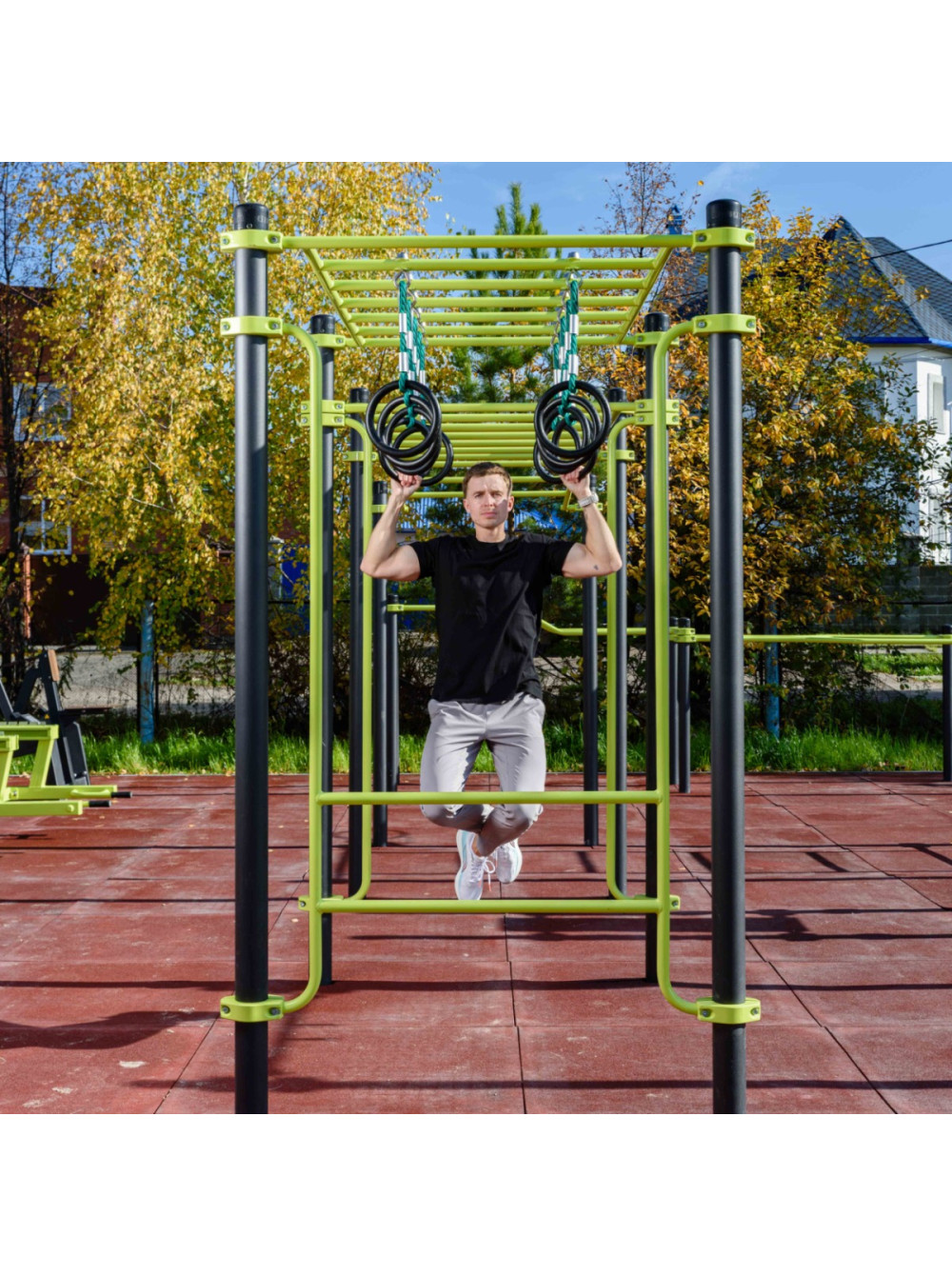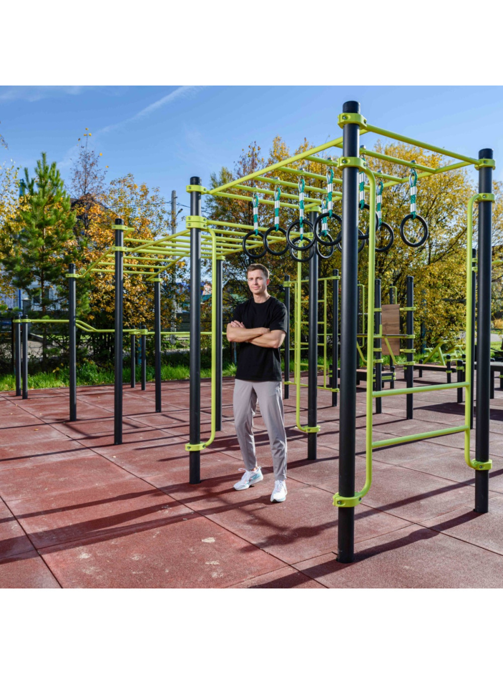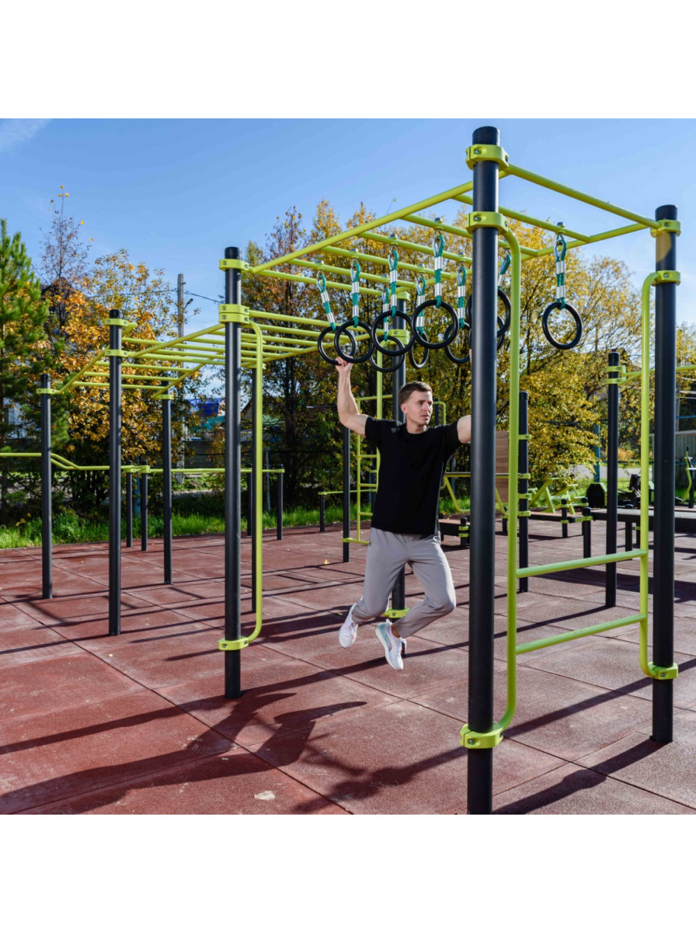 W258 GTO Рукоход с изменением высоты с подвижными кольцами (разноуровневый) ZAVODSPORTA 0 отзывов 272137р. Оптовая цена: 217710р. для покупки по оптовой цене свяжитесь с нами по телефону Производитель: ZSO Наличие: Предзаказ Модель: 88922e34-4108-11ec-ba99-00155d686707 Одежда Обувь Как выбрать одежду своего размера? Купить Купить в один клик Скидки постоянным клиентам! Гарантия качества всех товаров магазина! Описание Отзывов (0) Уличный Рукоход с изменением высоты с подвижными кольцами (разноуровневый) ZAVODSPORTA* предназначен для установки на уличных спортивных площадках с учетом интенсивной эксплуатации в разных климатических условиях. Опорные столбы выполнены из металлической трубы диаметром 89 мм с толщиной стенки 3 мм. В состав комплекса входят восемь опорных столба: шесть высотой 3600 мм и два высотой 3300 мм. Торцы опорных столбов оборудованы пластиковыми заглушками. Рукоходы классический и в подъём, рукоход с кольцами, перекладины вертикальные и низкая шведская стенка выполнены из металлической трубы диаметром 34 мм с толщиной стенки 3,2 мм. Кольца рукохода выполнены из качественной фанеры, закреплены при помощи армированного каната диаметром 16 мм с металлическим сердечником. Гнездо для крепления навесного инвентаря изготовлено из стального листа толщиной 3 мм. Элементы фиксируются к опорным столбам при помощи надёжных металлических хомутов с болтовым соединением. Конструкция хомутов обеспечивает прочную посадку и равномерное распределение нагрузки, а самоконтрящиеся гайки М10 предотвращают самопроизвольное ослабление креплений в процессе эксплуатации. Металлические элементы покрыты цинкосодержащим грунтом, формирующим антикоррозийный слой в результате химической реакции компонентов грунта с металлом, а затем — порошковой краской, запечённой в печи полимеризации. Металлические элементы ударопрочны, высокоустойчивы к температурным перепадам и метеорологическим явлениям. Надёжность и прочность разъёмных соединений конструктивных элементов тренажёра обеспечиваются за счёт использования высококачественного оцинкованного крепежа. При изготовлении деталей на высокоточных станках лазерной резки используется технология шип-паз. Это создает точные линейные размеры, точность позиционирования деталей в сборочных узлах и стабильность размеров конструкции тренажера. Цвет опорных столбов: графит (другие цвета опционально). Цвет элементов: pantone 382C (другие цвета опционально). Габариты: 5710?1460?2630 мм. Вес: 304 кг. Производитель: ZAVODSPORTA. Производитель оставляет за собой право (без предварительного уведомления) на внесение изменений в конструкцию, комплектацию или технологию изготовления тренажера для улучшения эксплуатационных качеств. Оборудование монтируется путем бетонирования опорного столба на глубину 1000 мм и отсыпается песчано-гравийной смесью до уровня площадки (не менее 200 мм). Монтажные схемы прилагаются к комплекту поставки. ?*ZAVODSPORTA — российский производитель коммерческого спортивного оборудования, соответствующего требованиям государственных и муниципальных закупок. Продукция завода отвечает стандартам, предусмотренным федеральными законами № 44-ФЗ и № 223-ФЗ, что позволяет успешно участвовать в тендерных процедурах и поставлять оборудование для бюджетных учреждений. Изделие внесено в Реестр российской промышленной продукции (Пос